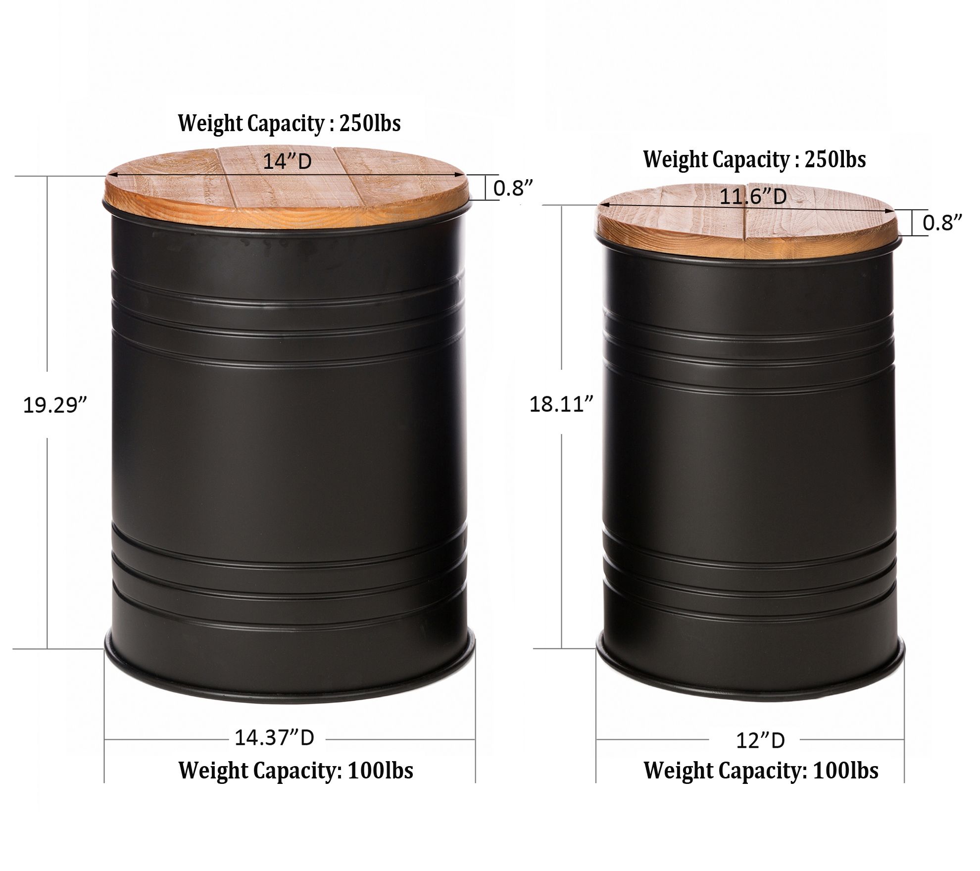 • Approximate measurements: Large stool 14.37"Diam x 19.29"H; Small stool 12"Diam x 18.11"H