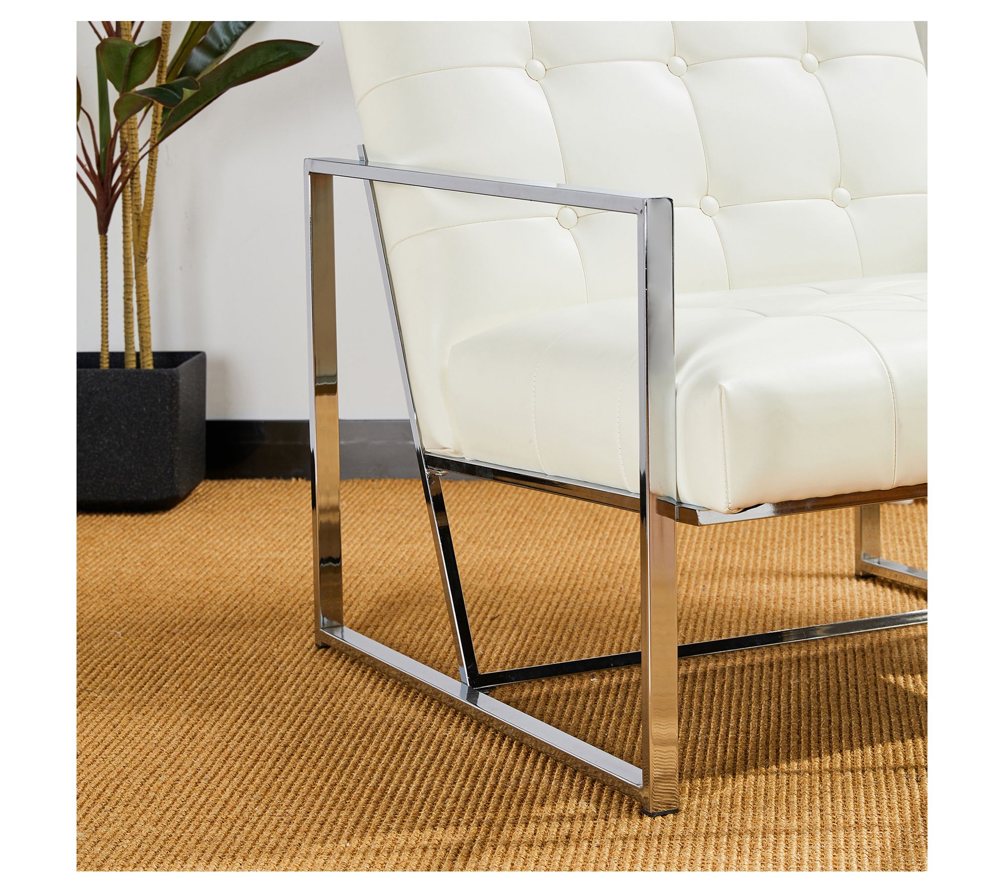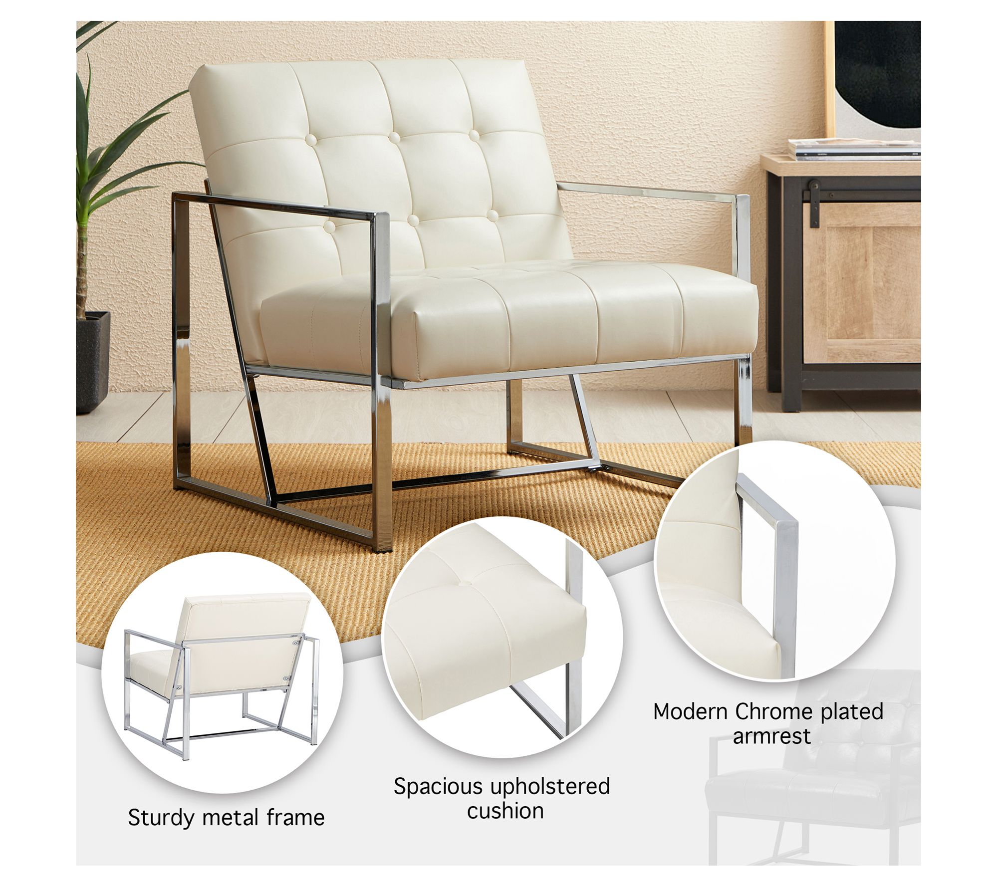 Glitzhome Mid Century Leatherette Button Ttufted Accent Chair