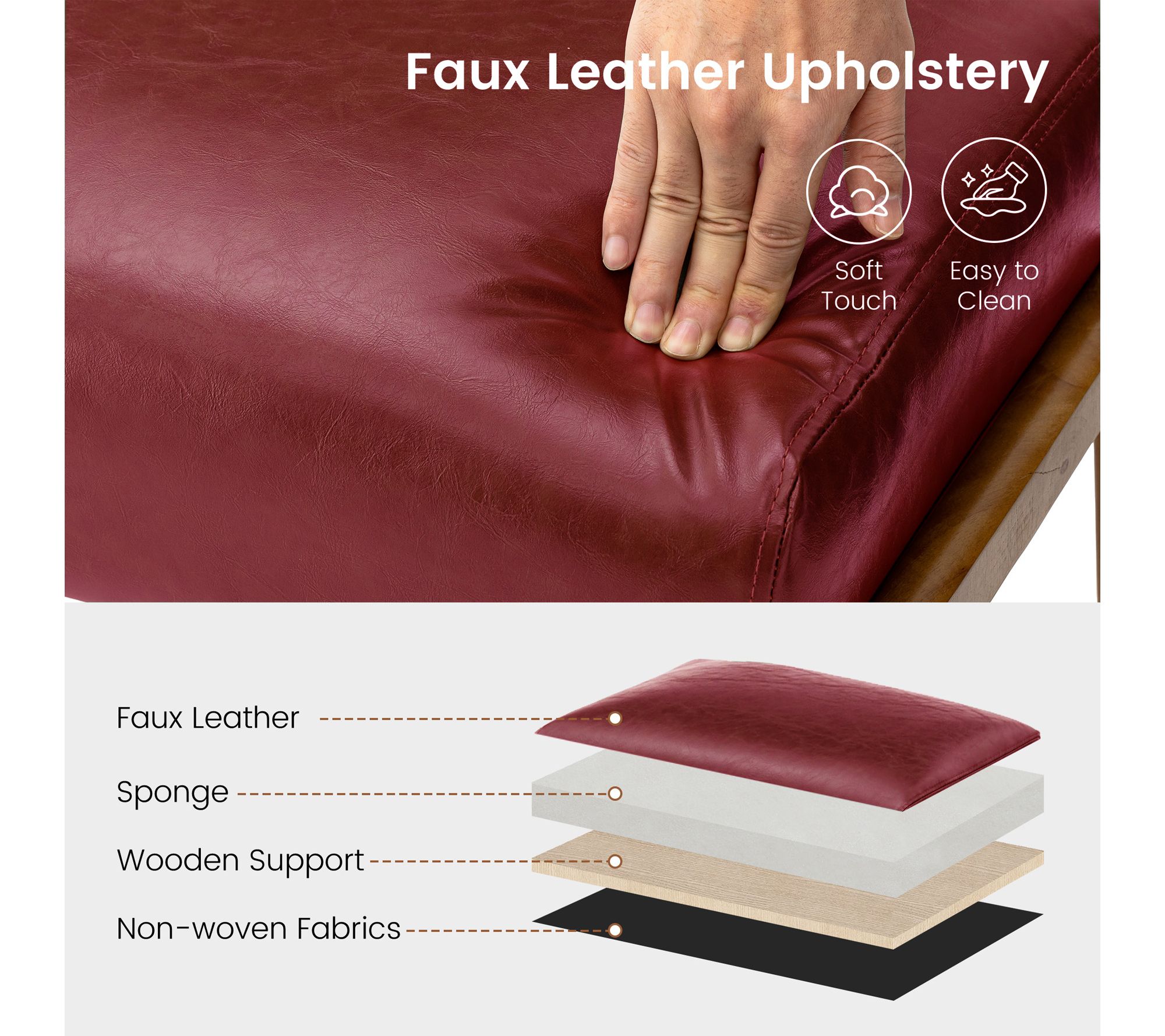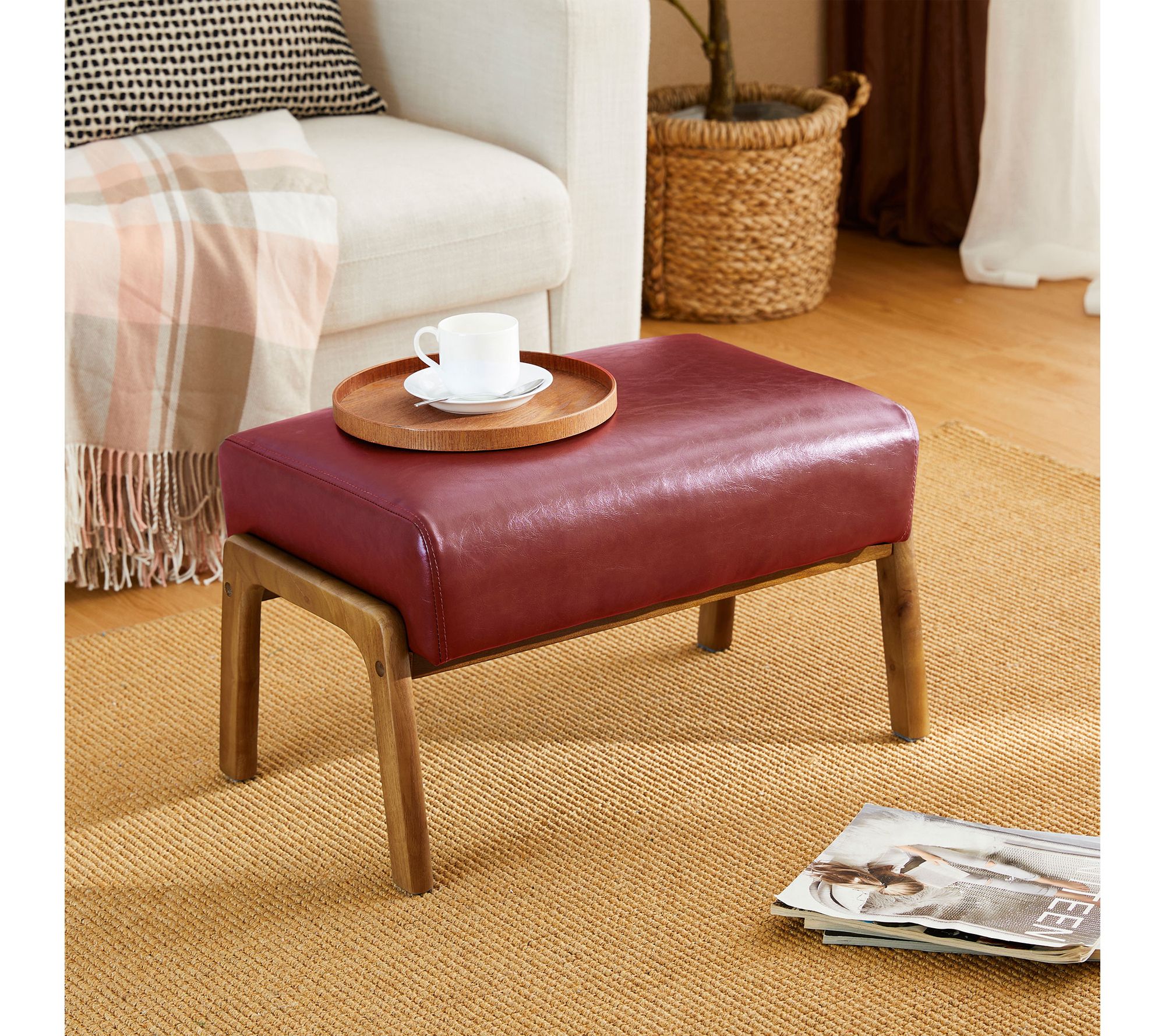 Glitzhome Mid-century Modern Burgundy Leatherette Accent Stool