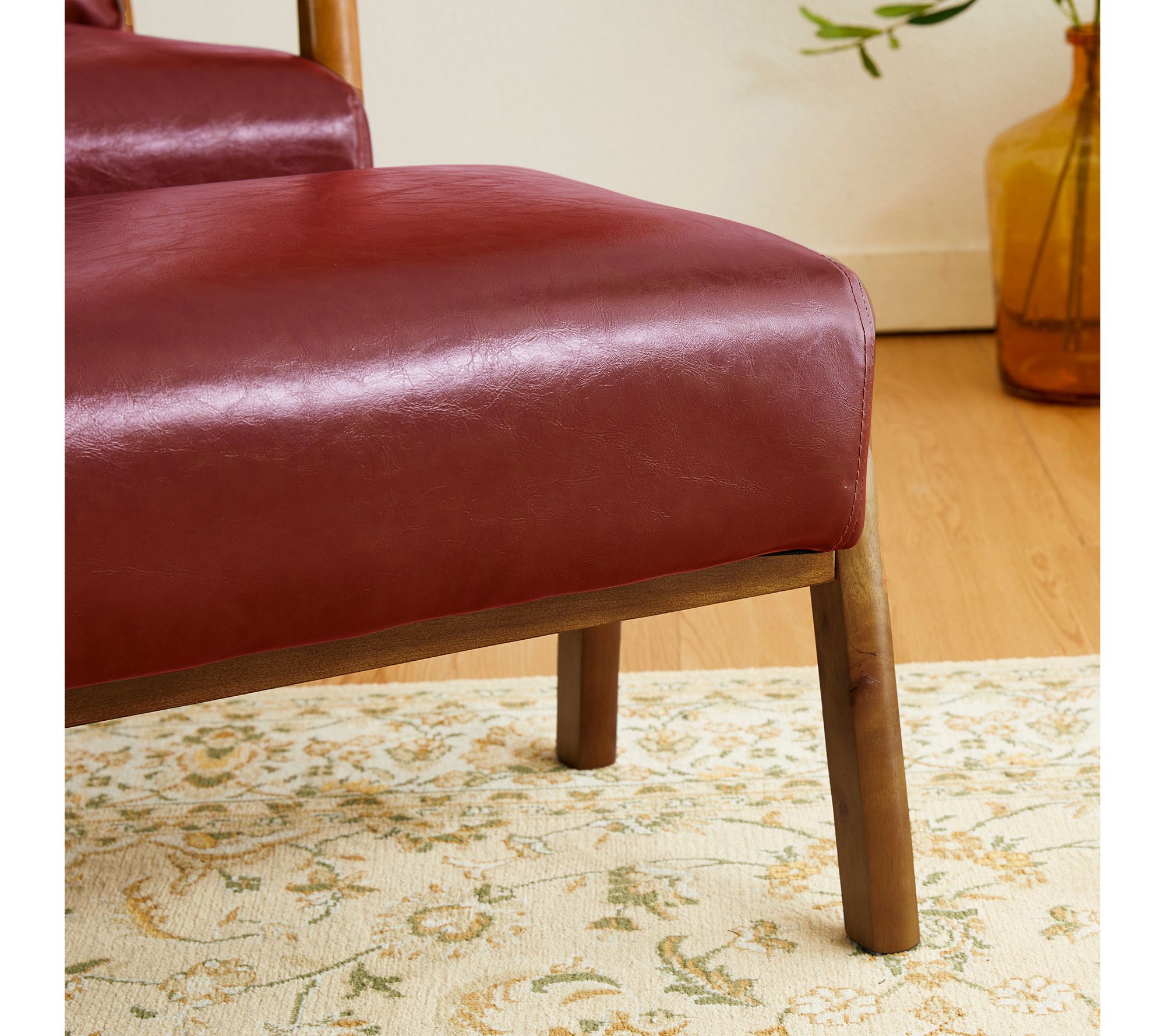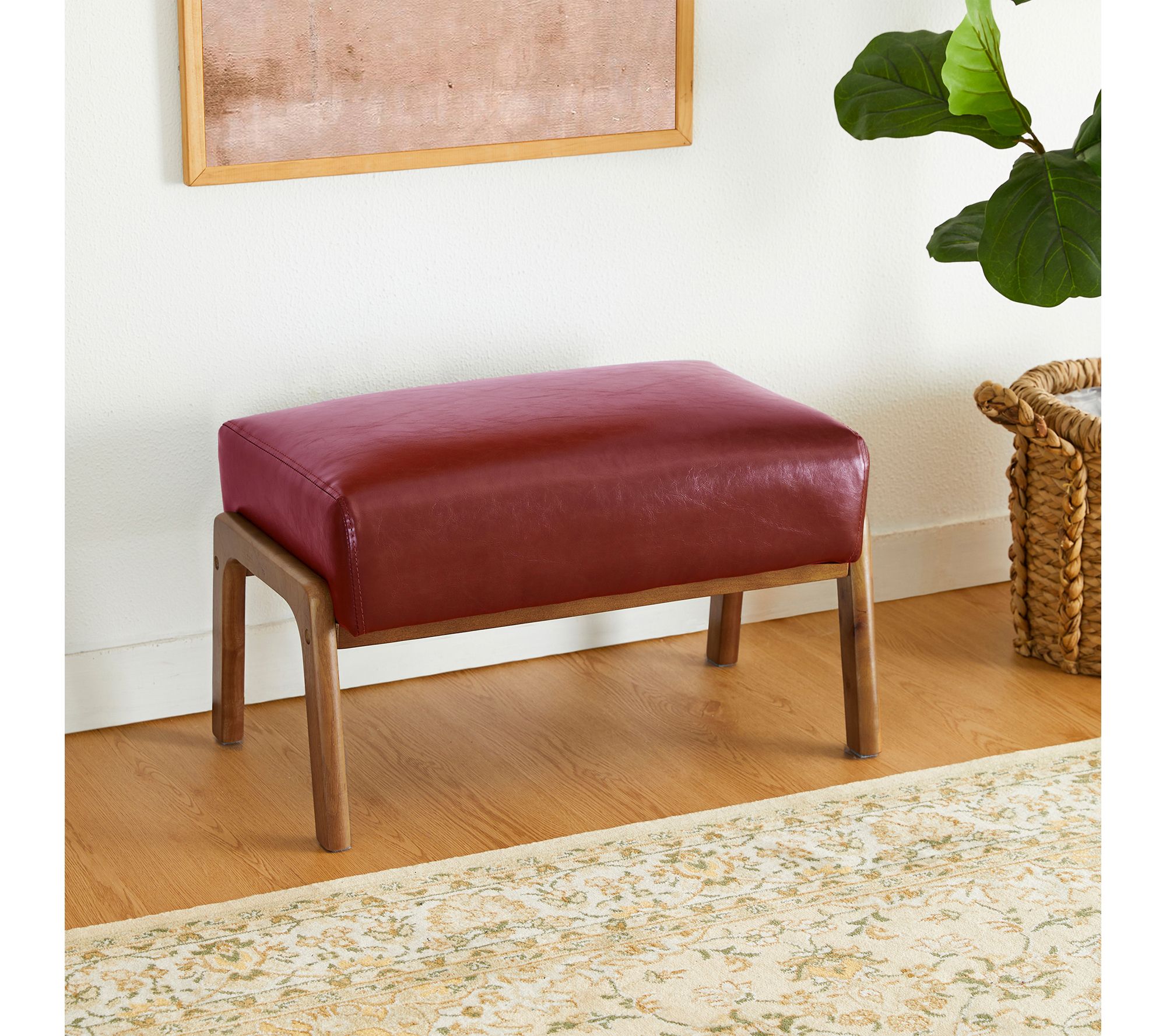 Upholstered in burgundy faux leather, this accent stool adds a touch of mid-century charm to your living room or bedroom. The spacious cushioned seat and flared wooden legs combine stylish design with practical comfort, whether you're kicking up your feet after a long day or offering extra seating for guests. From Glitzhome.