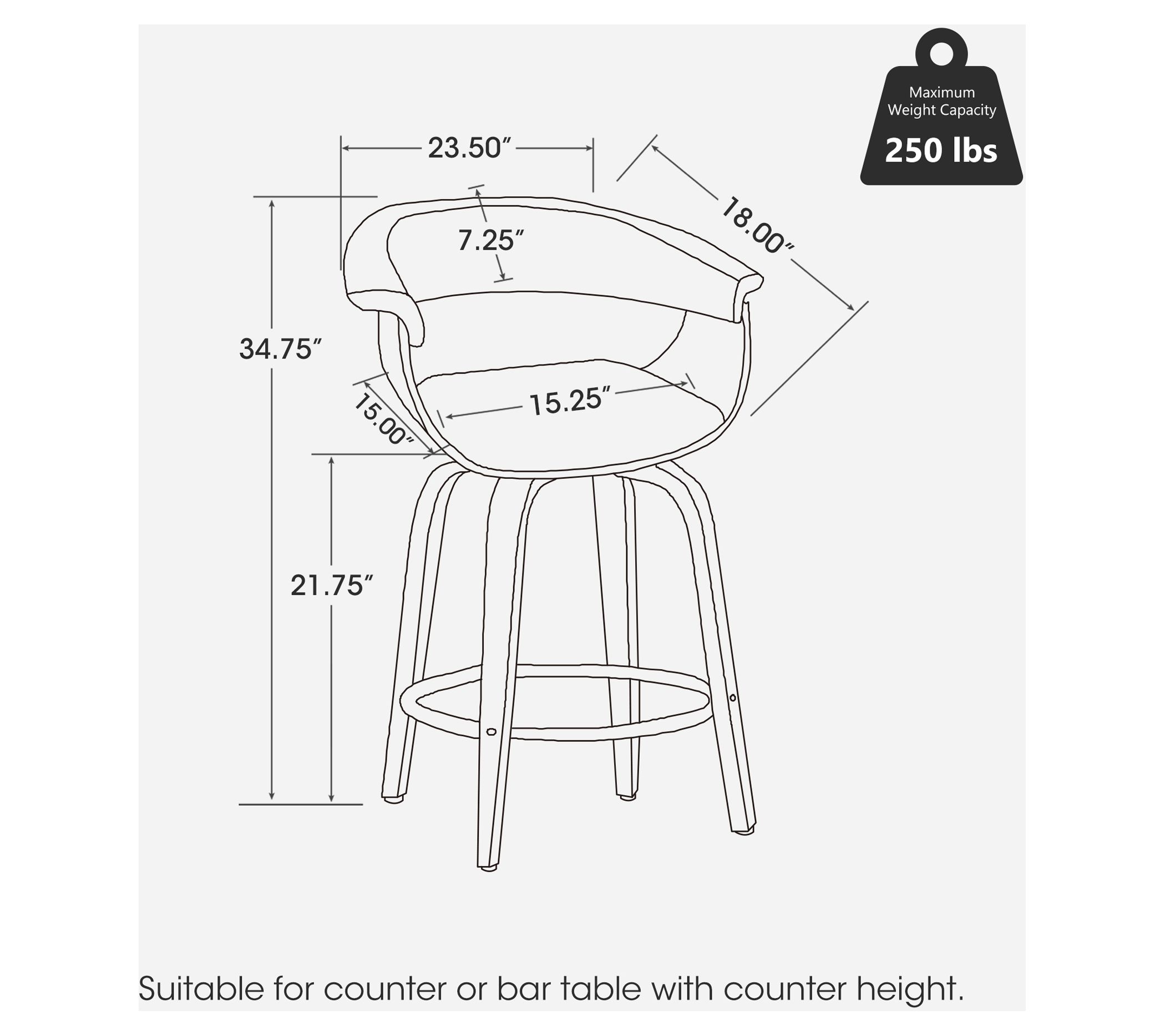 • Measures approximately 23.5"L x 18"W x 34.75"H; supports up to 250 lbs