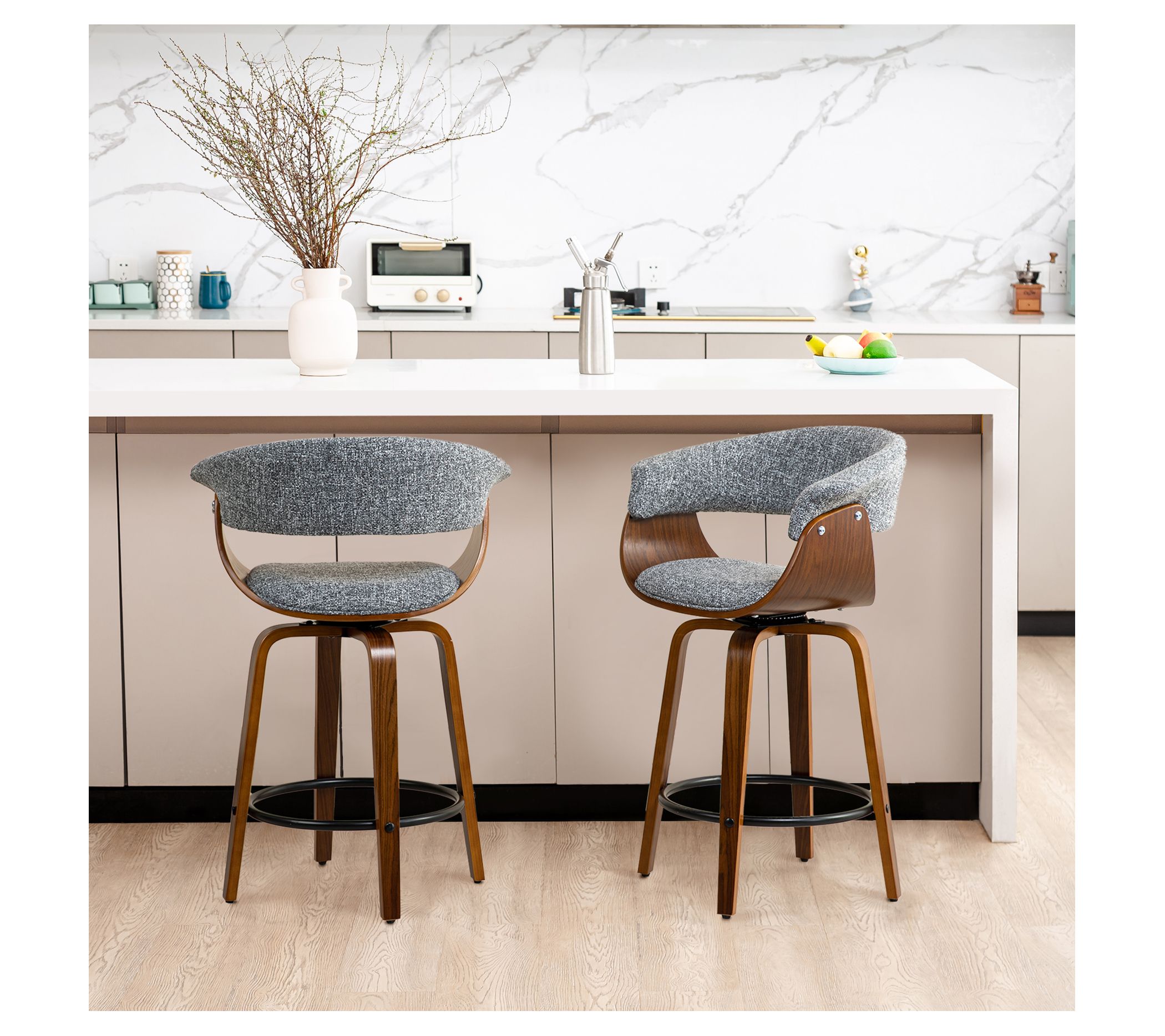 Upgrade your home decor with the Glitzhome mid-century modern fabric swivel counter stools. Expertly upholstered in premium fabric and crafted with a walnut veneer bentwood frame, these stools offer a blend of elegance and durability. Perfect for dining, kitchen, or bar areas, their 360-degree swivel function and ergonomic design ensure comfort and style. From Glitzhome.