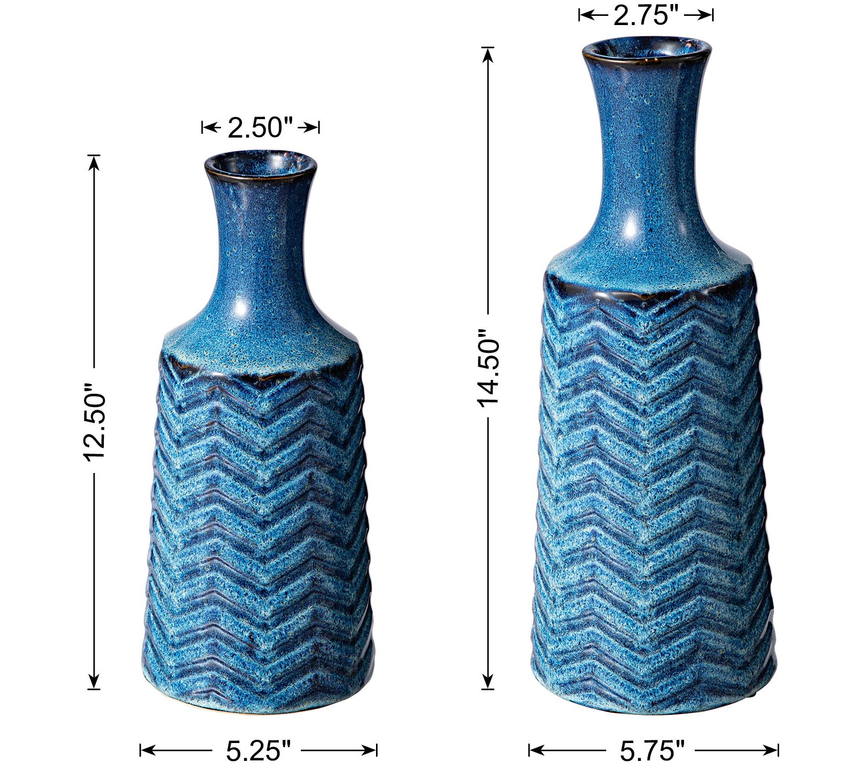Glitzhome Modern Brilliant Chevron Ceramic Table Vases S/2