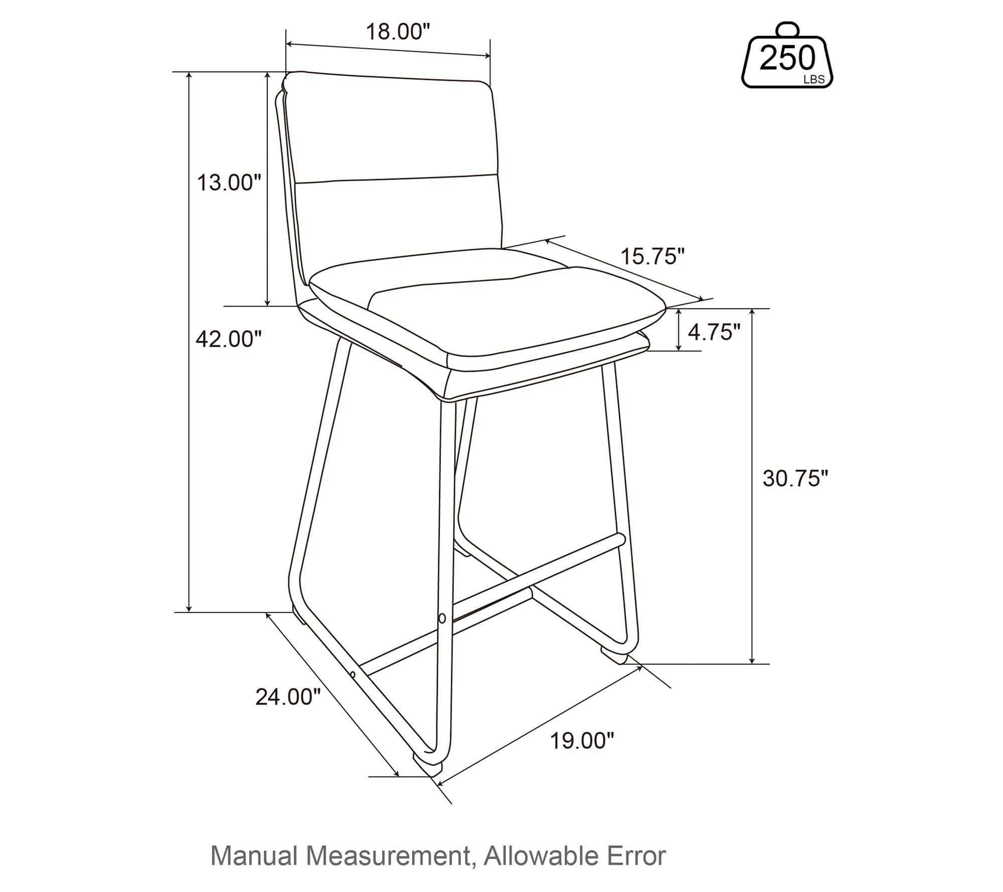 • Measures 19"L x 24"W x 42"H; supports up to 250 lbs