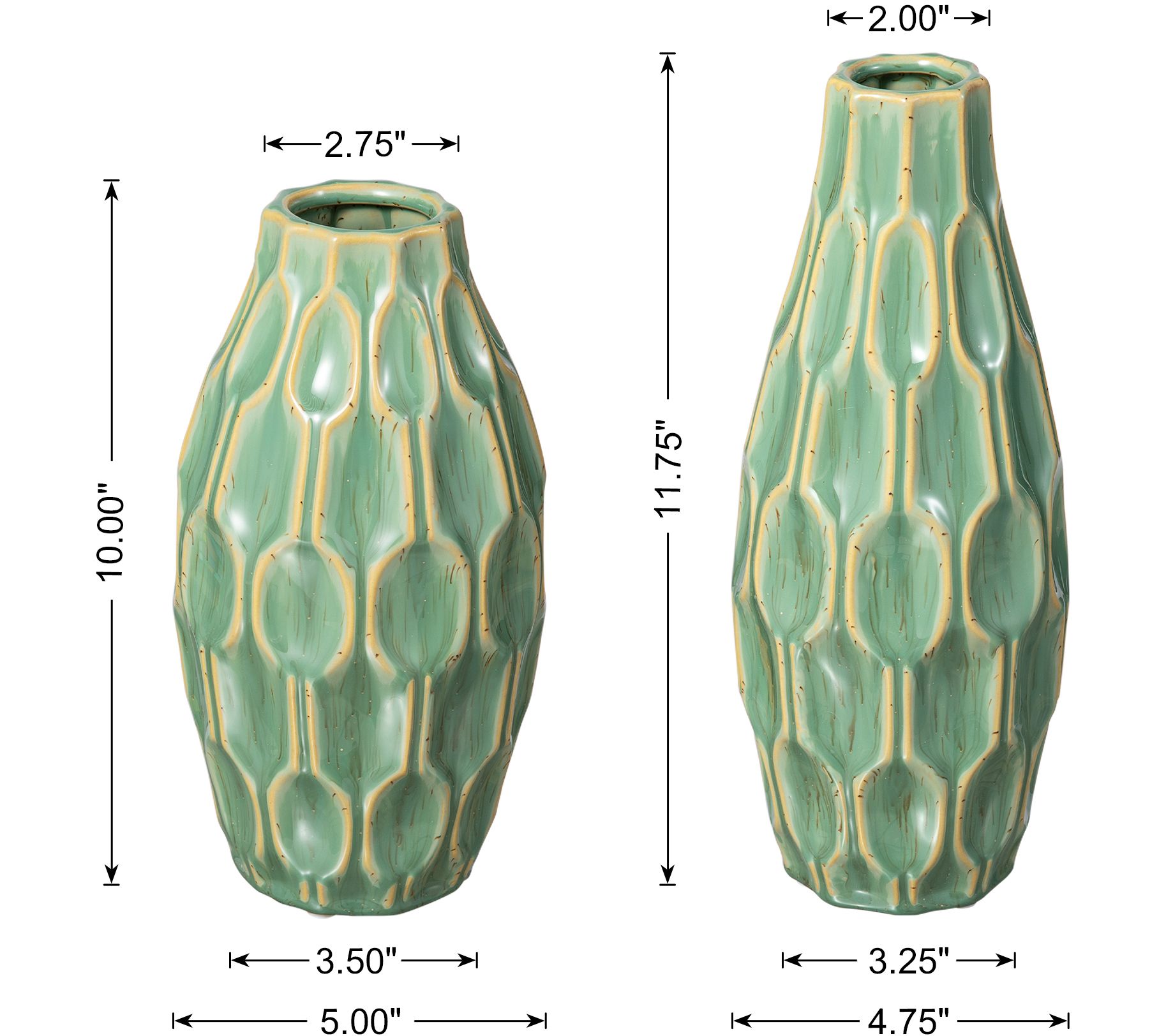 Glitzhome Modern Geometric Ceramic Table VasesSet of 2