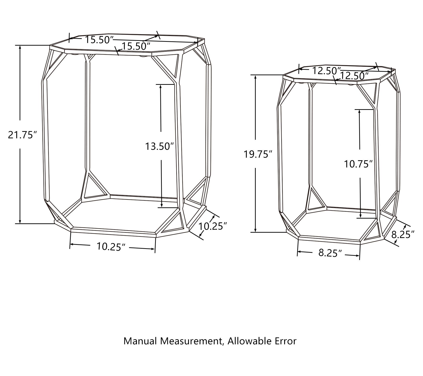 • Measurements: Large 15.5"L x 15.5"W x 21.75"H; Small 12.25"L x 12.25"W x 19.75"H