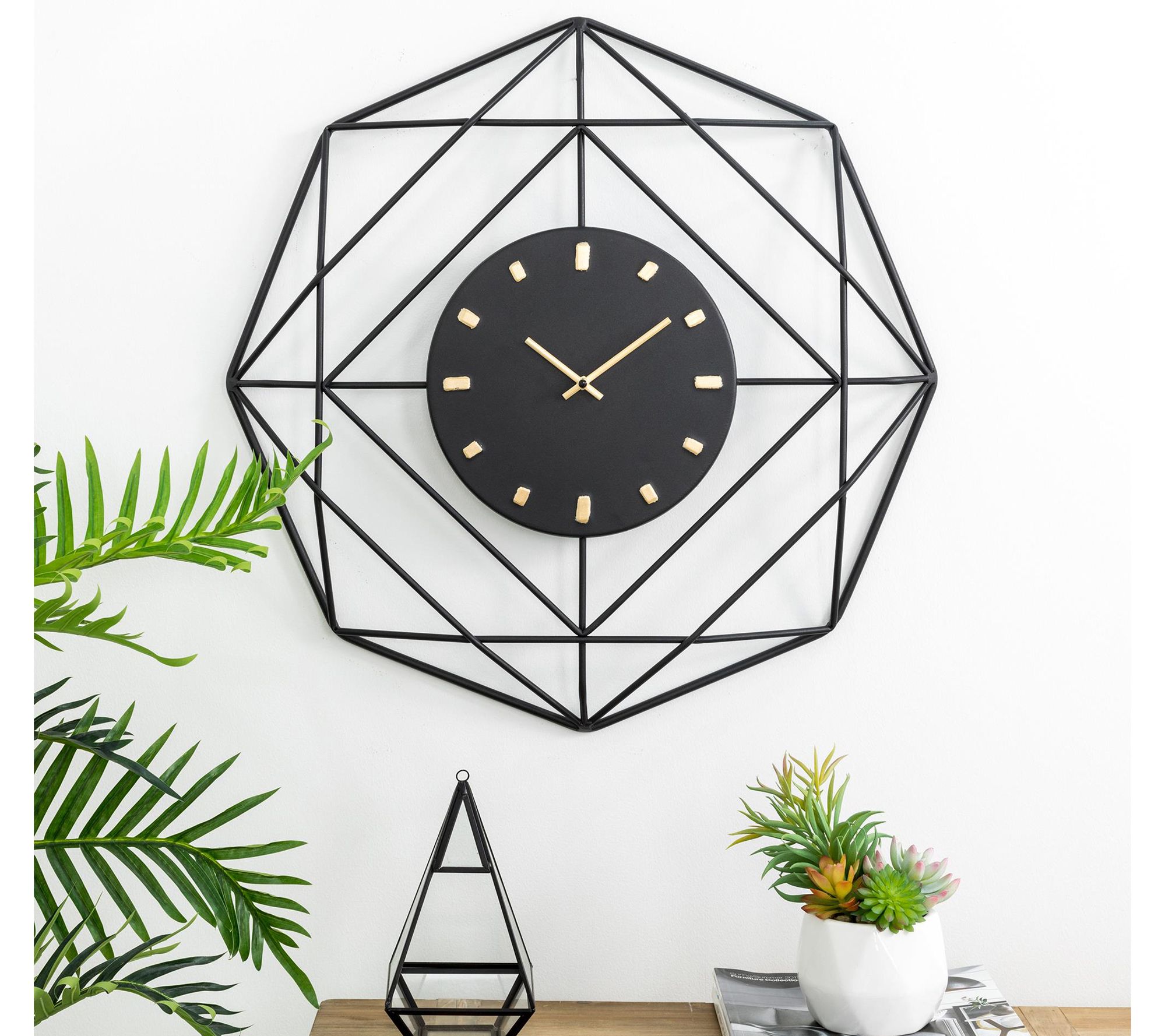 A statement-making geometric frame lends bold midcentury flair to this fetching wall clock that makes a bold impact on your home or office decor. From Glitzhome.