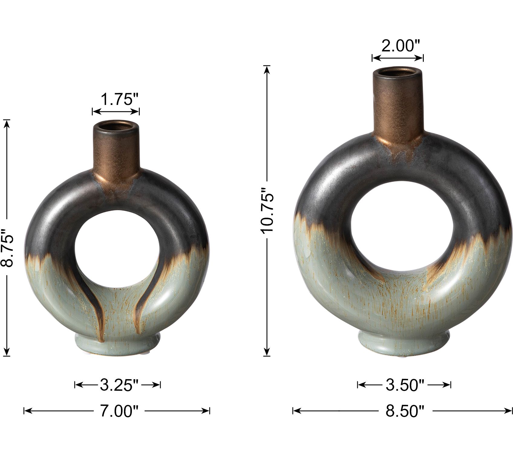 Glitzhome Modern Two-Toned Open Circle CeramicTable Vases S/2