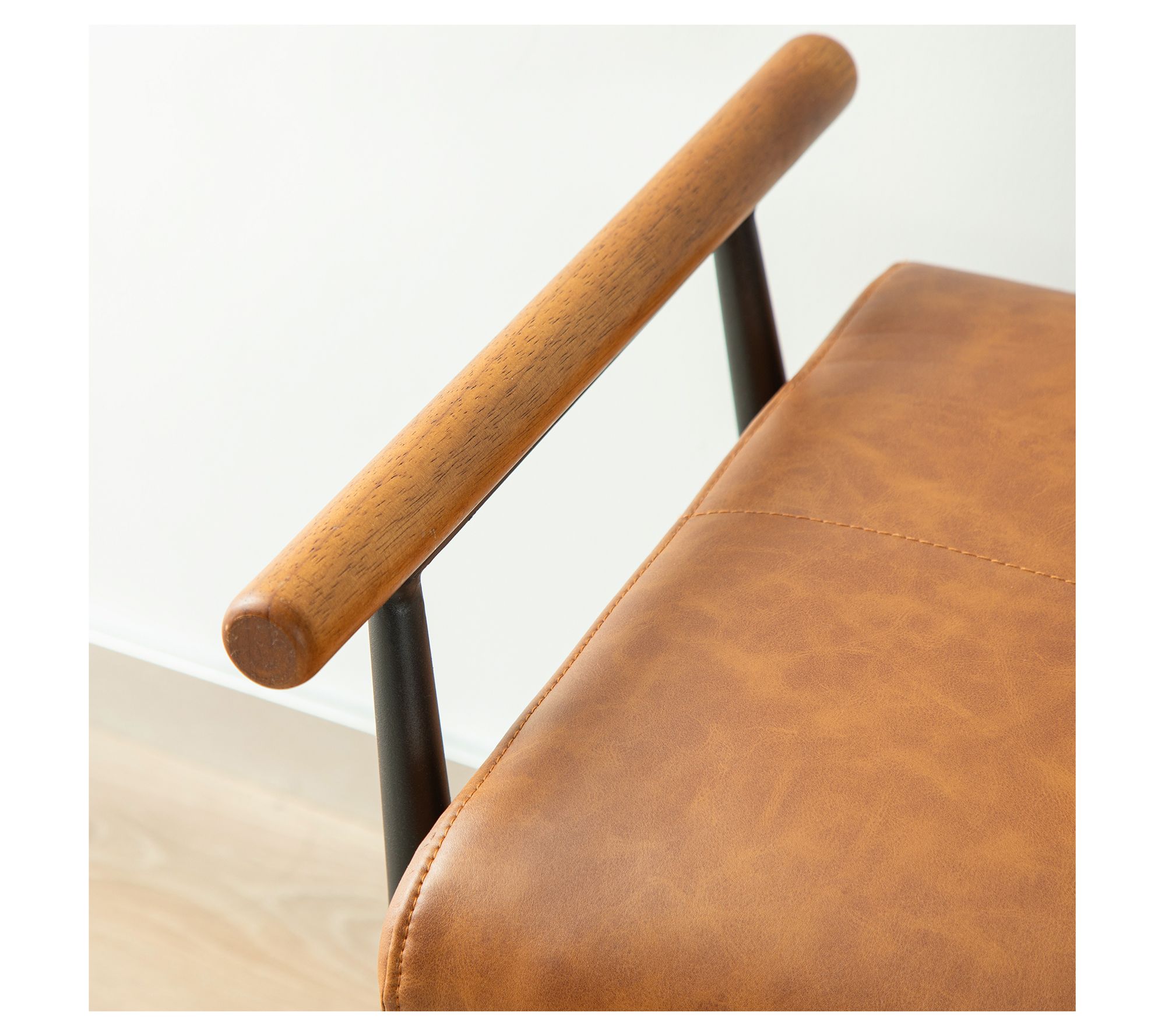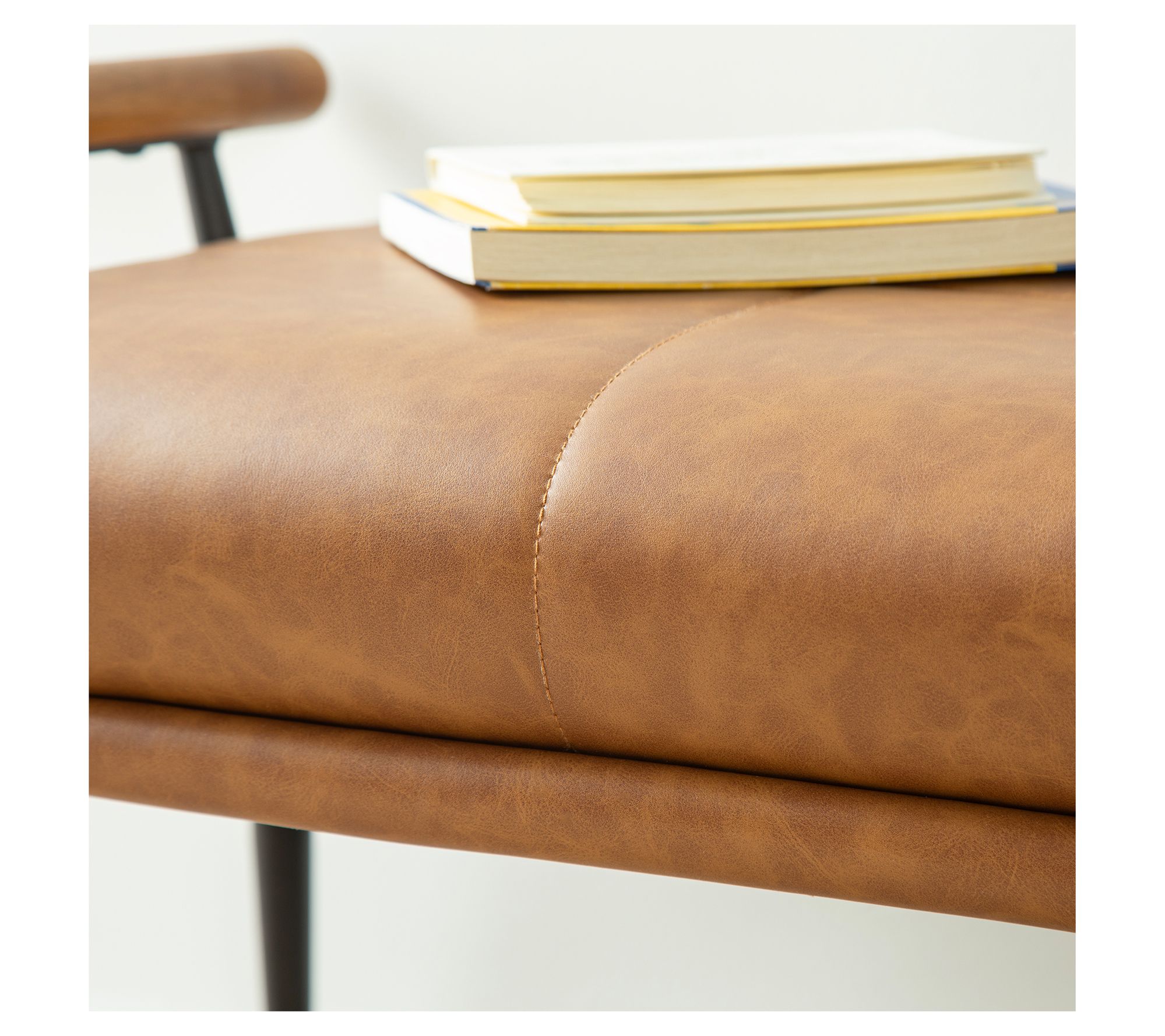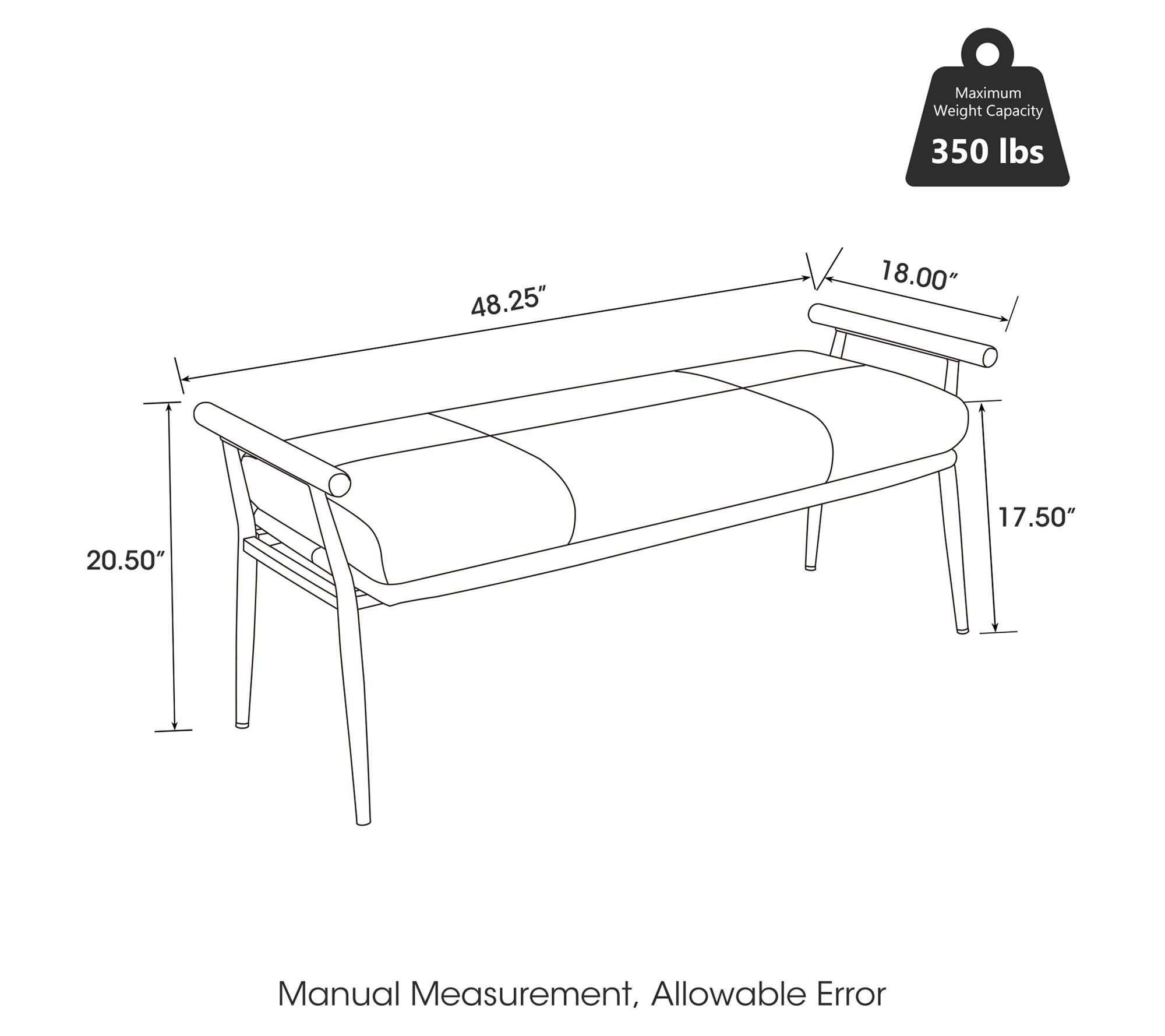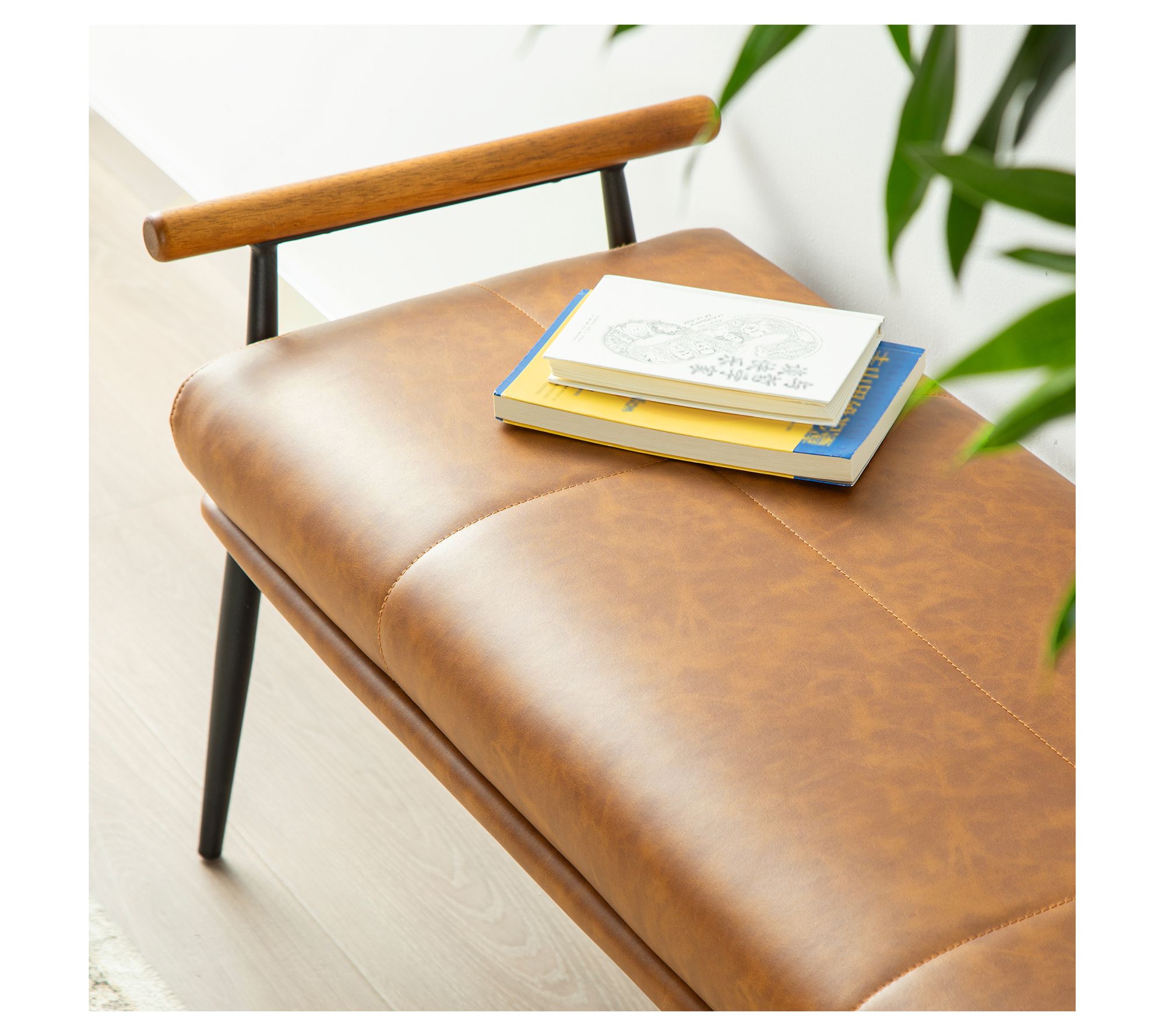 Whether it's draped at the end of your bed or welcoming guests in the entryway, this chic modern bench brings a hint of charm and reliable comfort wherever you need it. Wood armrests and robust iron legs set the scene with striking contrast, while the generously-cushioned seat invites you to unwind after a long day. Adjustable foot pegs help keep flooring in top shape. From Glitzhome.