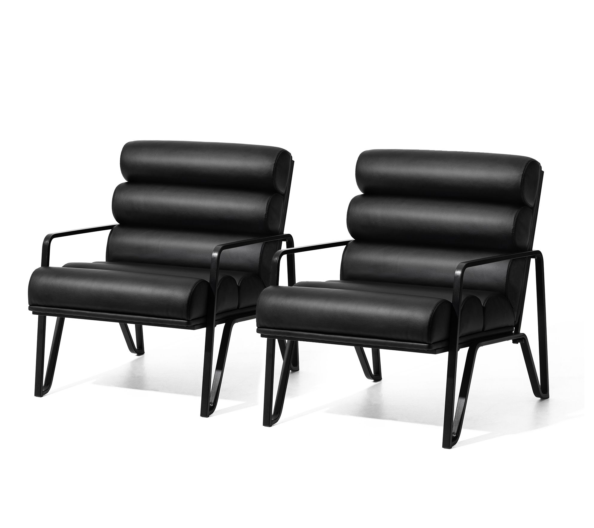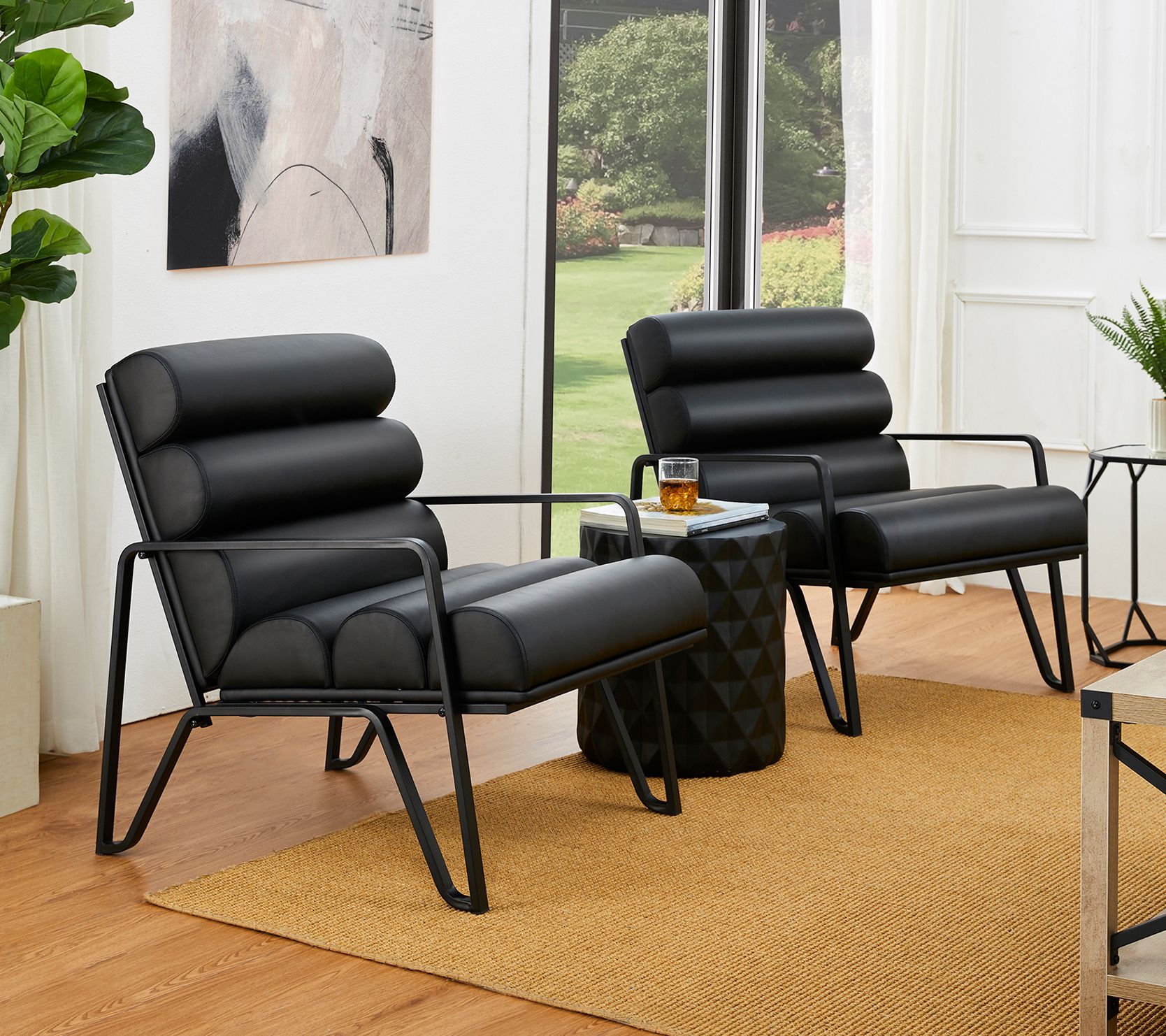 Glitzhome Modern Wavy Faux Leather Accent Arm Chairs S/2