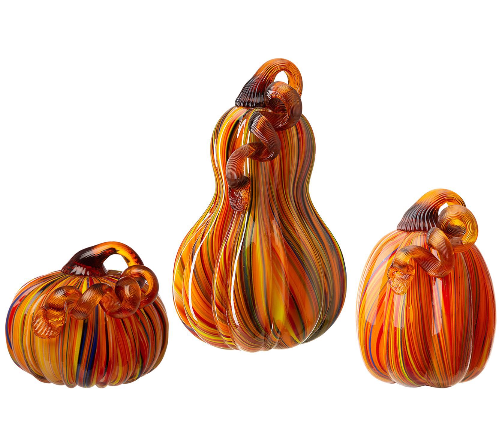 Glitzhome Multi Striped Glass Pumpkins & GourdS/3
