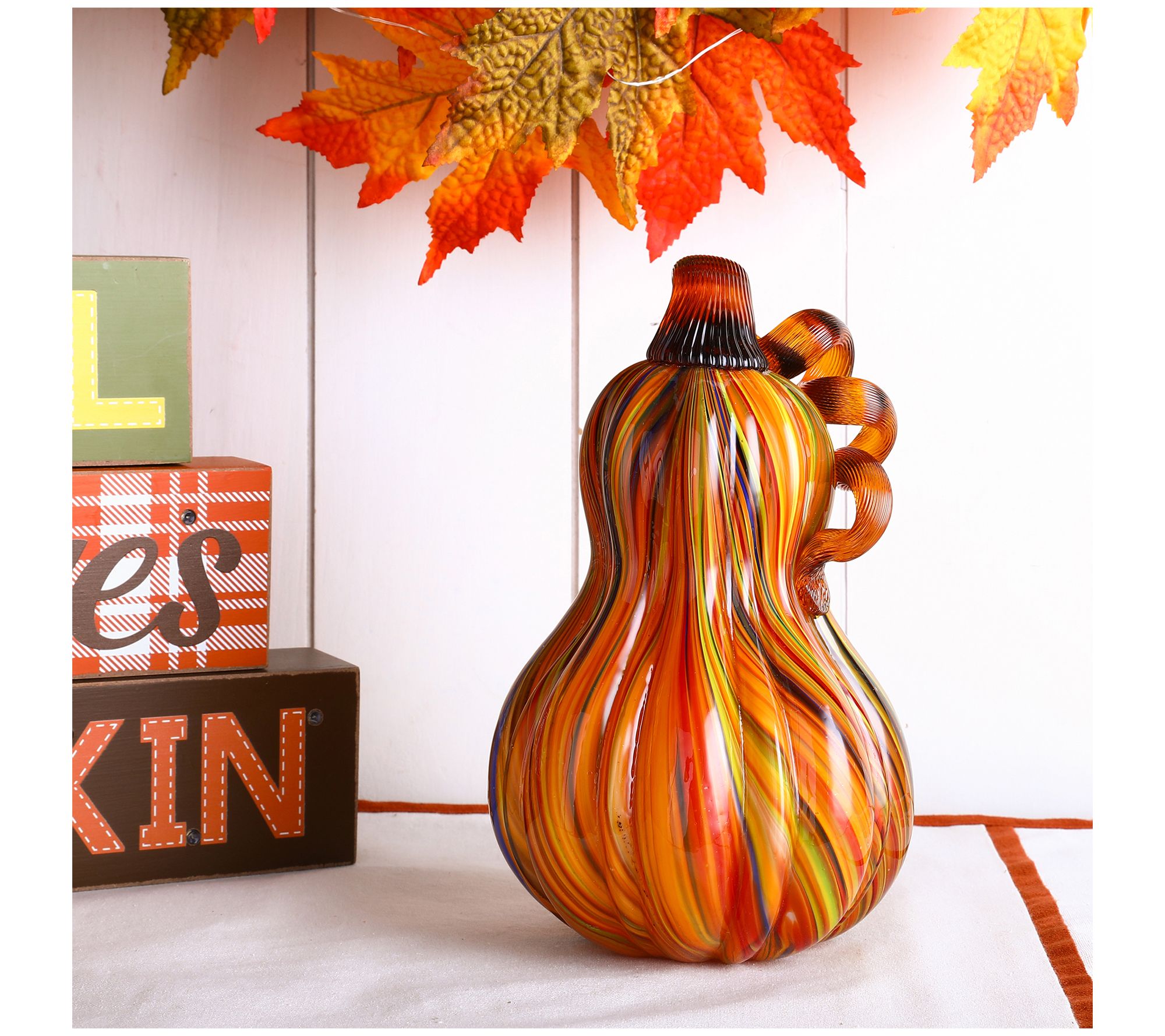 Give your fall decor an artistic upgrade with the eye-catching beauty of these glass pumpkins and gourd. From Glitzhome.