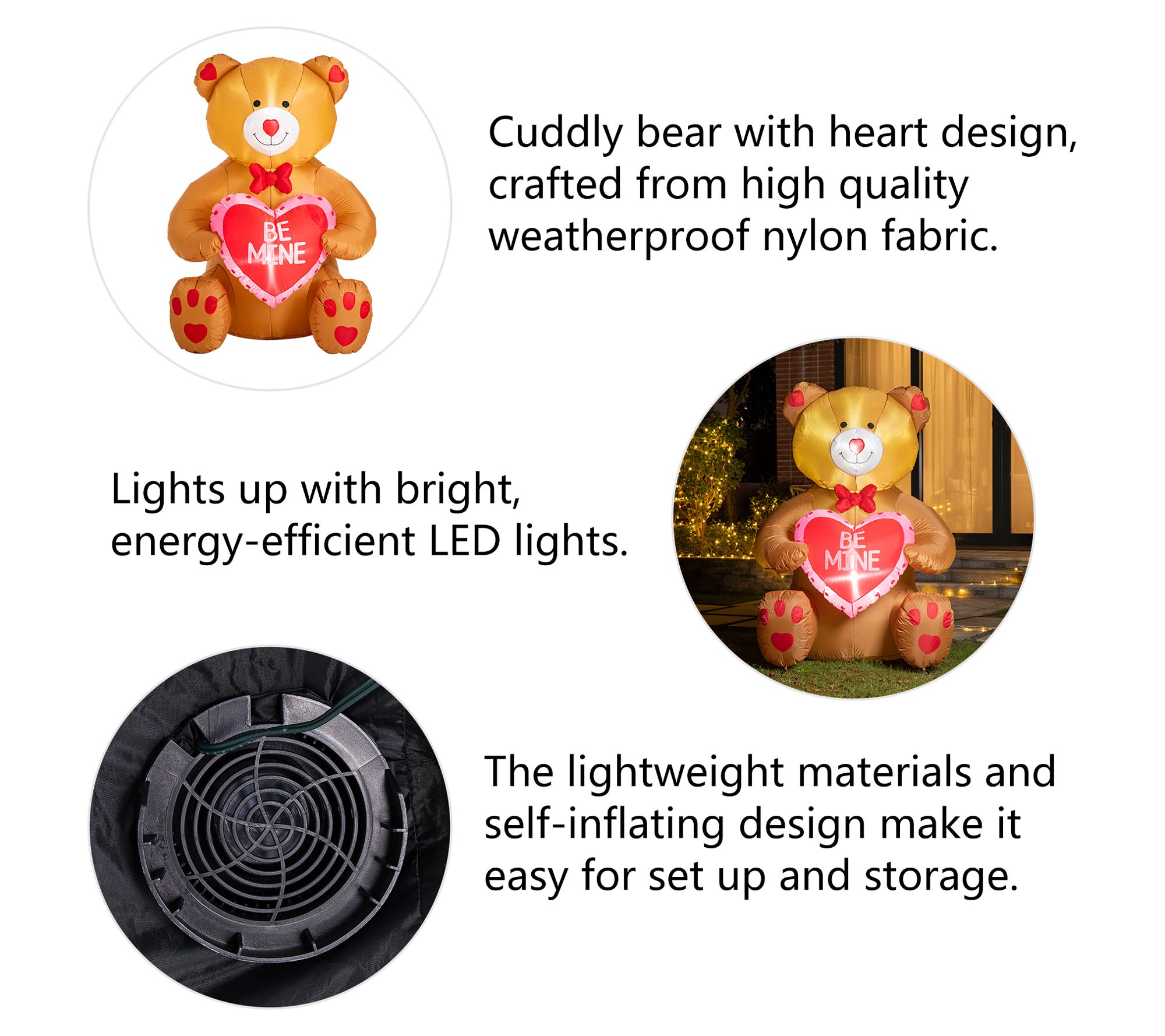 Adorable and full of love, let this inflatable teddy bear welcome your friends and illuminate your yard this Valentine's day, or set him up for a memorable proposal or anniversary. From Glitzhome.