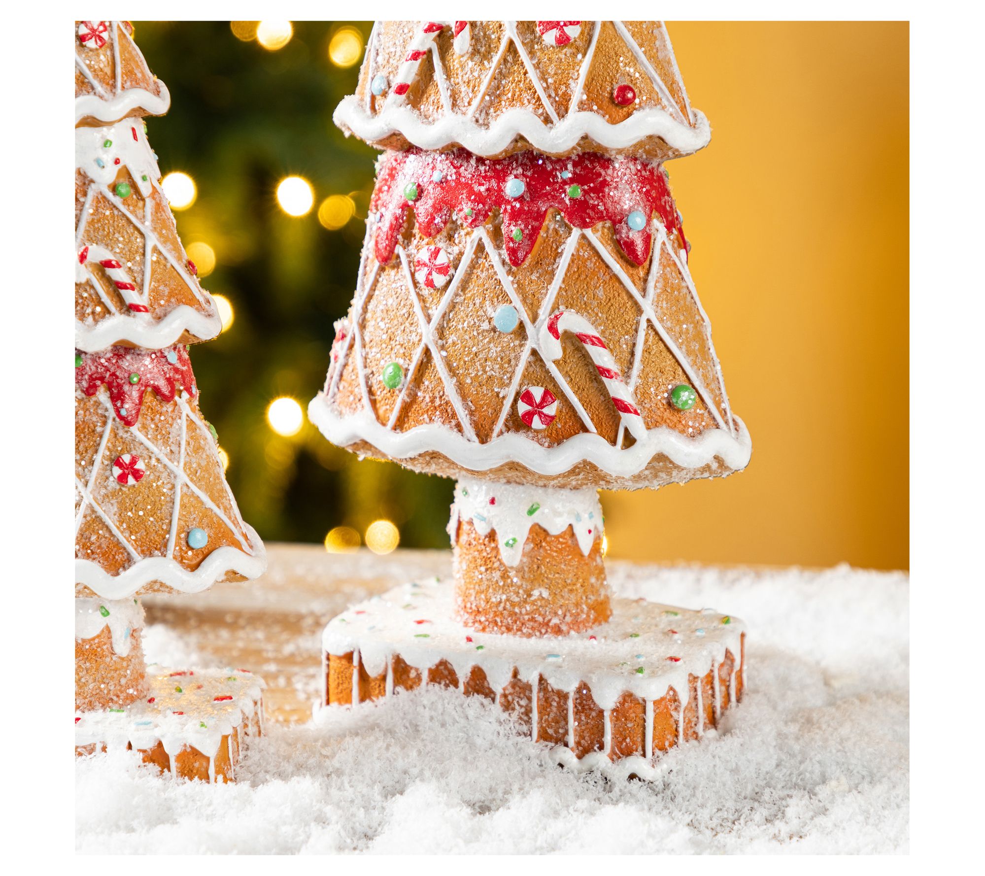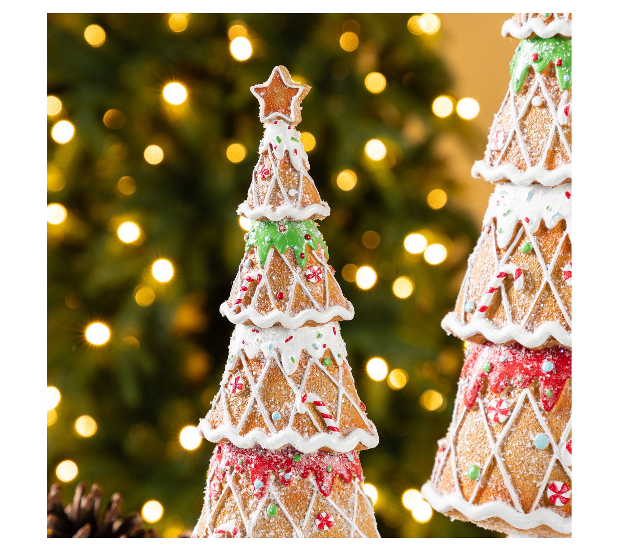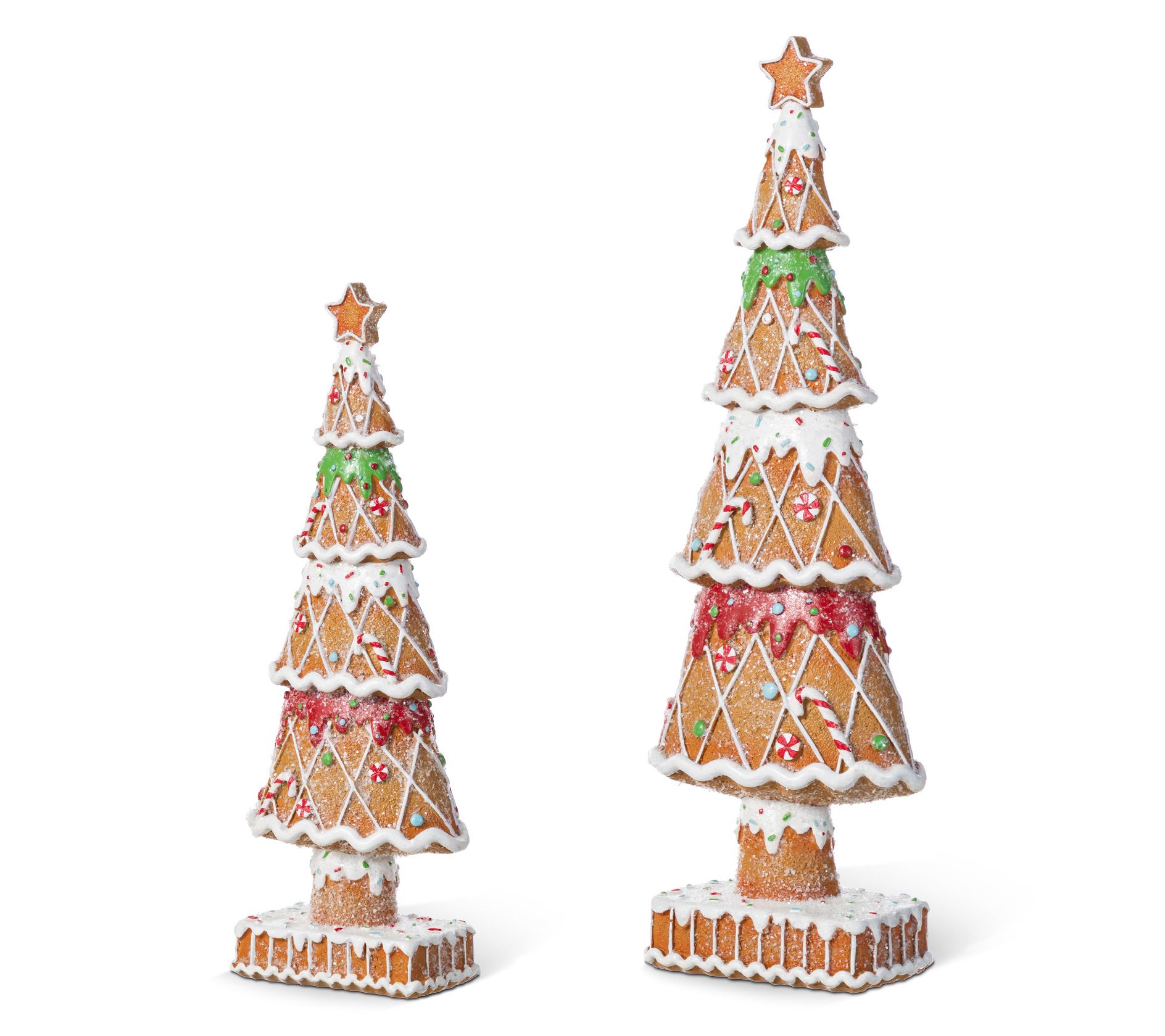 Create a whimsical holiday atmosphere with these enchanting miniature gingerbread trees. Perfectly suited to highlight your festive table setting, each piece is carefully crafted, capturing the delightful details of colorful candies and a bright star on top. These charming decorations, made of resin, bring a cheerful cheer to any nook or cranny, ensuring that your holiday season sparkles just a little brighter. From Glitzhome.