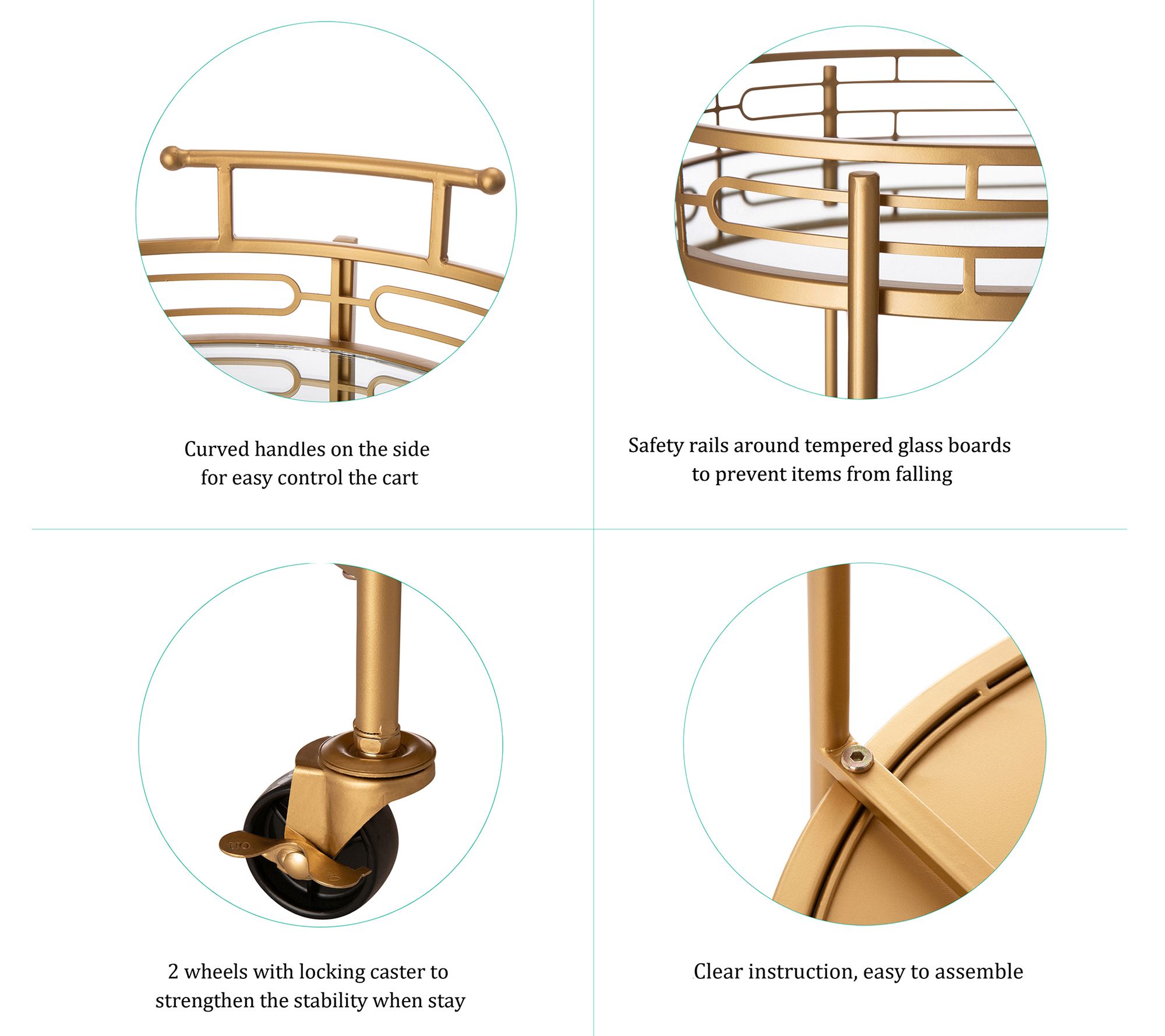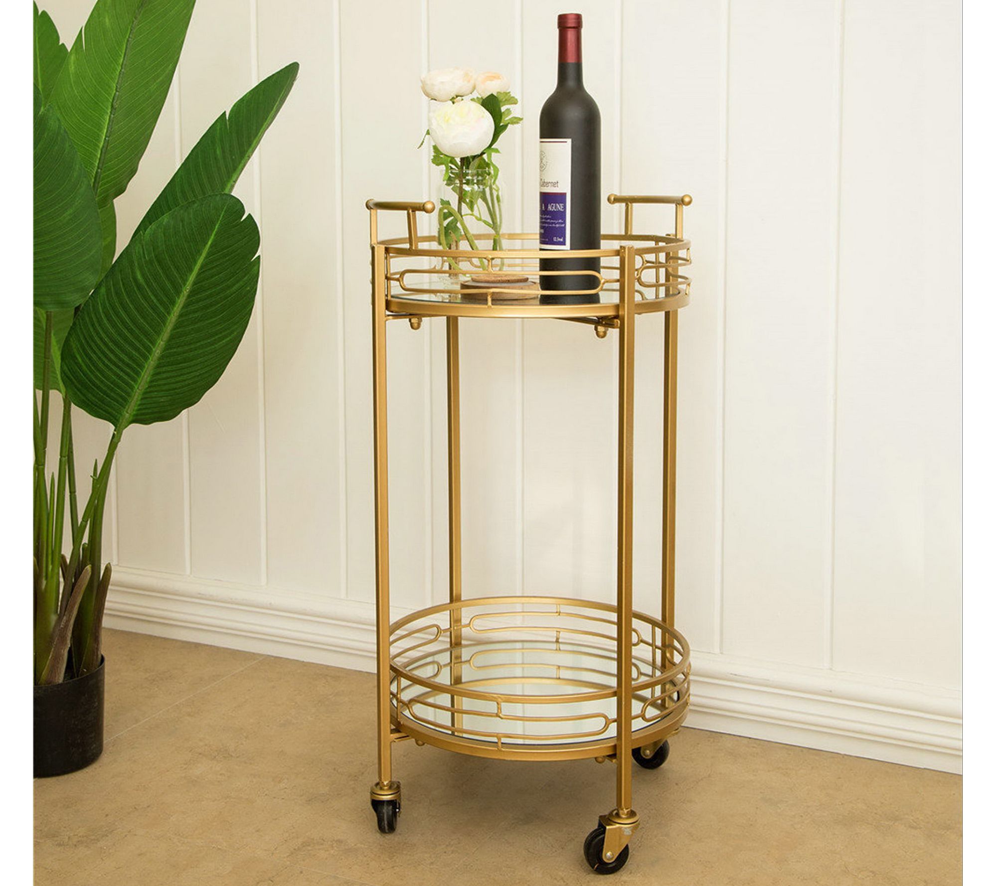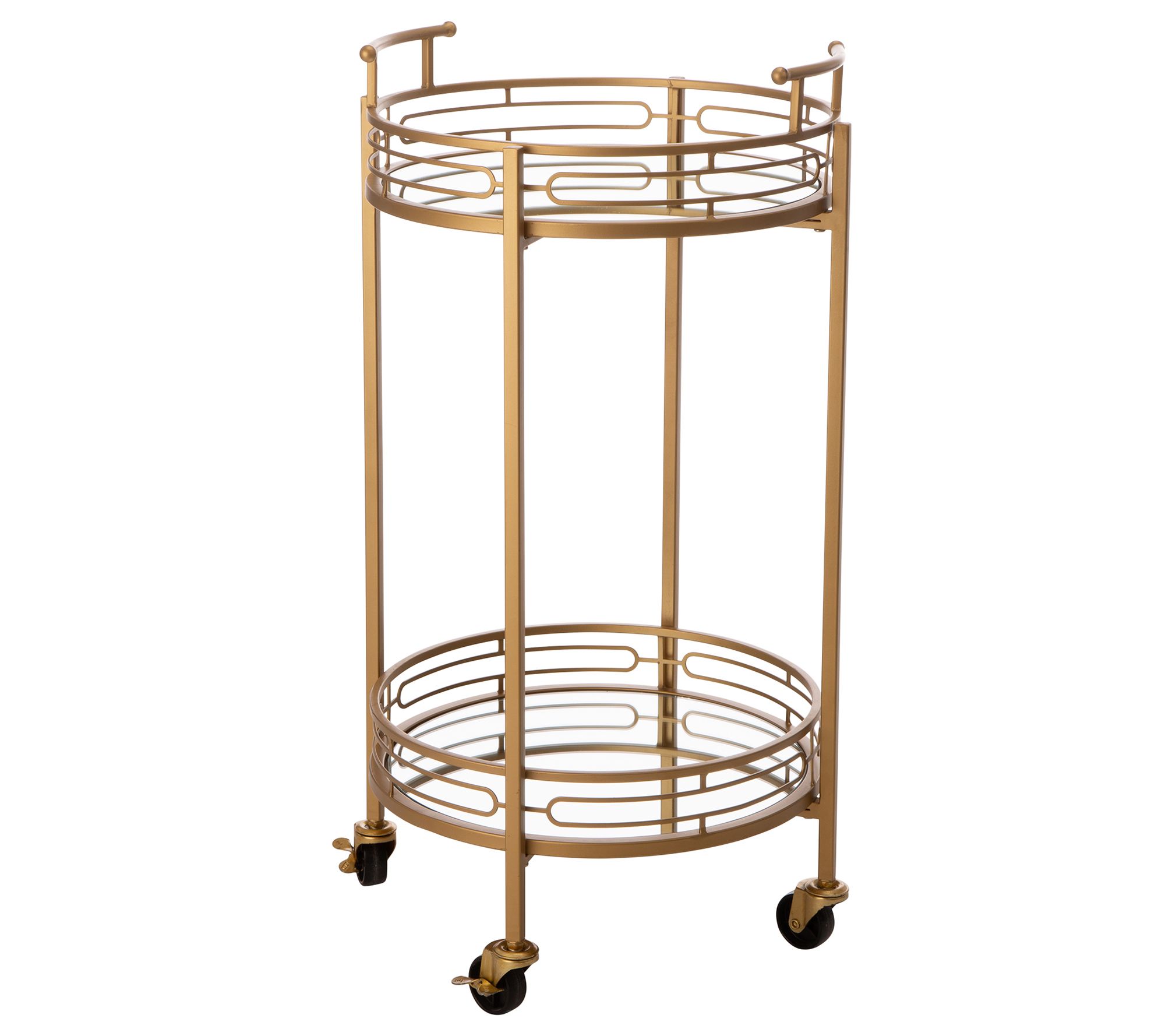 Glitzhome Round Two Tier Mirrored Top Bar Cartn Casters