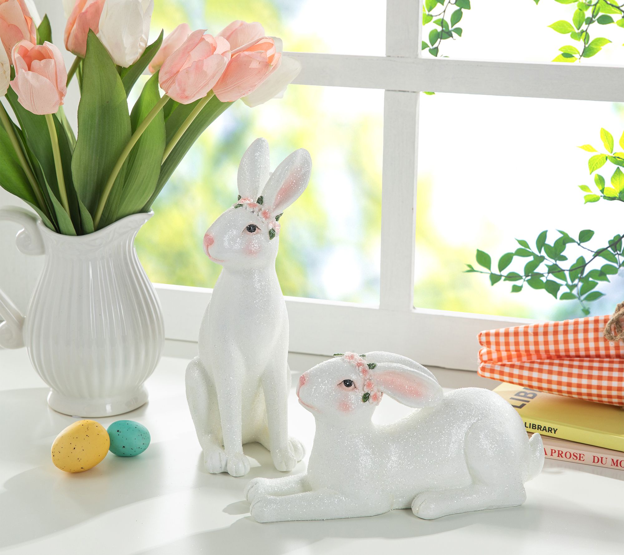 Capture the playful beauty of spring with this pair of rabbits, each featuring floral accents and a sparkling glitter finish. From Glitzhome.