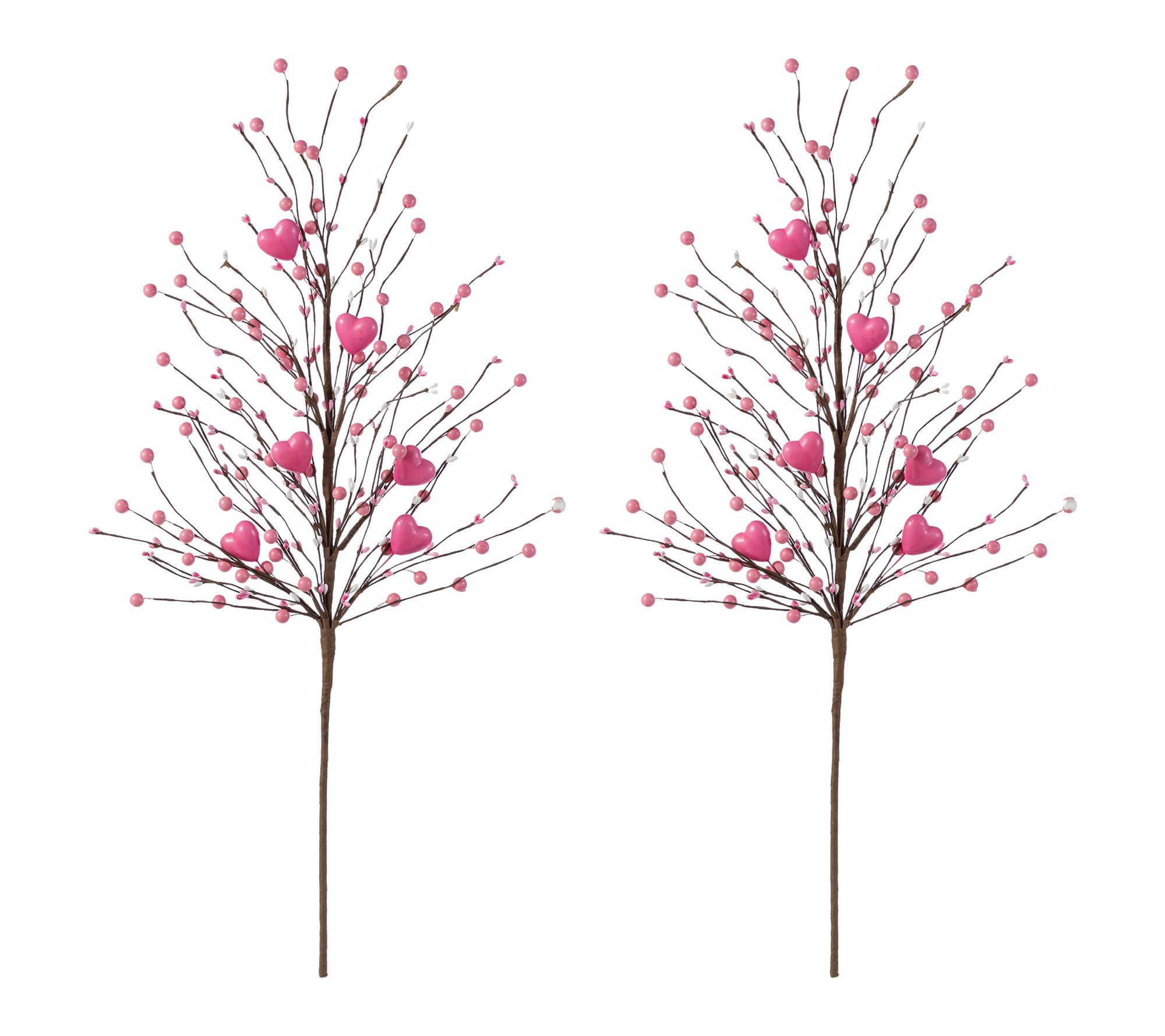 Glitzhome Set of 2 28"H Valentine's Berry &Heart Picks