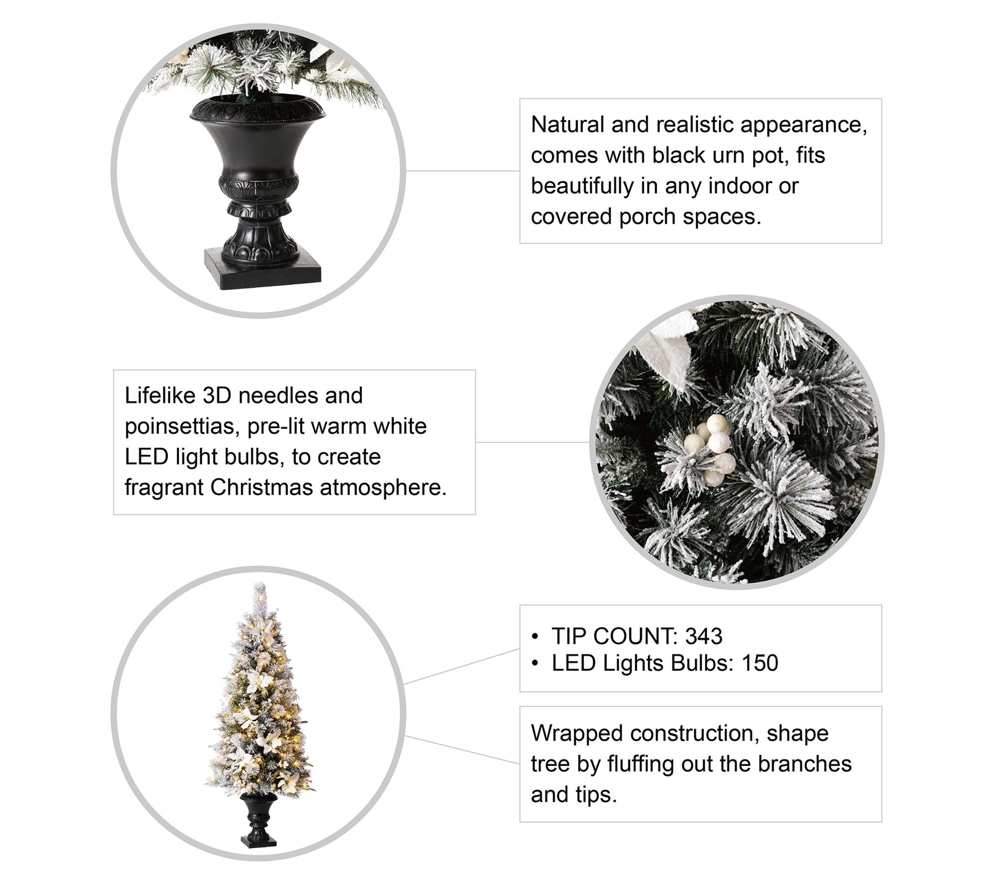 • Prelit with 150 warm white LED lights