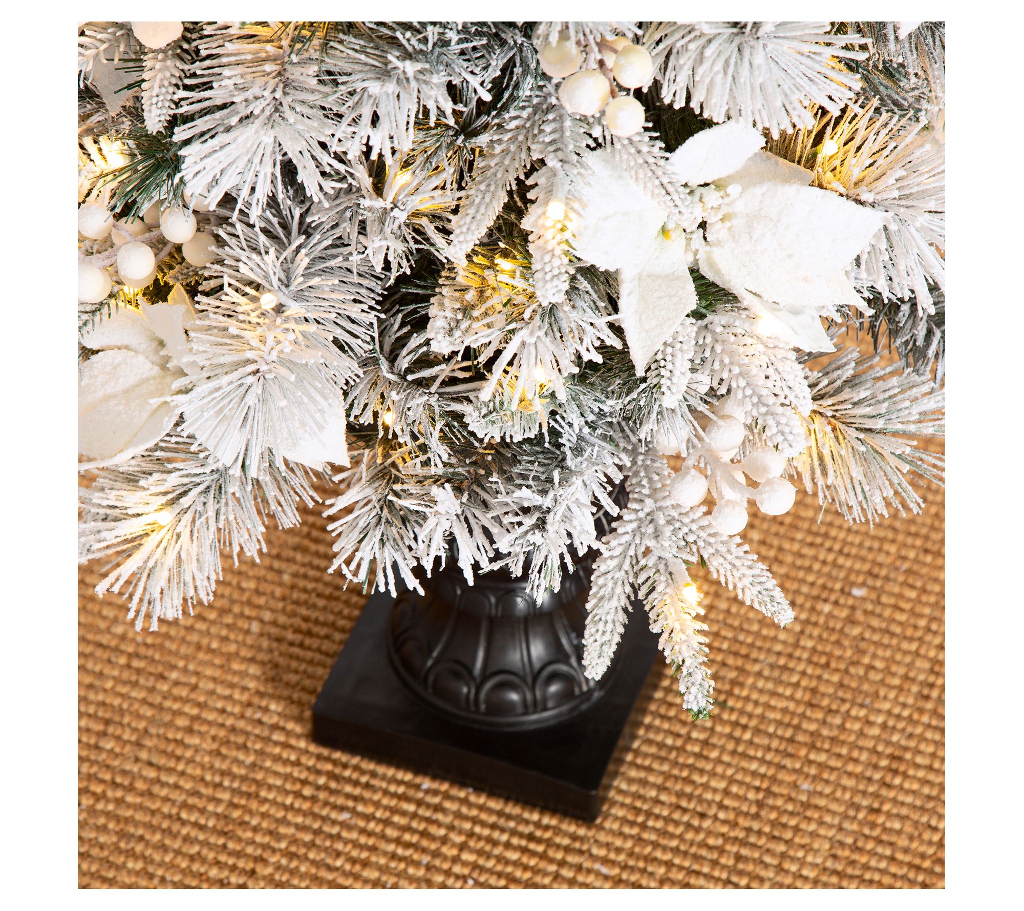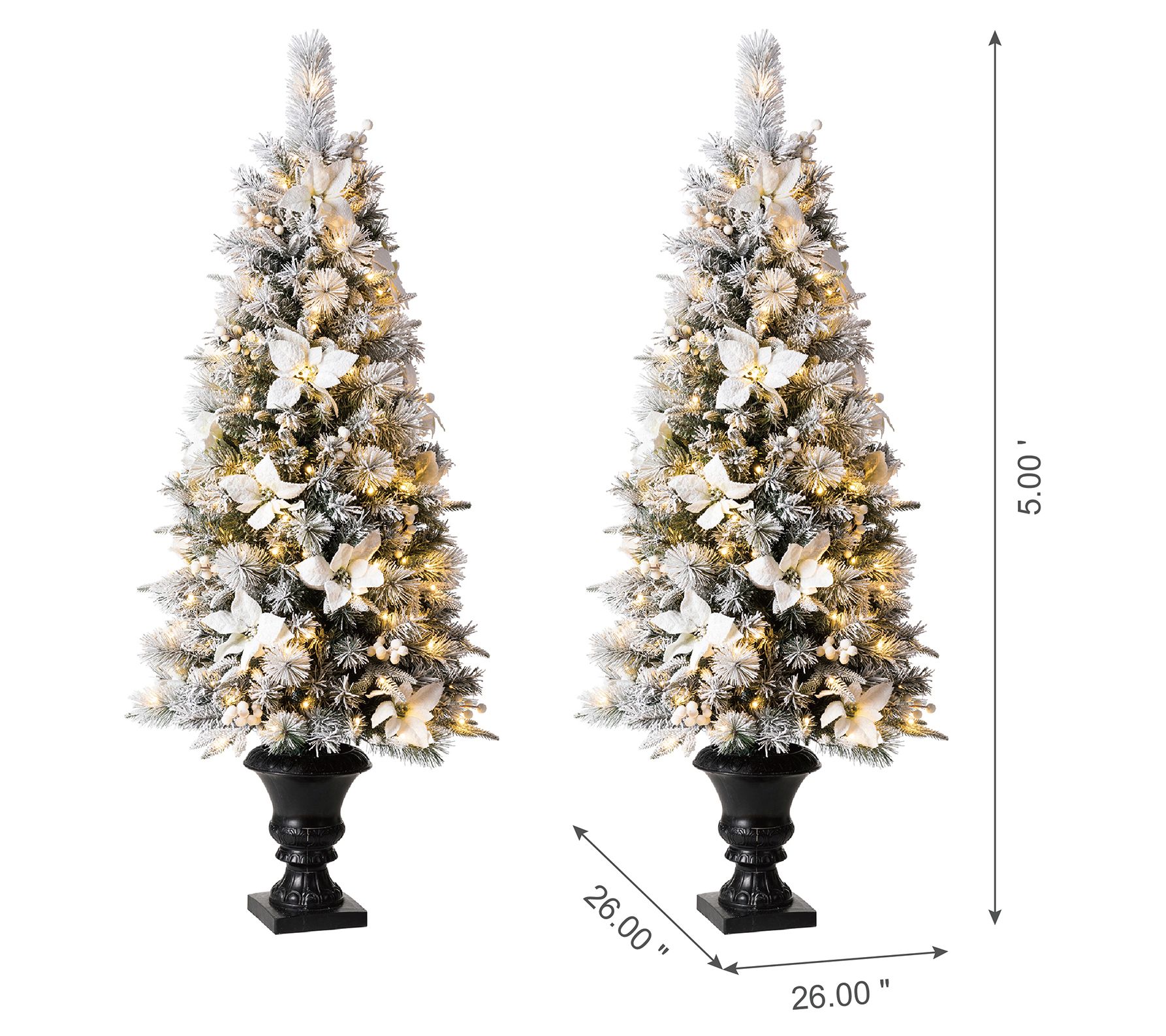 • Includes two lifelike pine Christmas trees in black urn pots