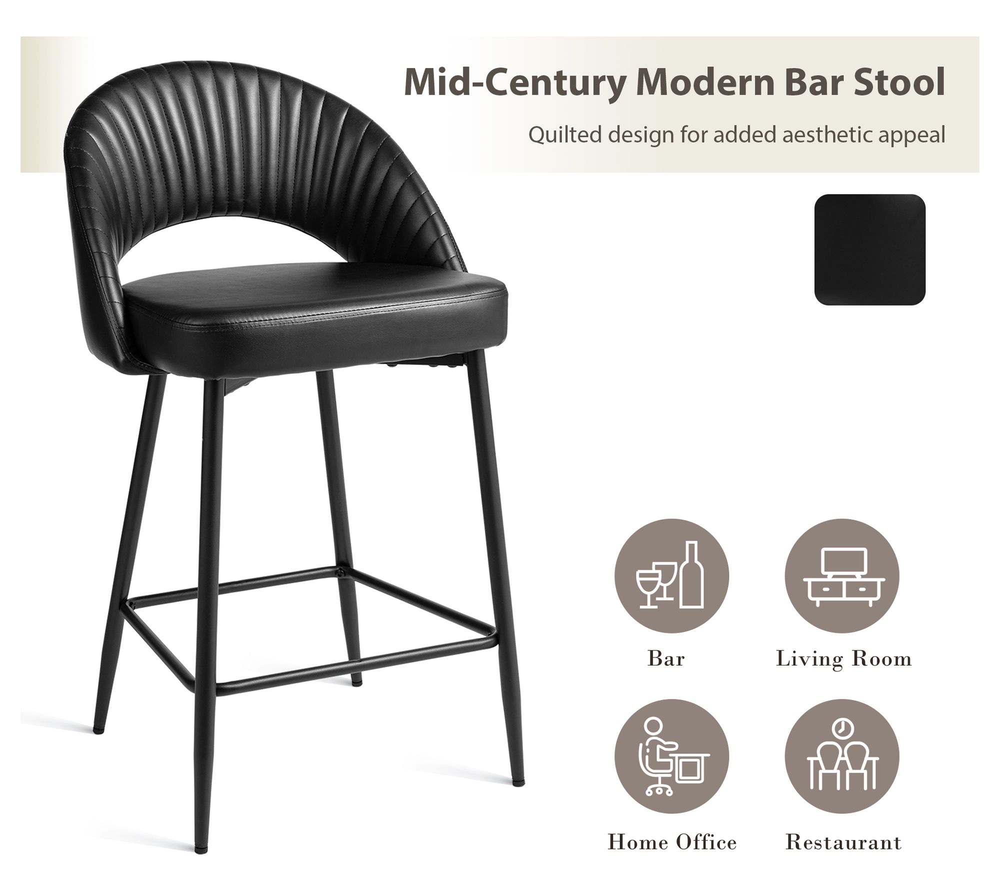 Glitzhome Set of 2 Modern Quilted Leatherette Counter Stool