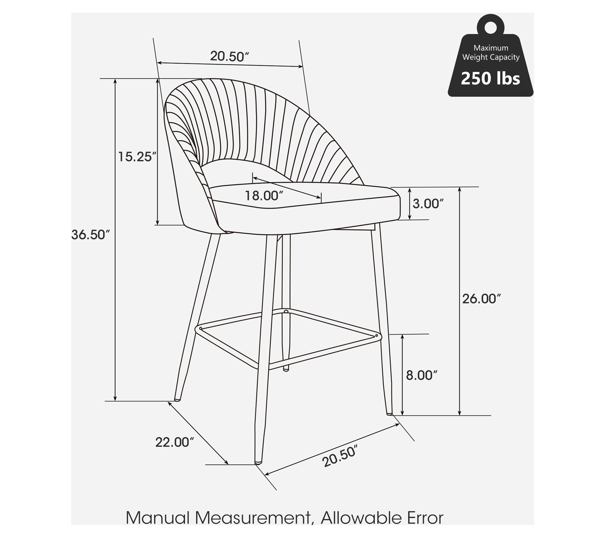 • Measures approximately 22"L x 20.5"W x 36.5"H; supports up to 250 lbs