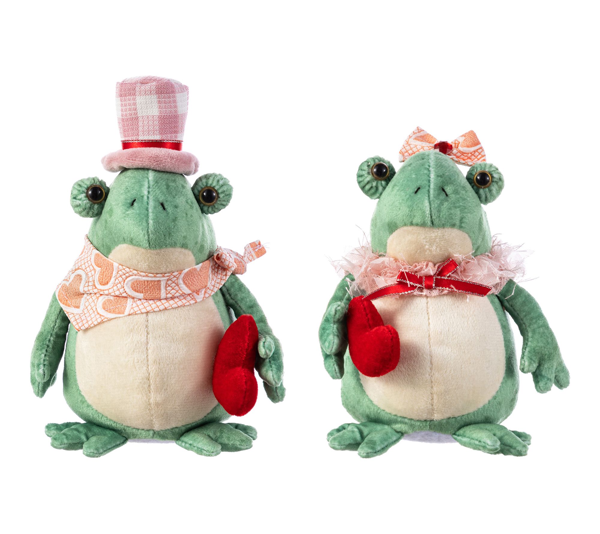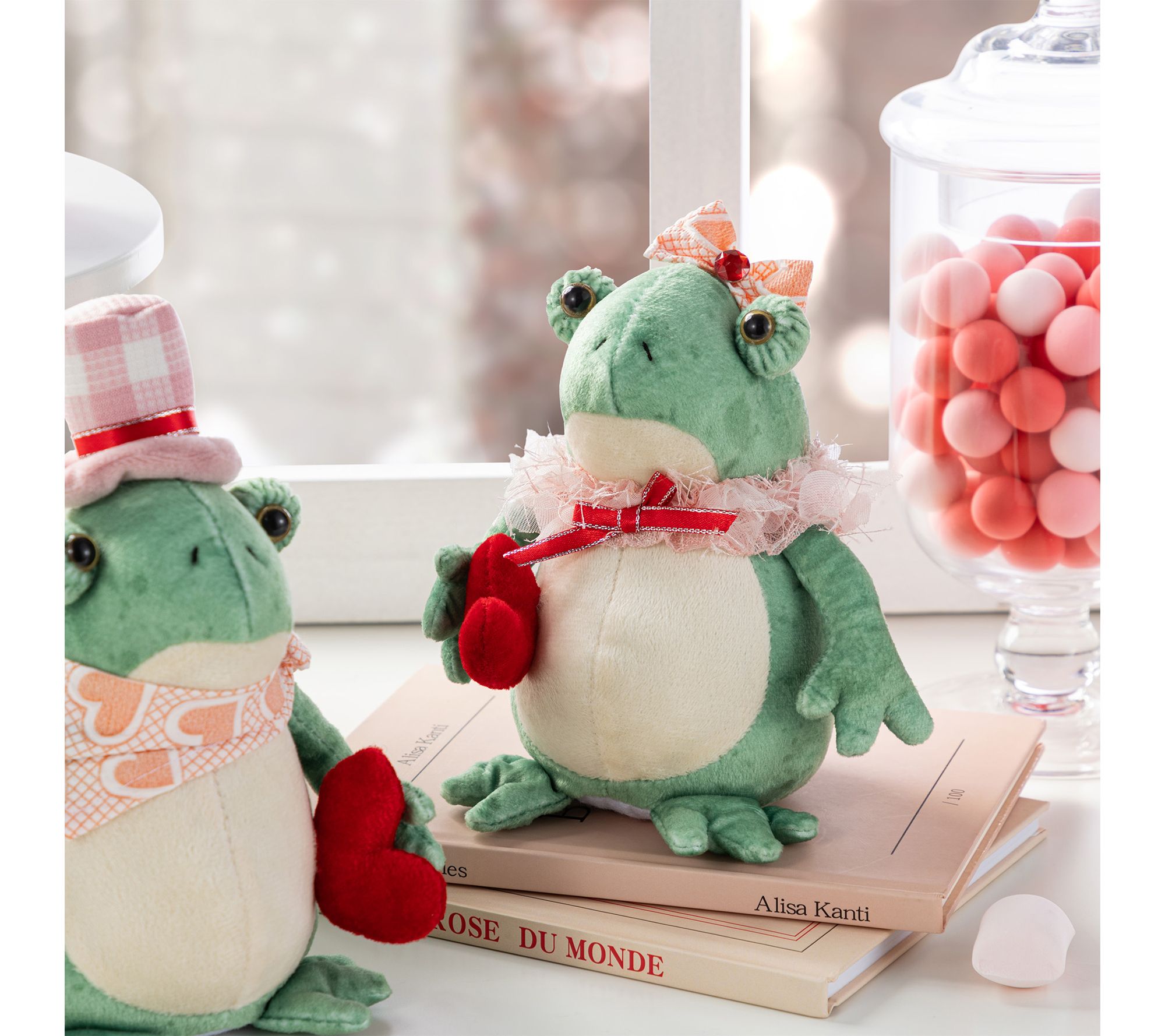 Celebrate love in the cutest way with these Valentine's frog couple figurines, each bringing charming character and heartfelt flair to your holiday display. Styled with playful hats, scarves, and lace, these plush decorations add a delightful romantic touch to tabletops, mantels, or shelves. From Glitzhome.