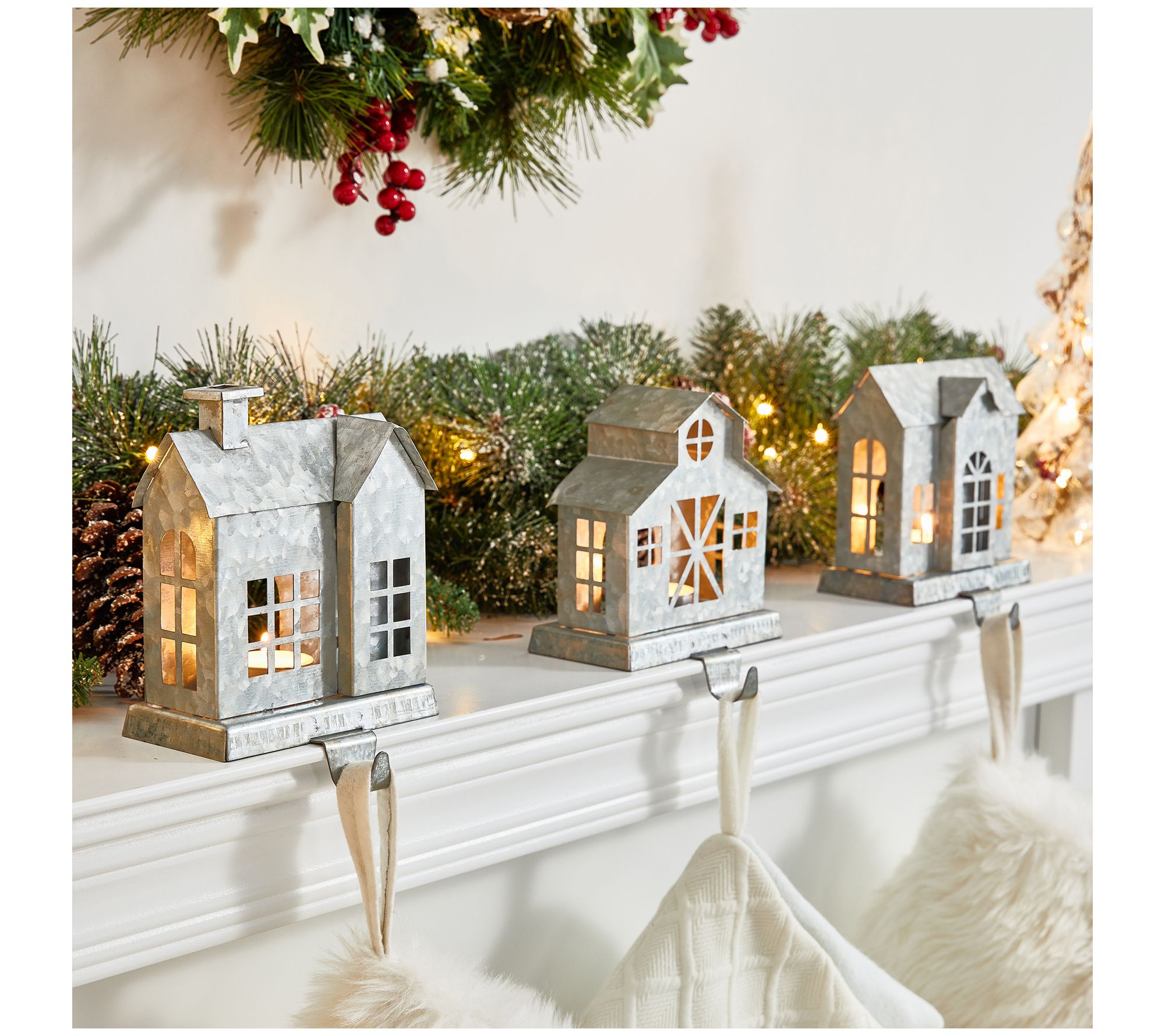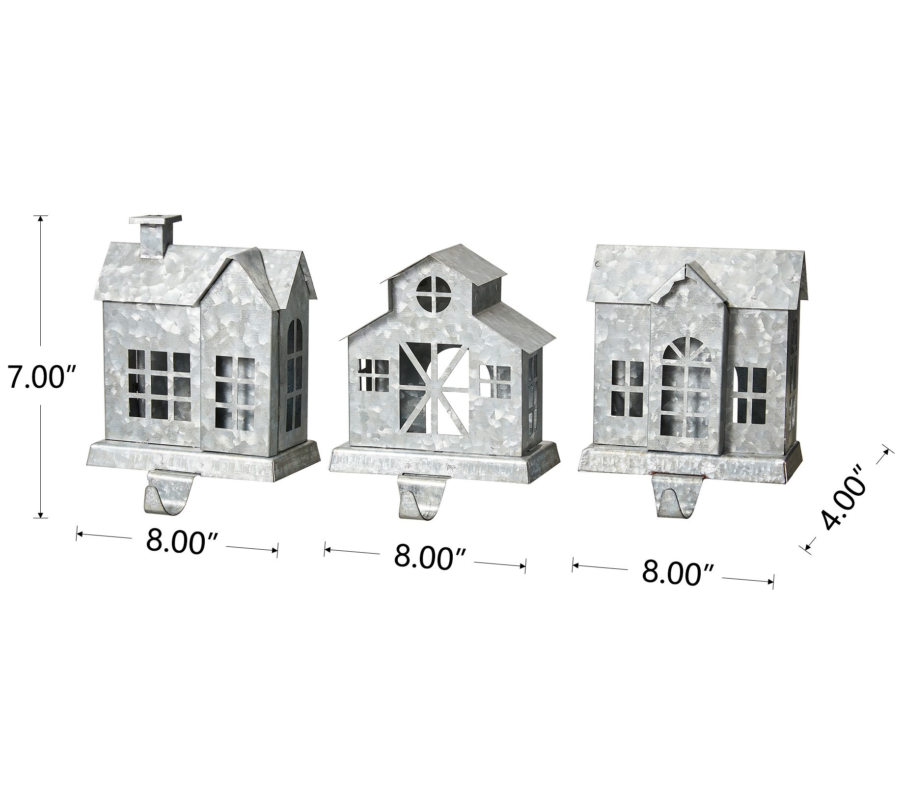 Glitzhome Set of 3 7.00"H Galvanized House Stoc king Holders