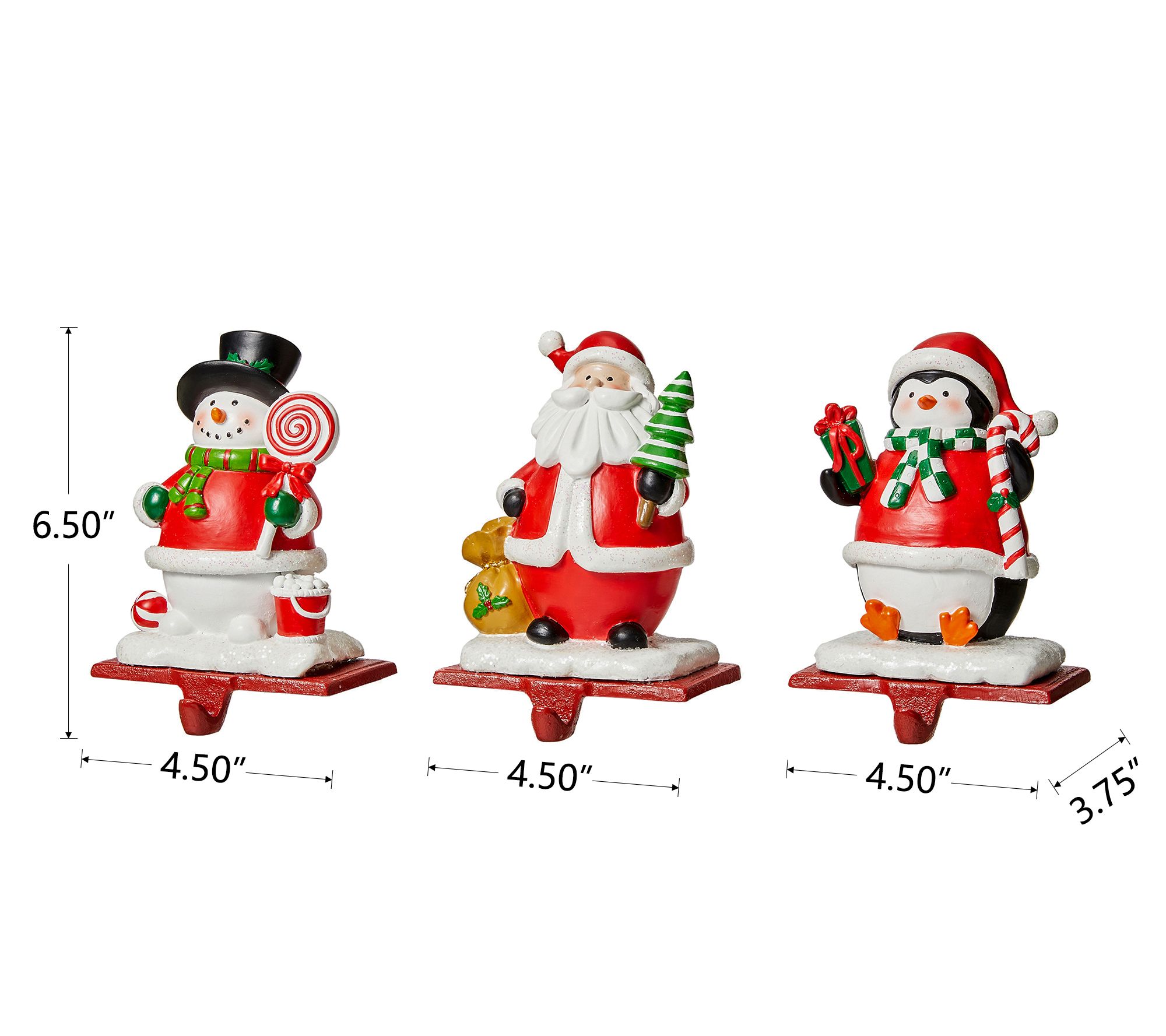 Glitzhome Set of 3 Resin Santa/Snowman/Penguin Stocking Holder