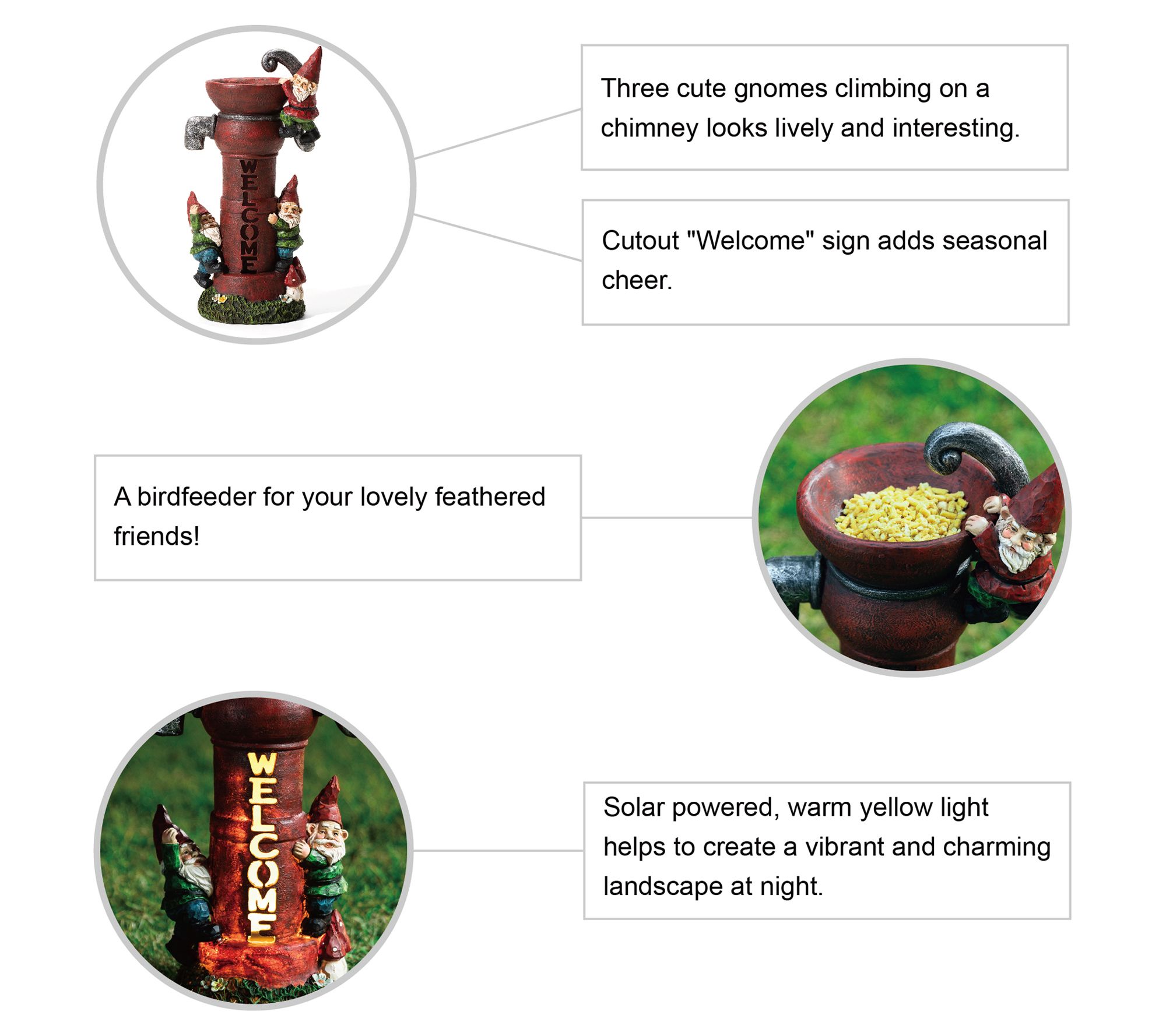 Glitzhome Solar LED Climbing Gnomes Garden Stat ue & BirdFeede