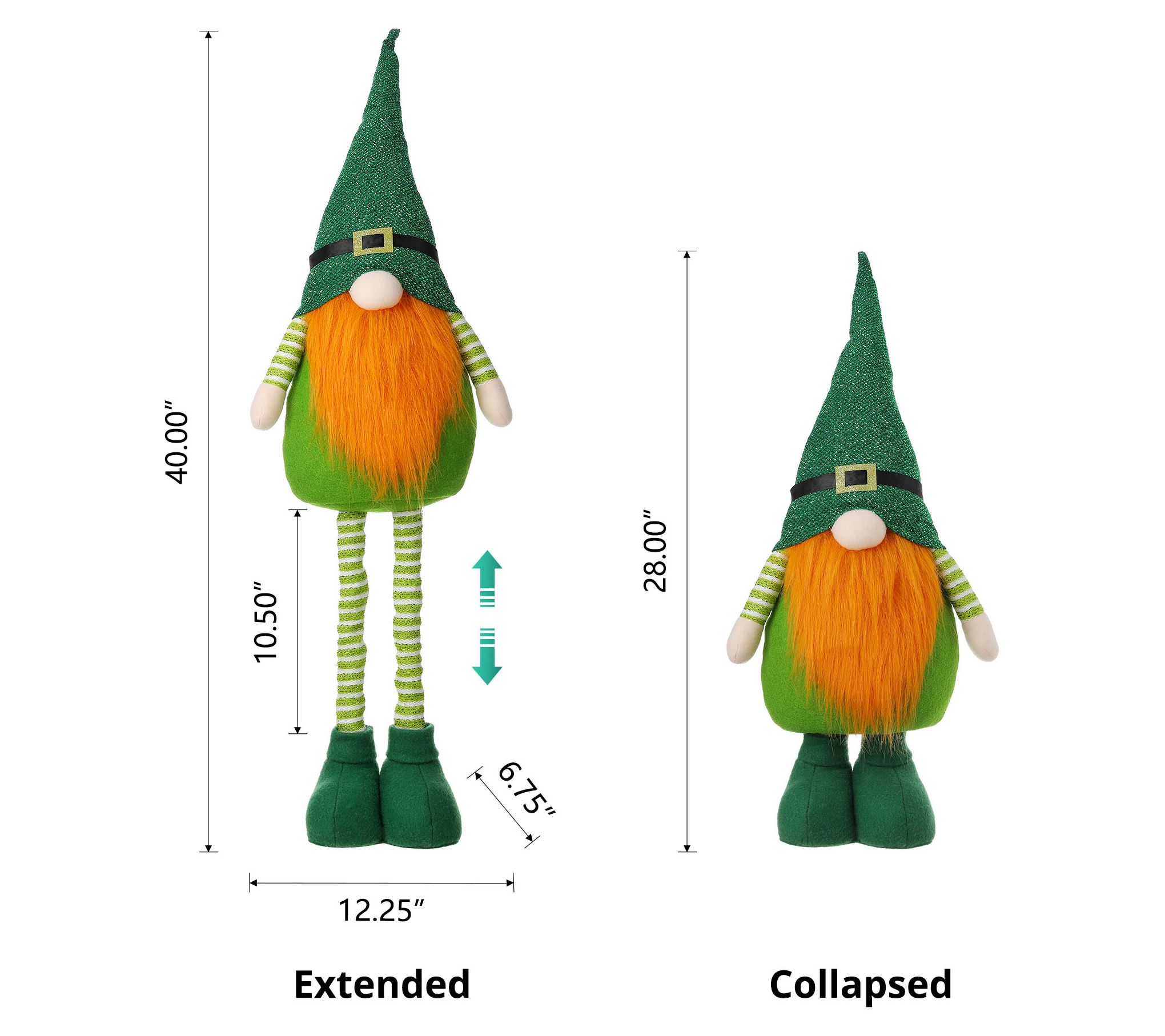 Glitzhome Telescoping Legs St. Patrick's Day Gn ome Leprechaun