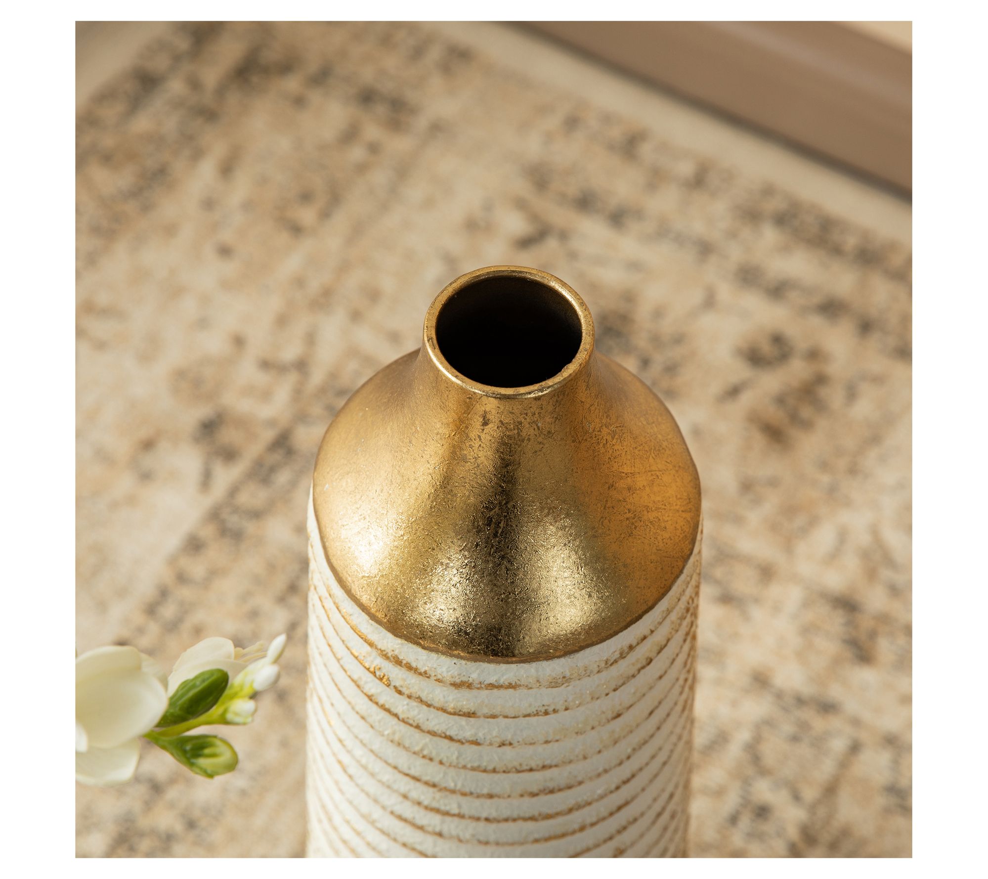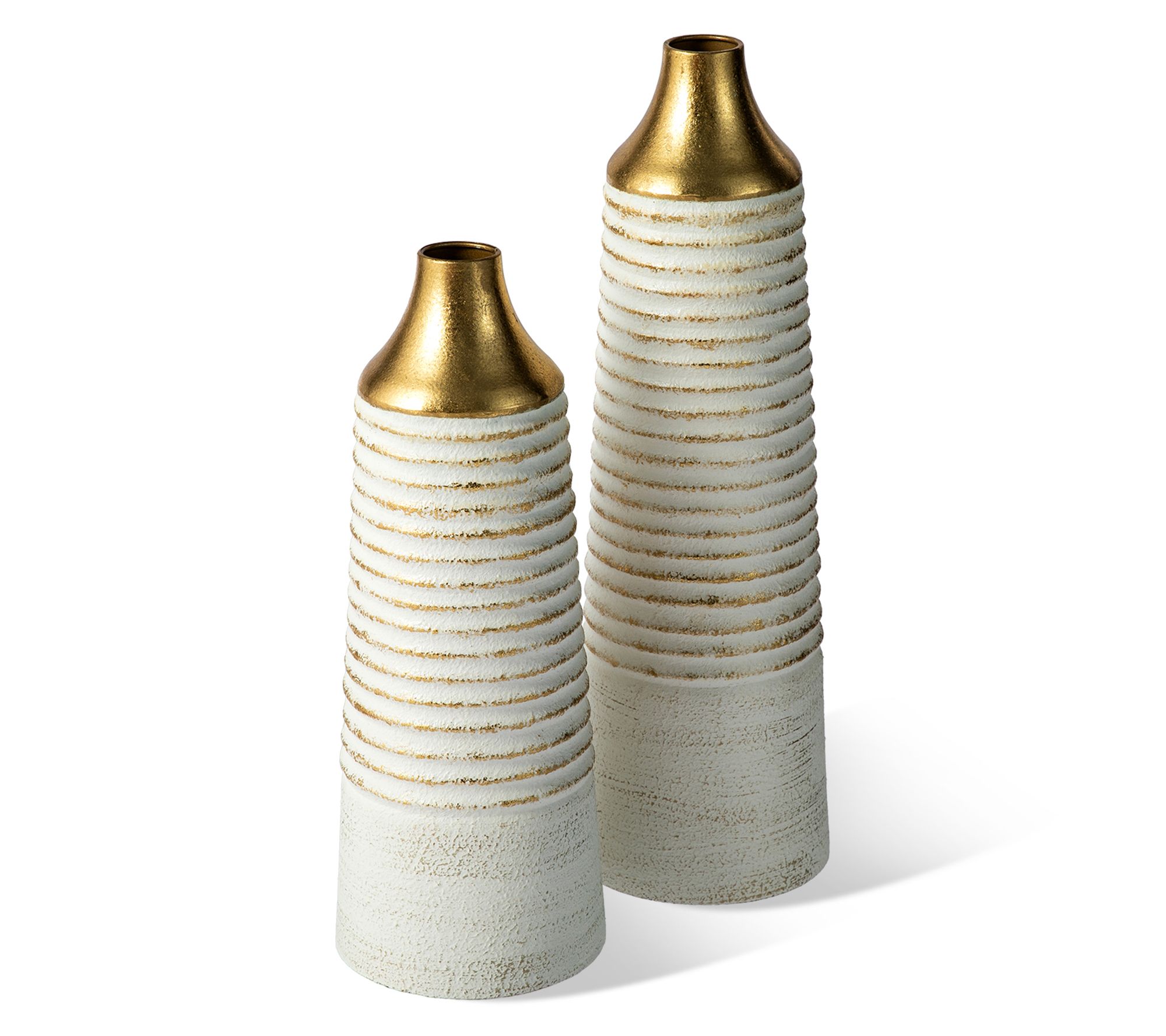 Incorporate elegance and functionality in your space with these beautifully crafted vases. Their modern, striped design paired with a refined goldtone finish promises to catch the eye in any room. Whether nestled among fresh blooms or standing alone as chic decor, they seamlessly enhance home, office, or even restaurant settings, adding a touch of sophistication wherever they reside. From Glitzhome.