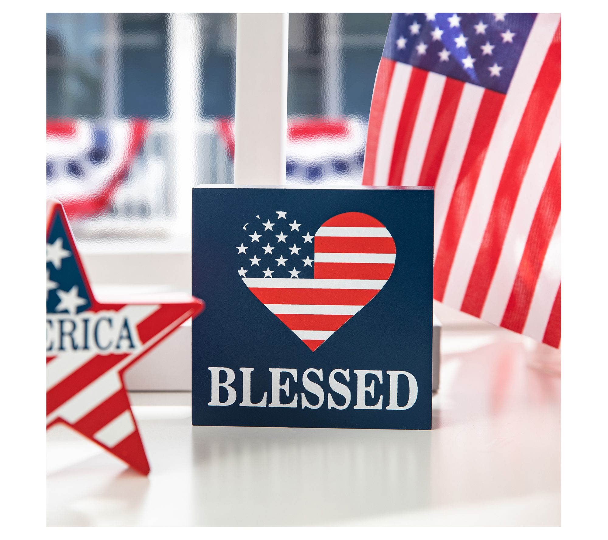 Glitzhome USA Patriotic Americana Wooden BlockTable Signs S/3