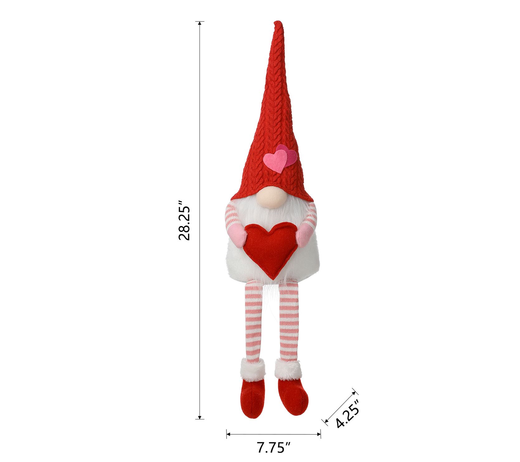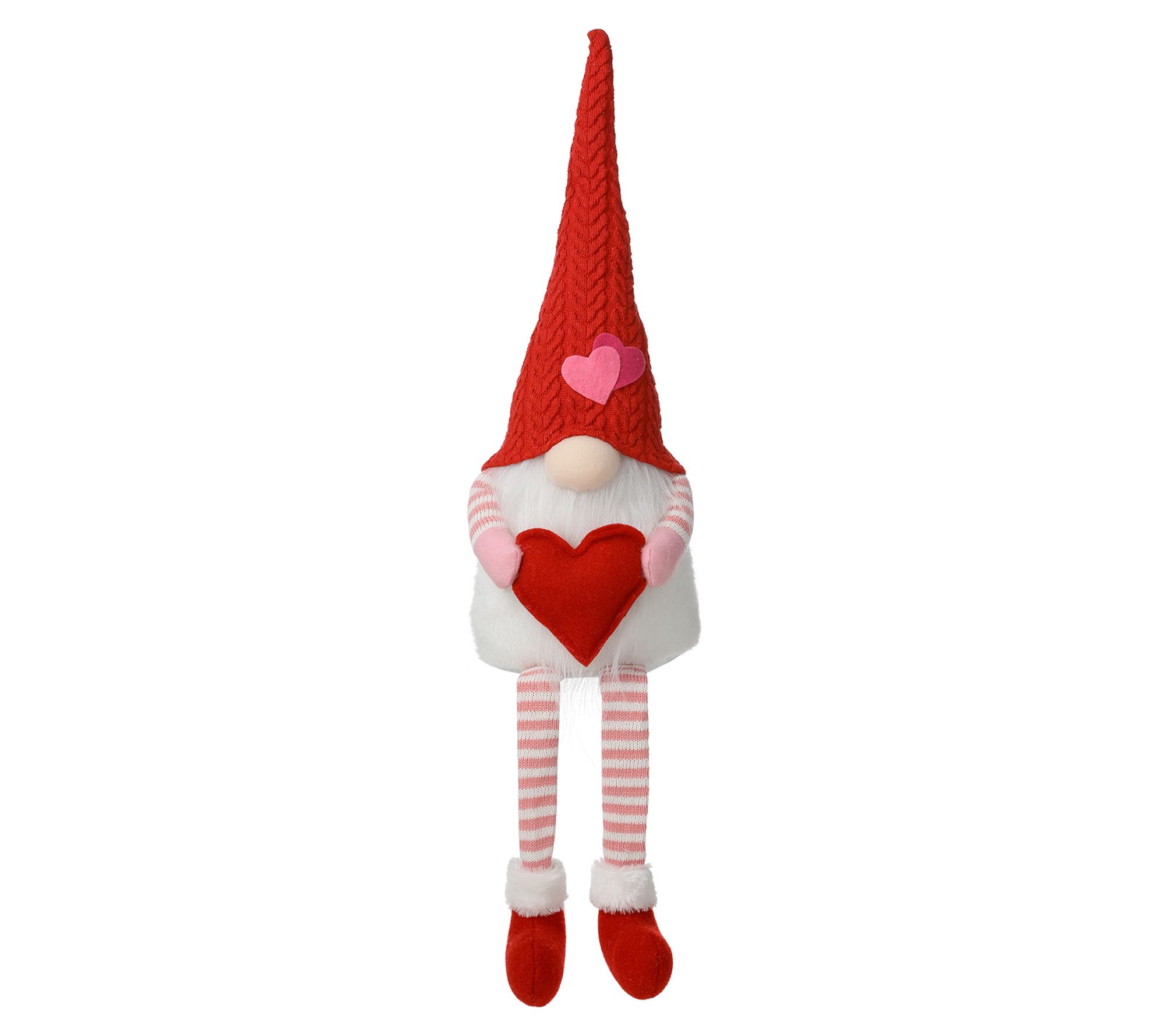 Wearing a festive knitted hat and sporting a long beard, this lovestruck gnome is the perfect Valentine's Day accent as he lets his legs dangle over the side of a shelf or windowsill. From Glitzhome.