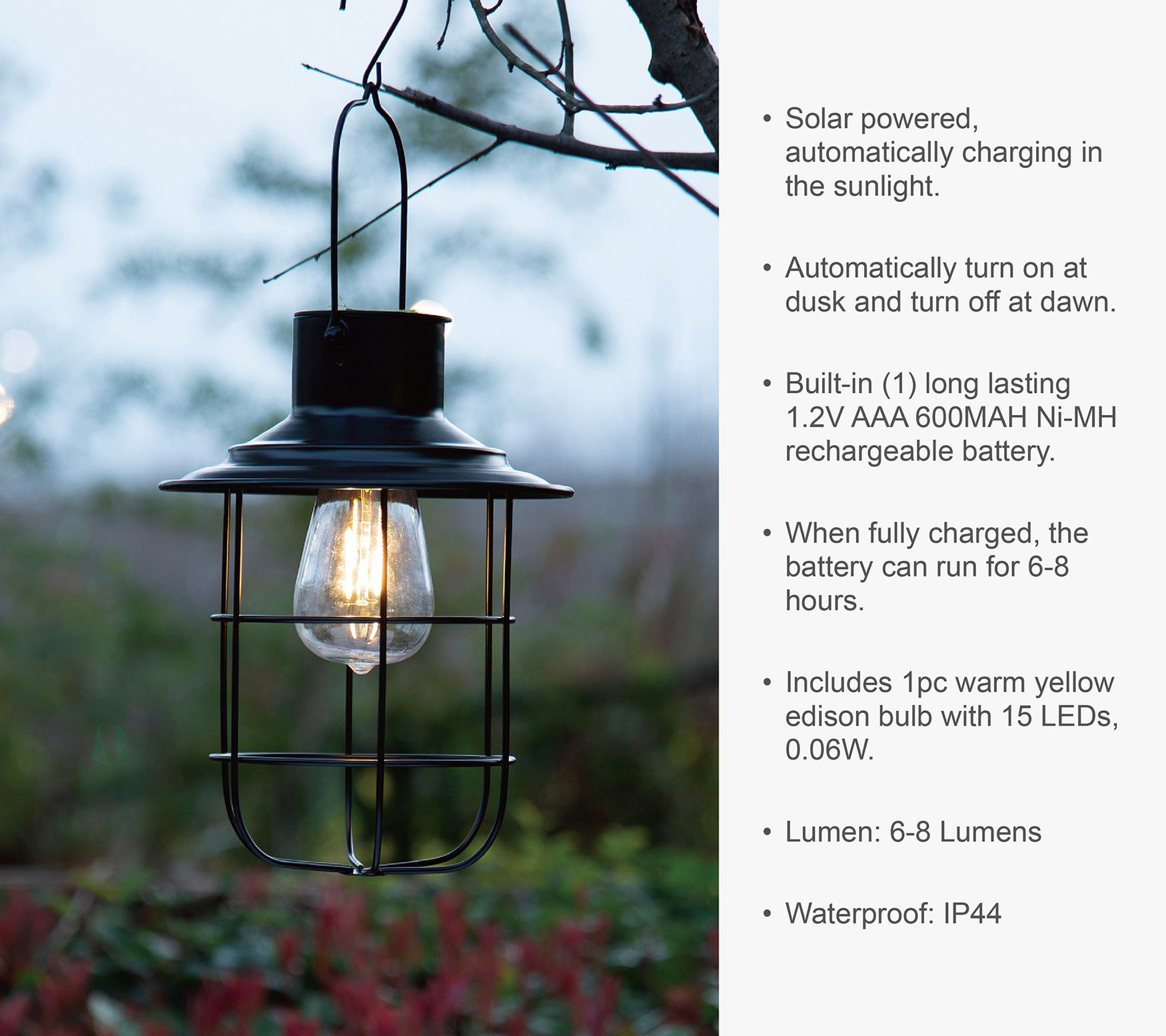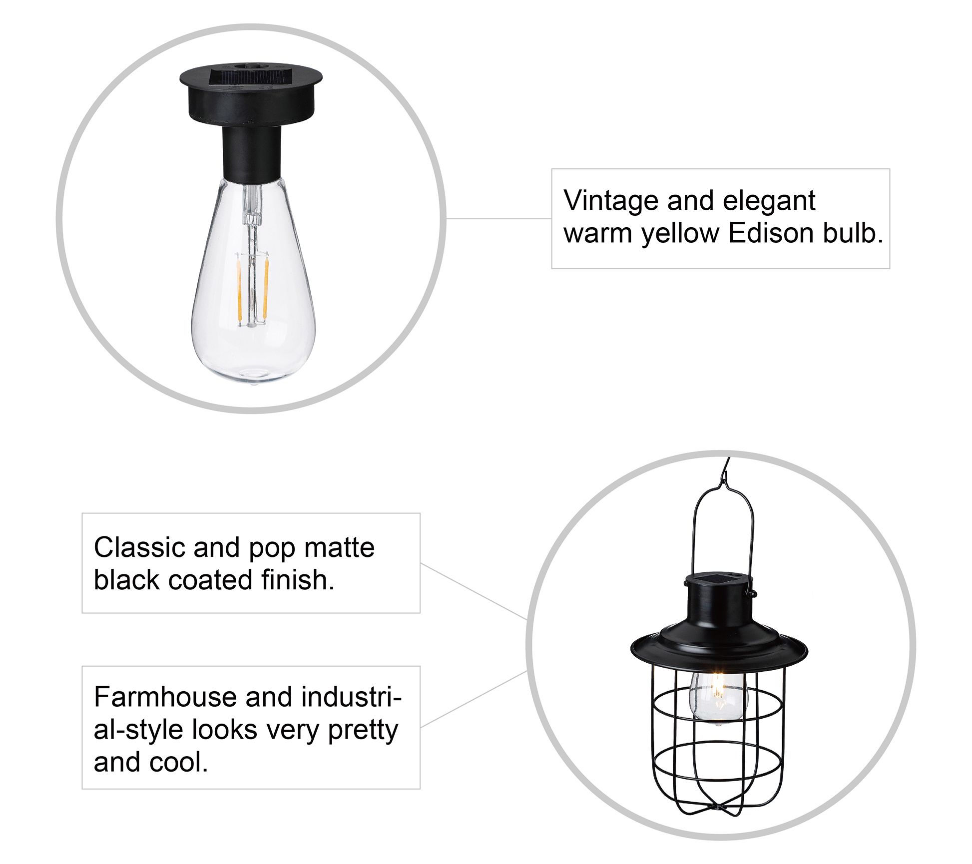 • Includes lantern and Edison-style lightbulb