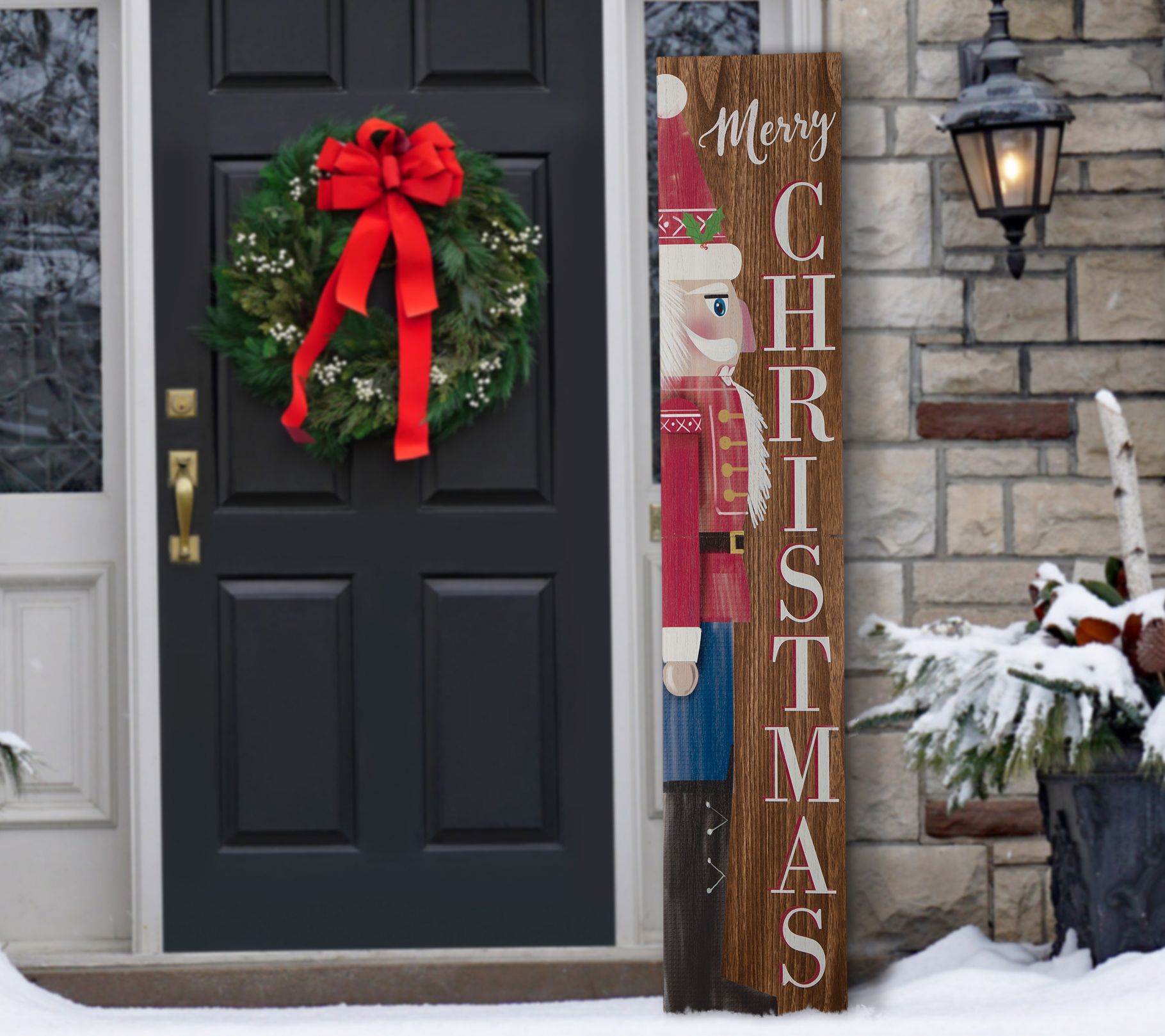 Glitzhome Wood Merry Christmas Nutcracker Vertical Porch Sign