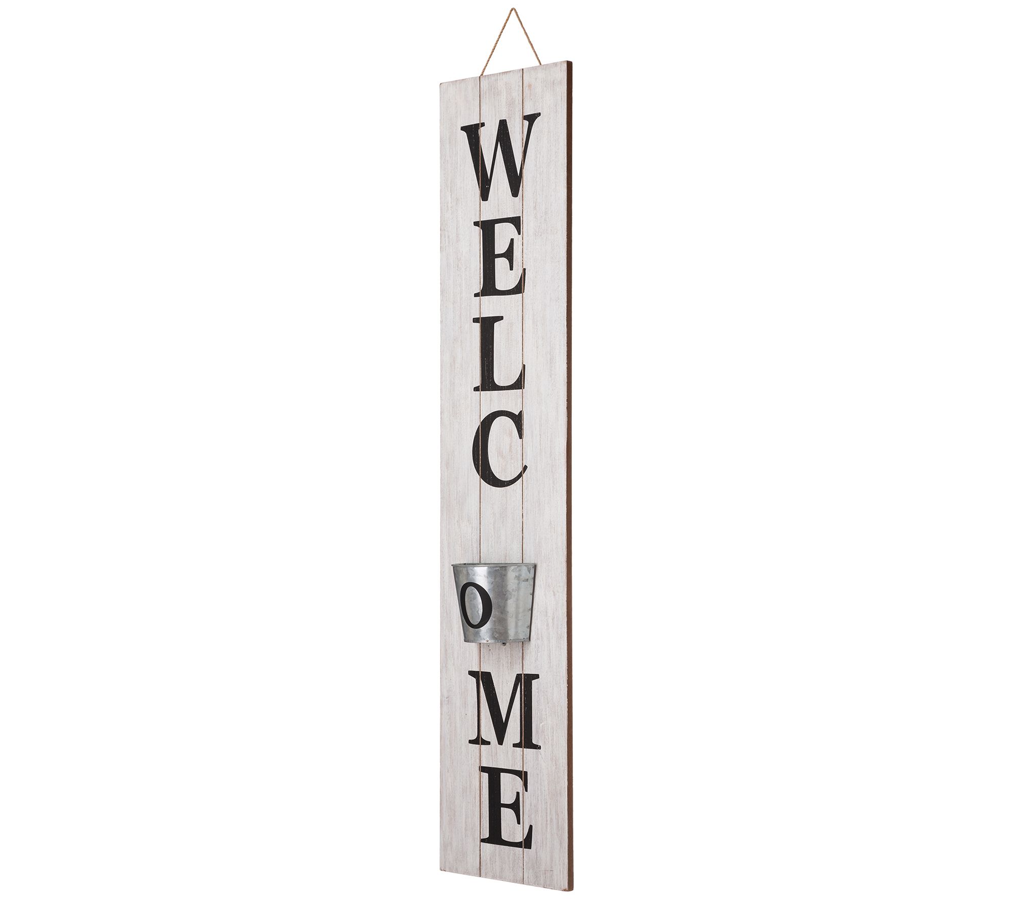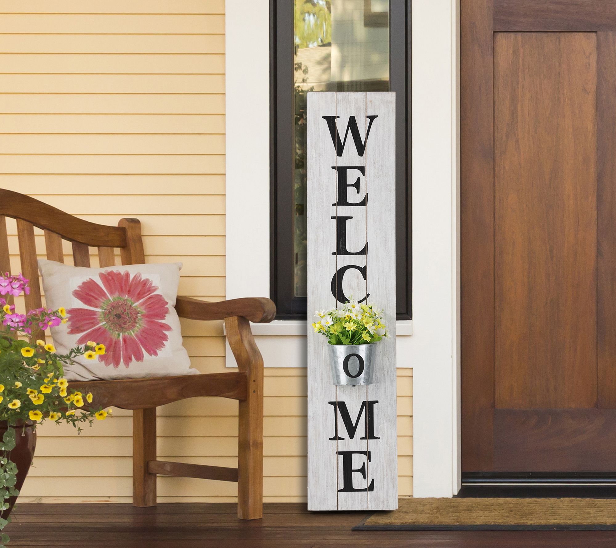 Glitzhome Wooden White WELCOME Porch Sign withPlanter