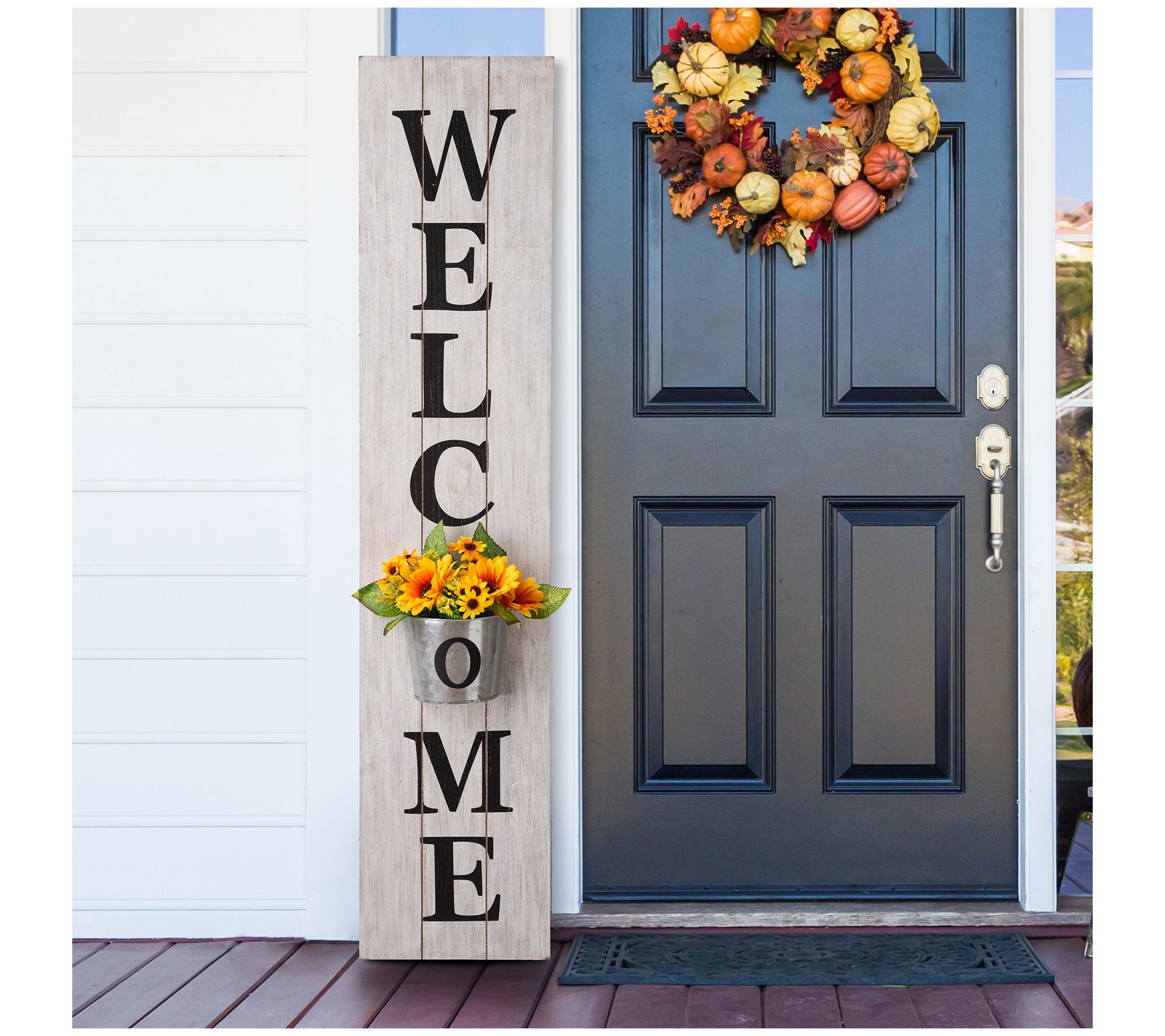 Perfect for adding a charming touch of welcome to any space, hang or lean this clever porch sign near your front door. From Glitzhome.