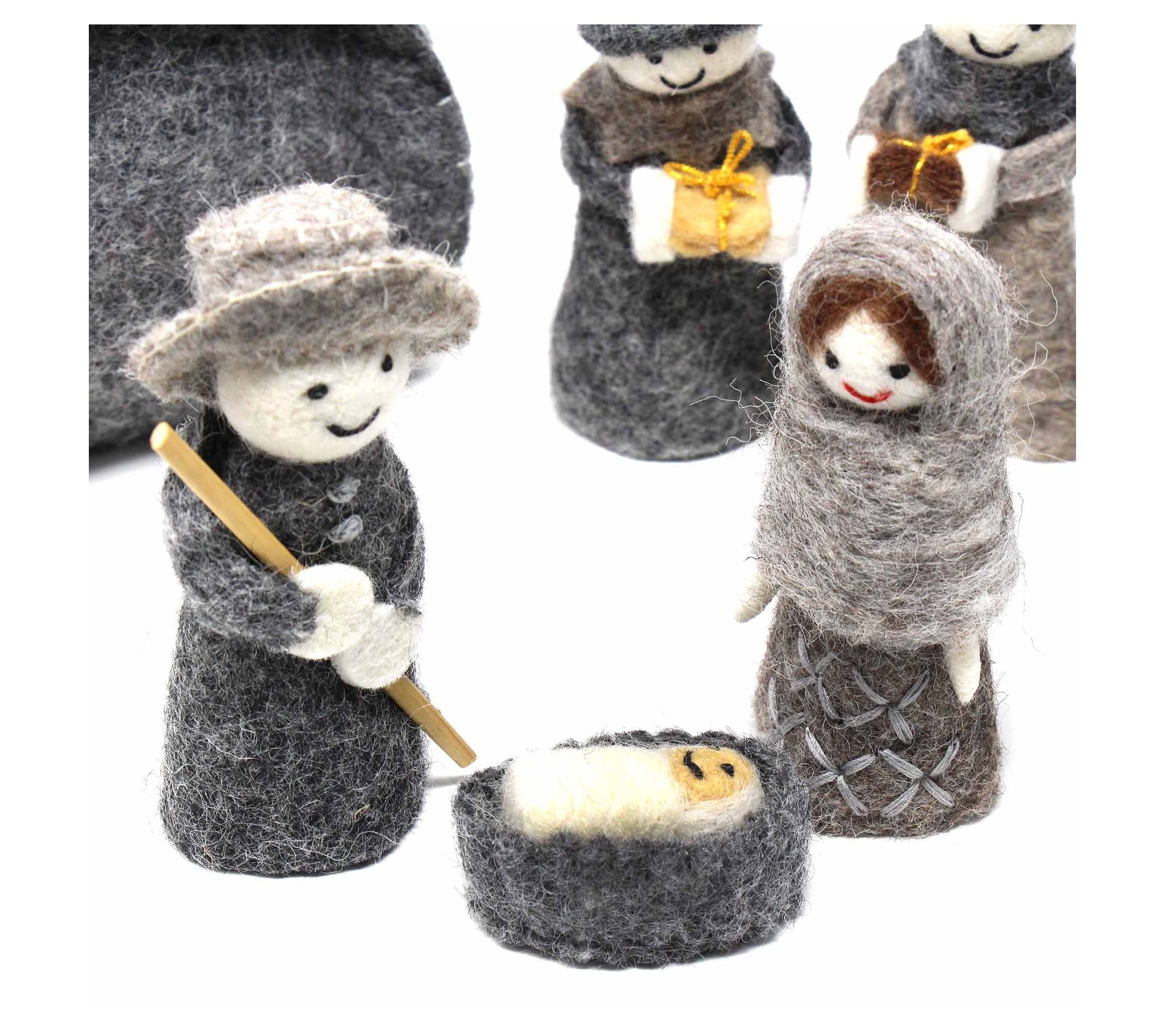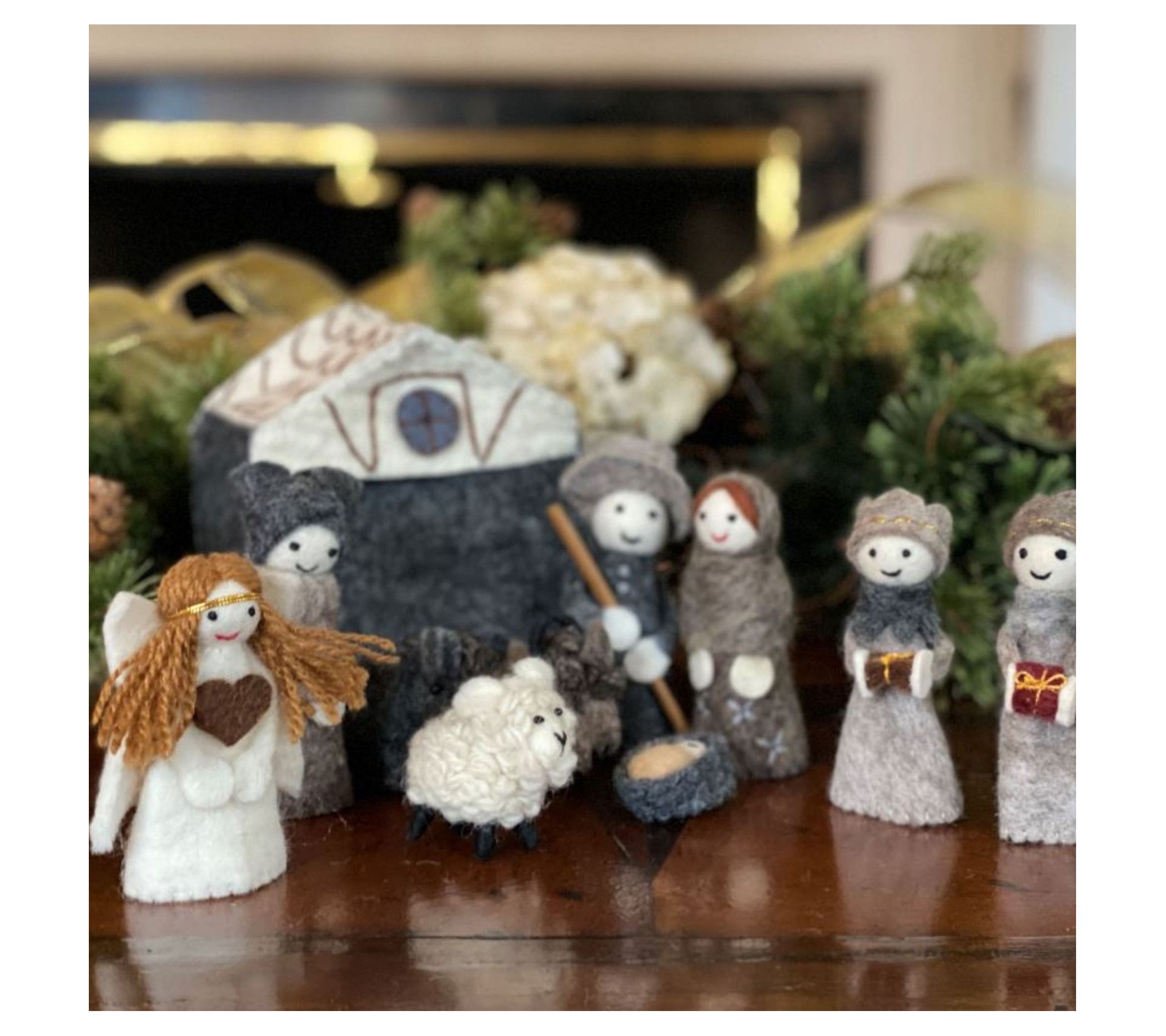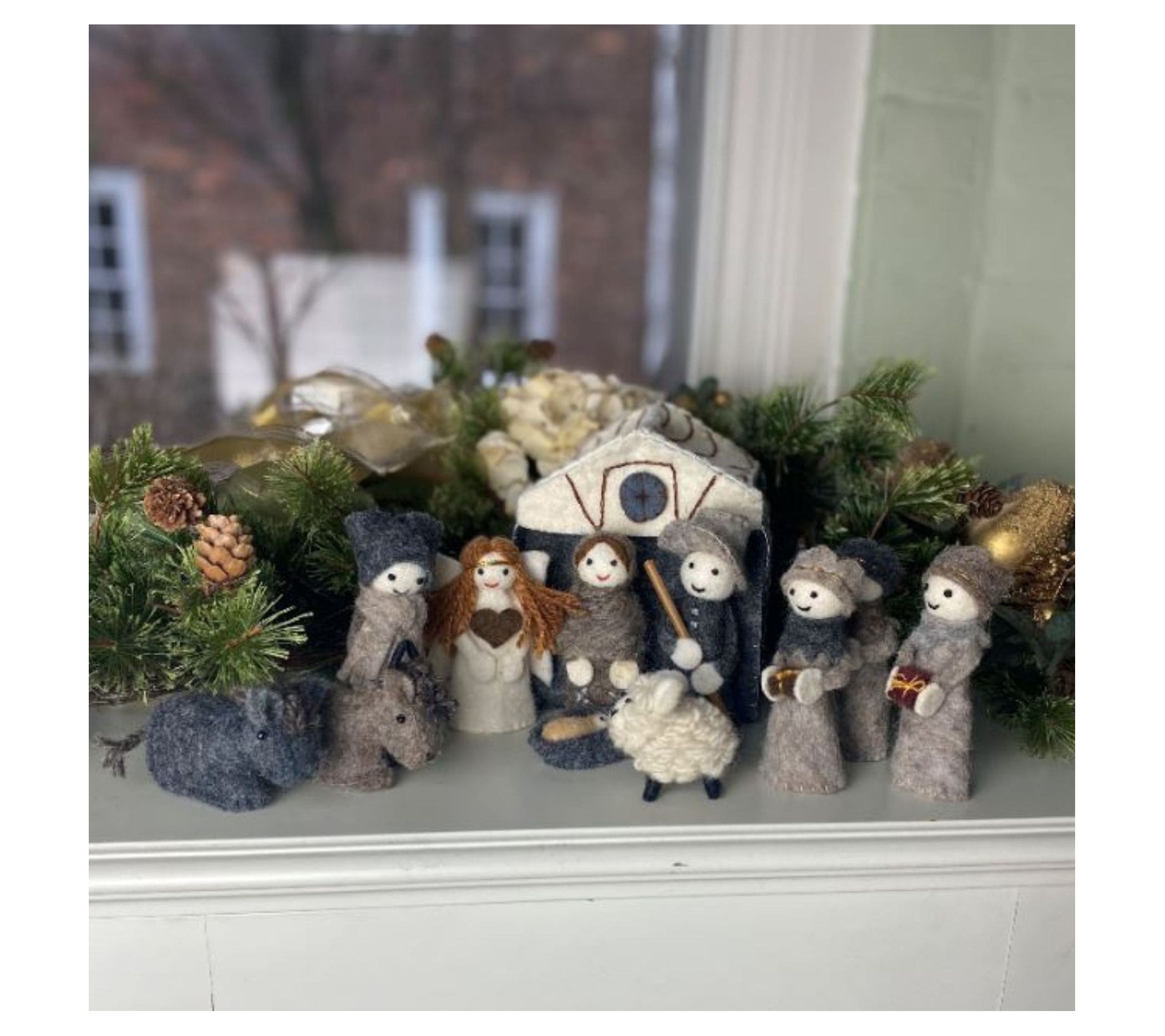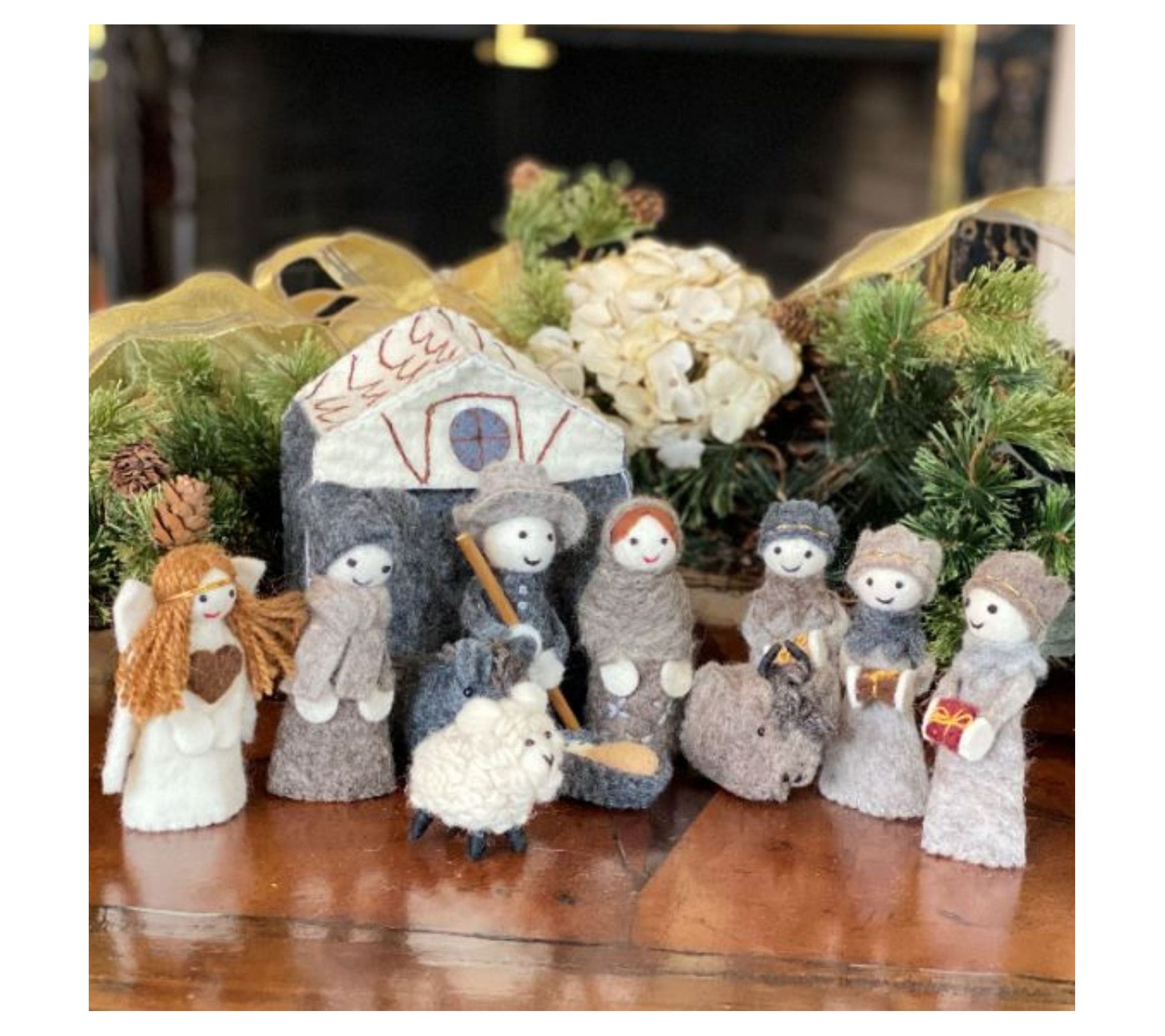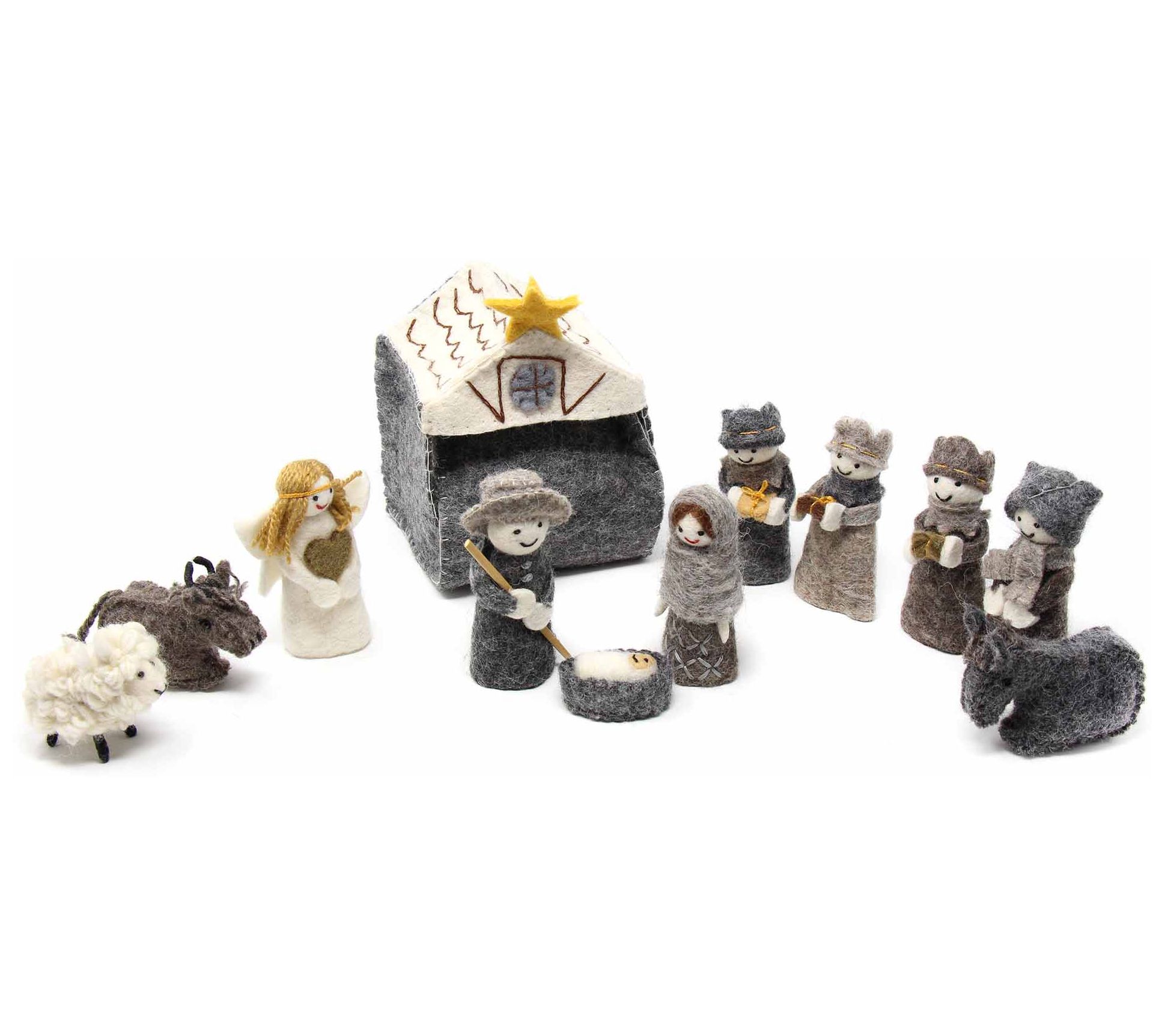 Celebrate the true meaning of Christmas with the Global Crafts 12-piece felt nativity set, featuring Mary, Joseph, Baby Jesus, and more, all of which neatly pack into the stable for easy storage. From Global Crafts.