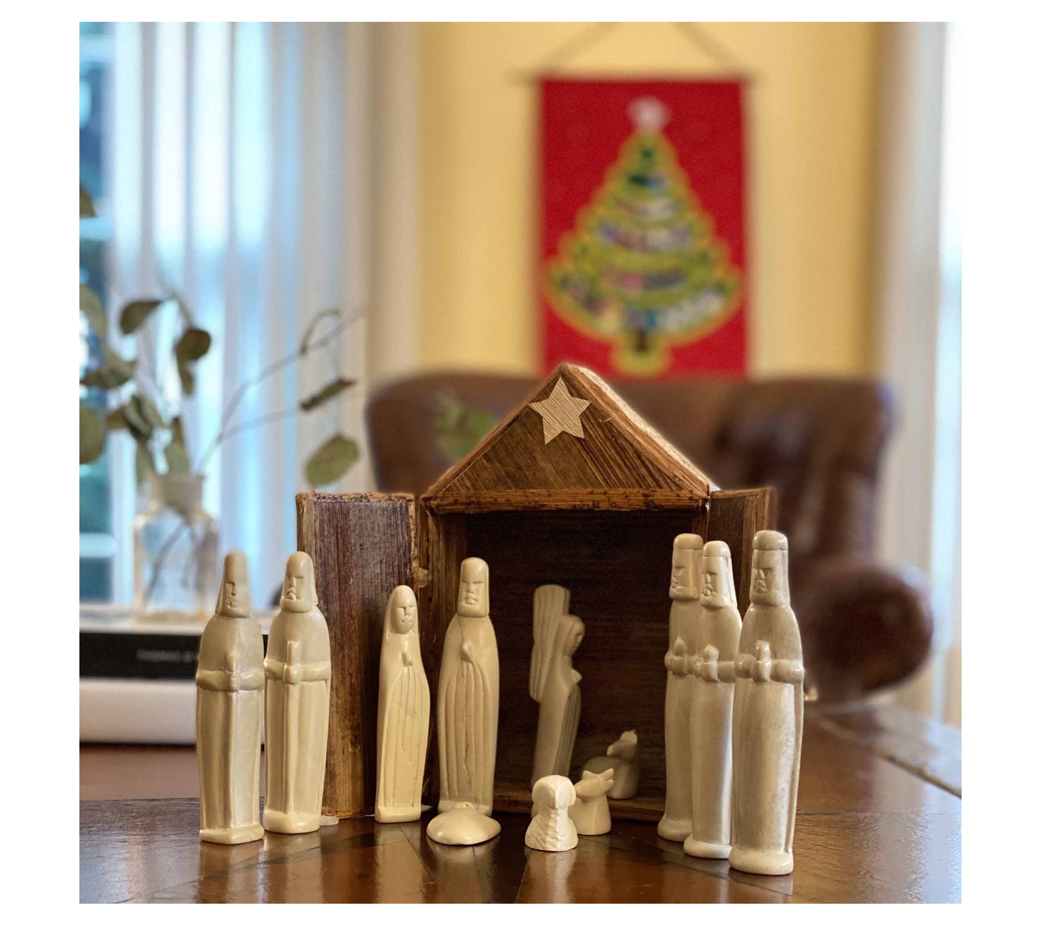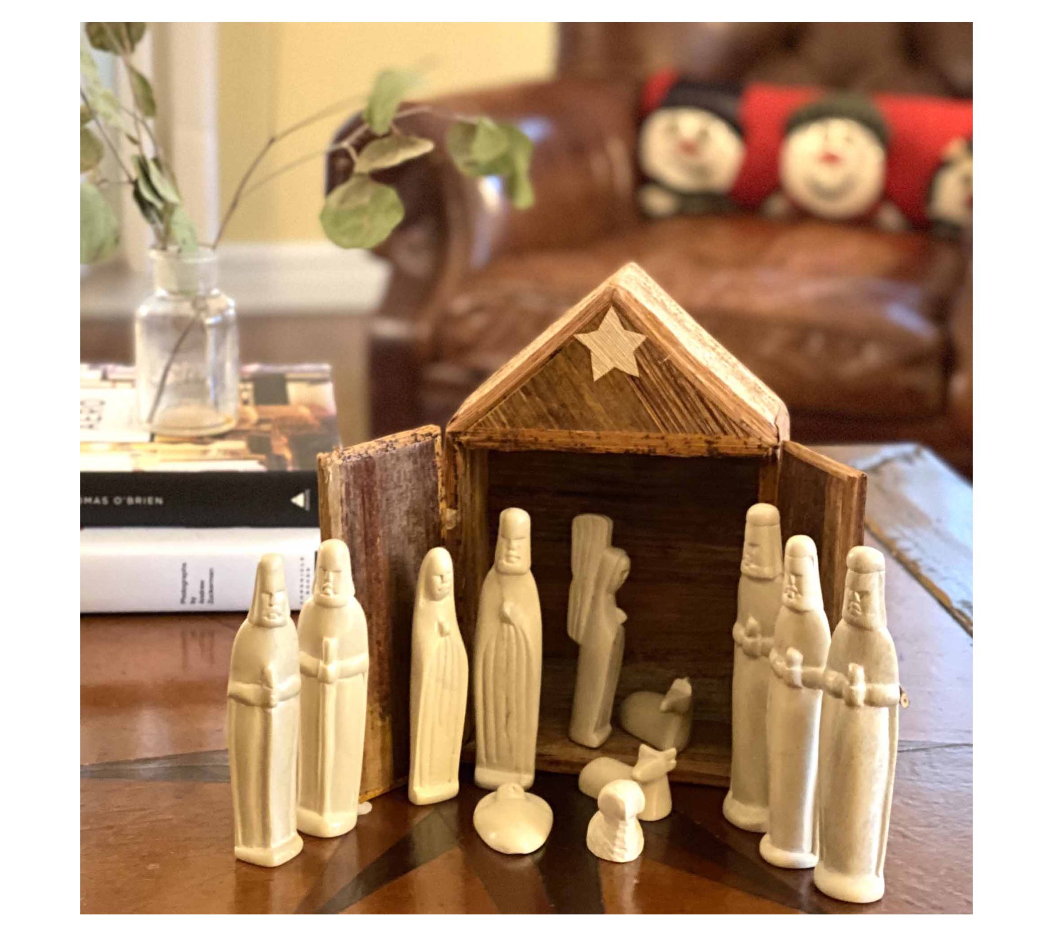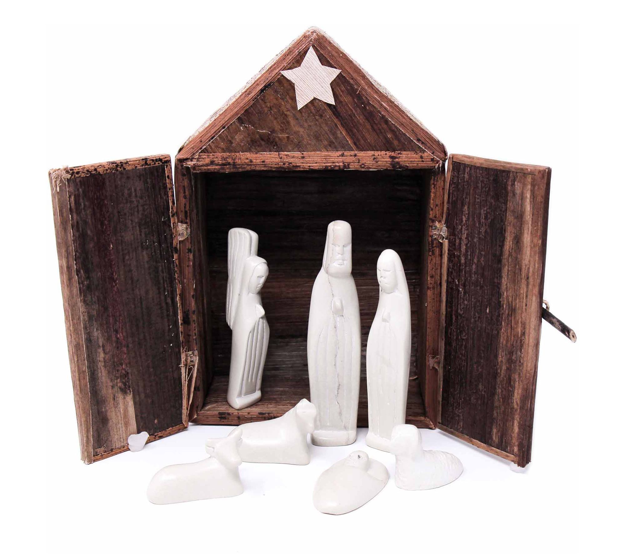 Celebrate the essence of Christmas with the Global Crafts 13-piece soapstone nativity set and barn. This meticulously carved set includes essential figures like Mary, Joseph, and Baby Jesus, along with wise men, shepherds, and animals, all beautifully framed by a unique barn that also serves as a storage box. From Global Crafts.