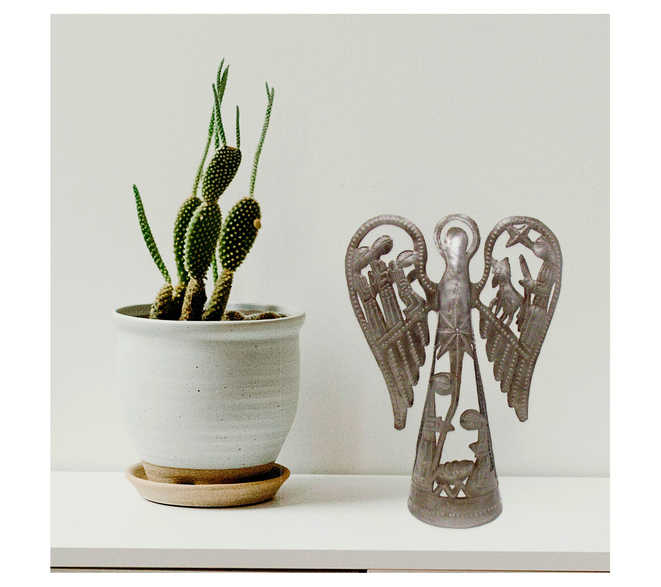 Global Crafts Angel Nativity Haitian Steel Tree Topper