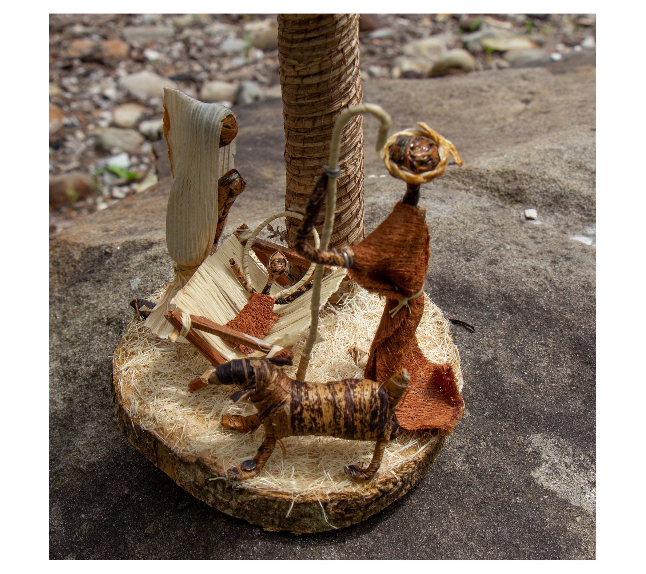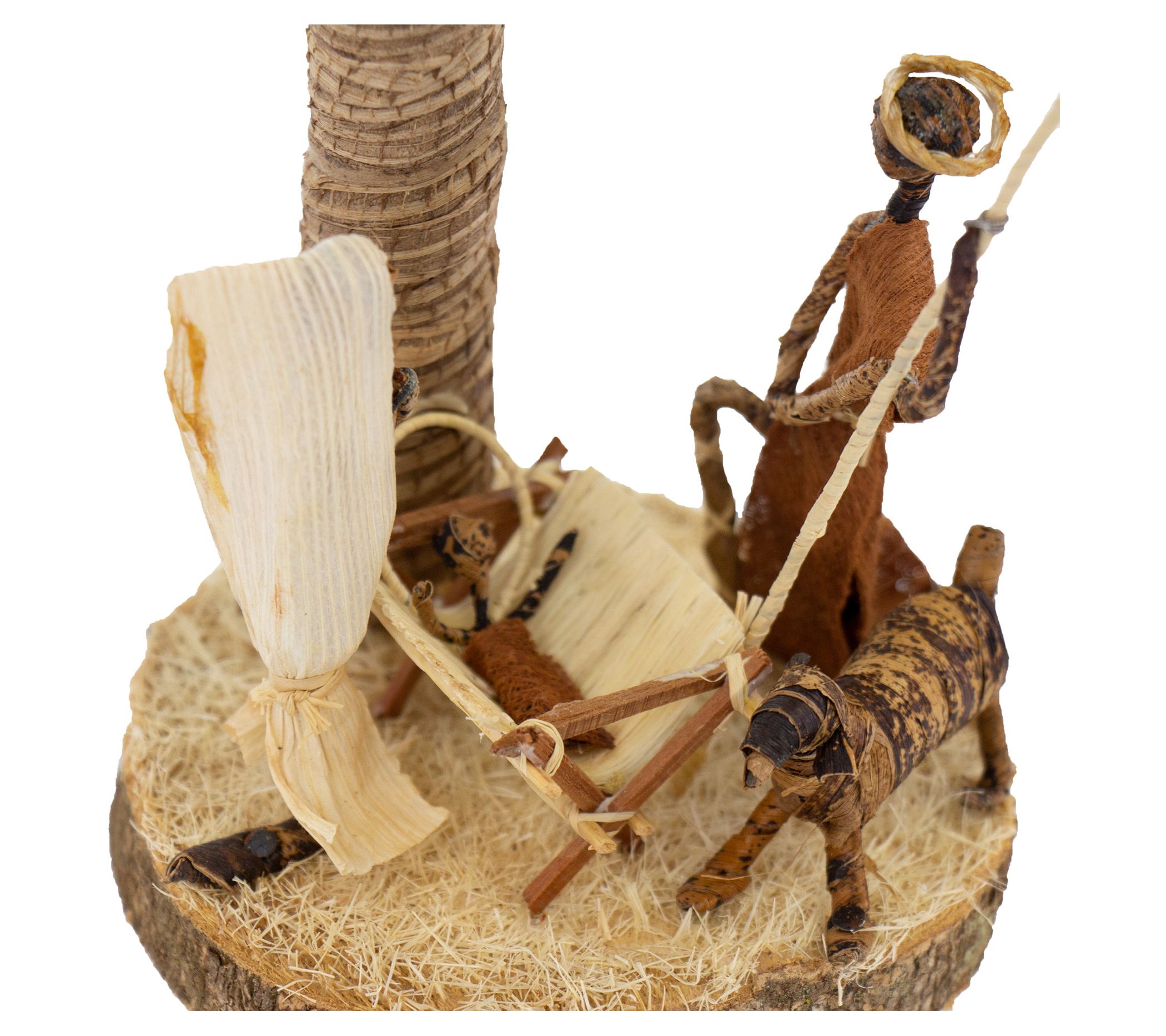 Global Crafts Banana Fiber Palm Tree Nativity Tabletop Scene