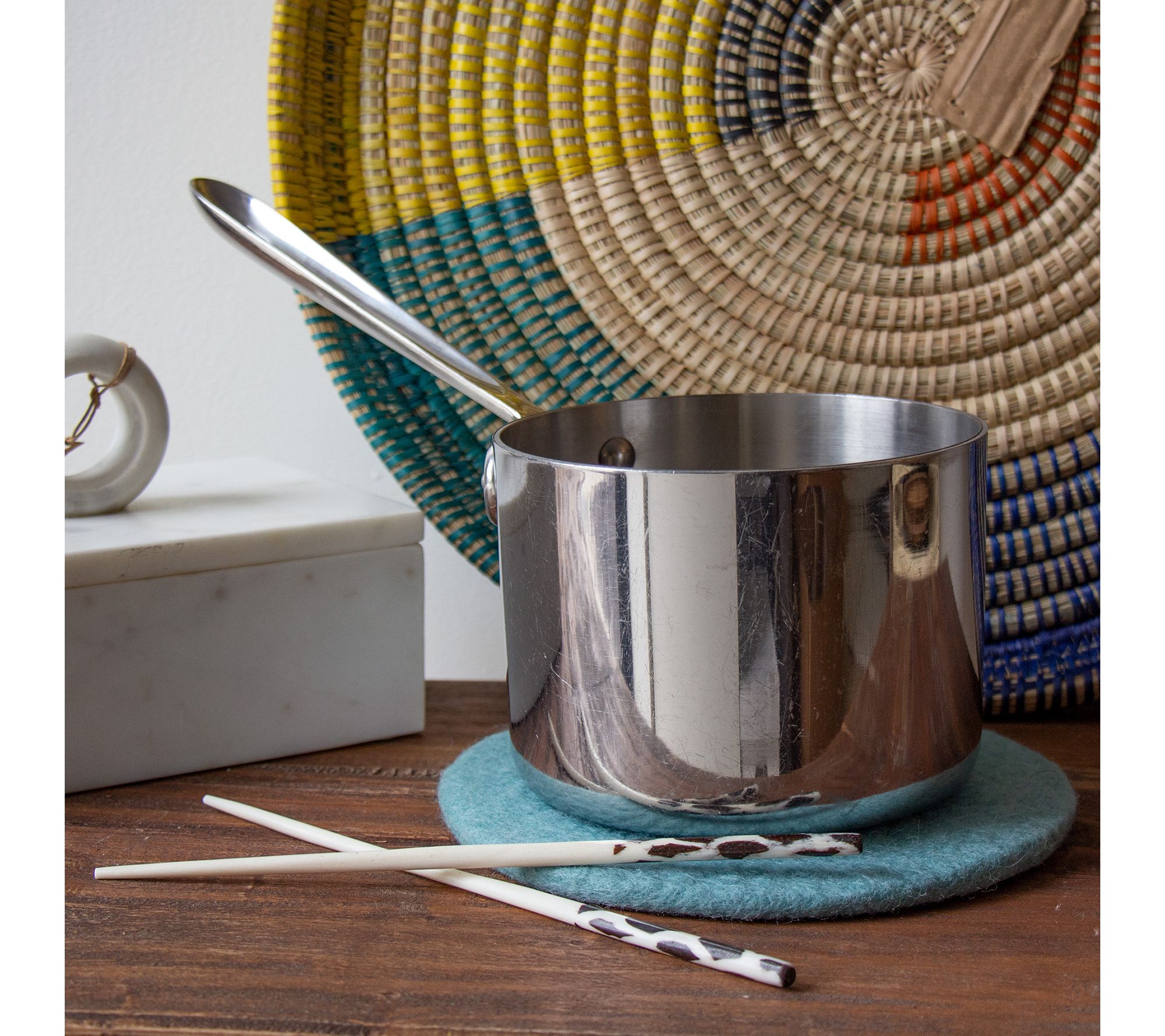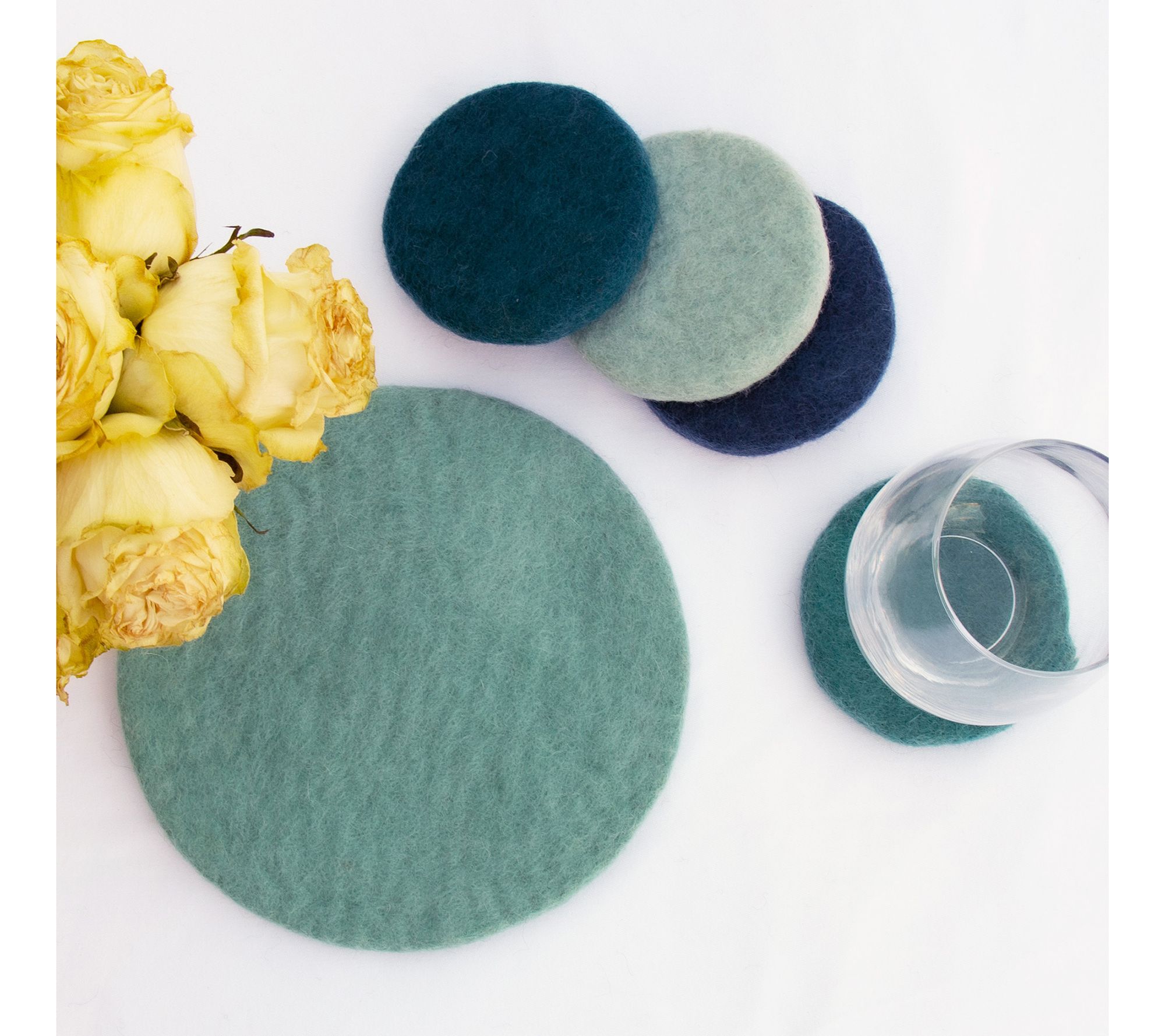 Make your entertaining both stylish and functional with this crafted felt trivet and coaster set. Perfect for helping to protect your tabletops while adding inviting texture, the pieces are a must-have for any host. From Global Crafts.