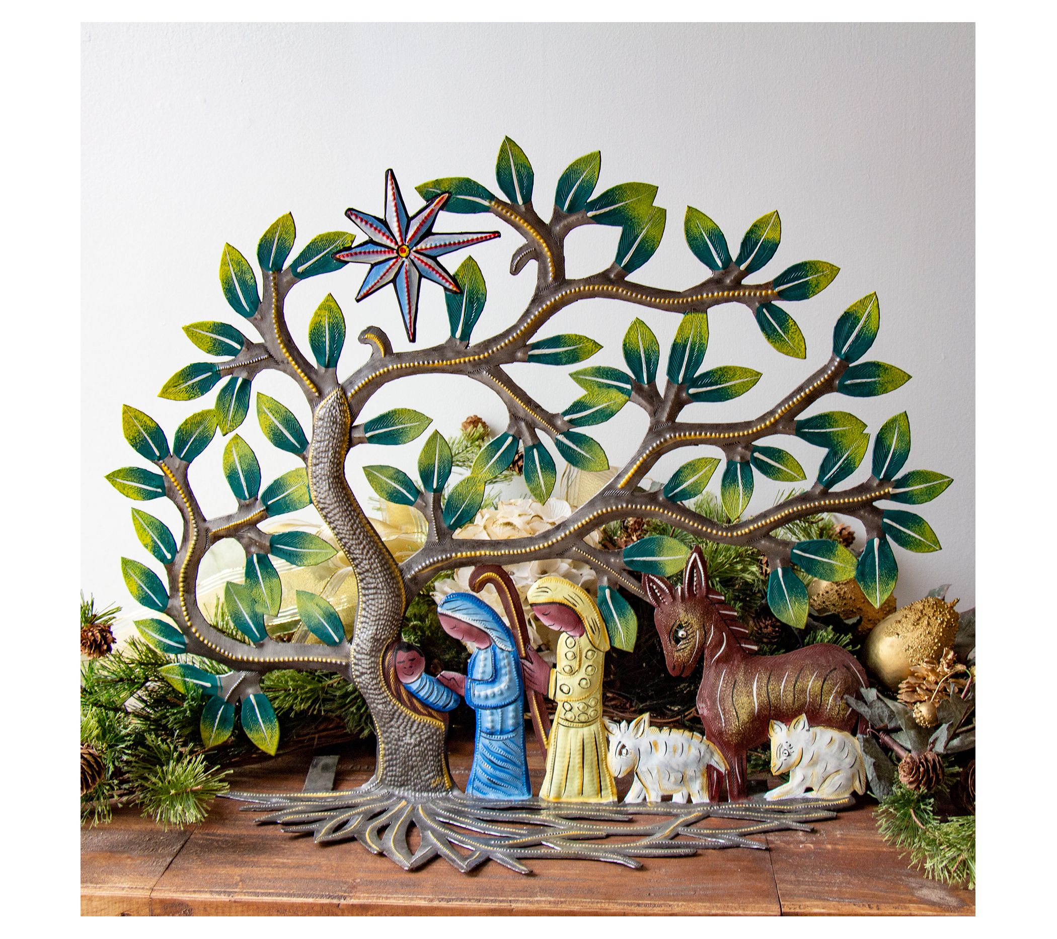 Immerse yourself in the joy and tradition of Christmas with the Global Crafts metal drum tree creche nativity. Crafted with meticulous care, this Haitian-inspired piece makes a beautiful addition to your holiday decor. From Global Crafts.