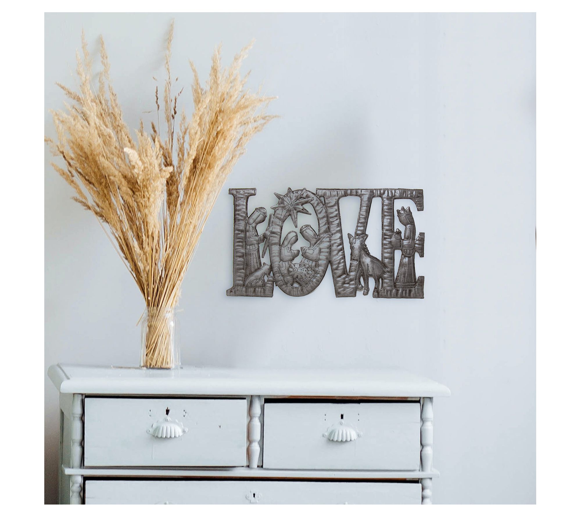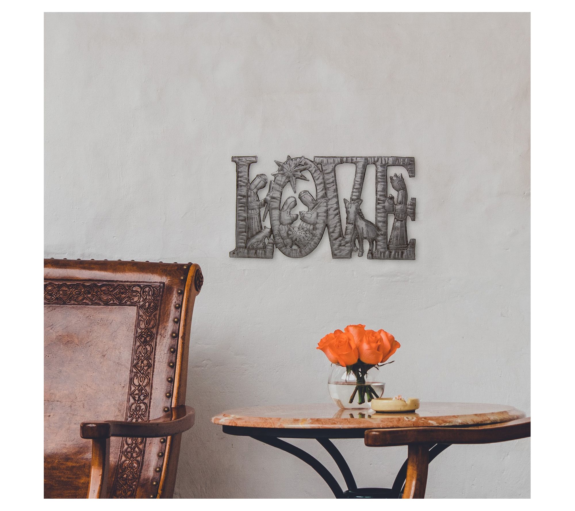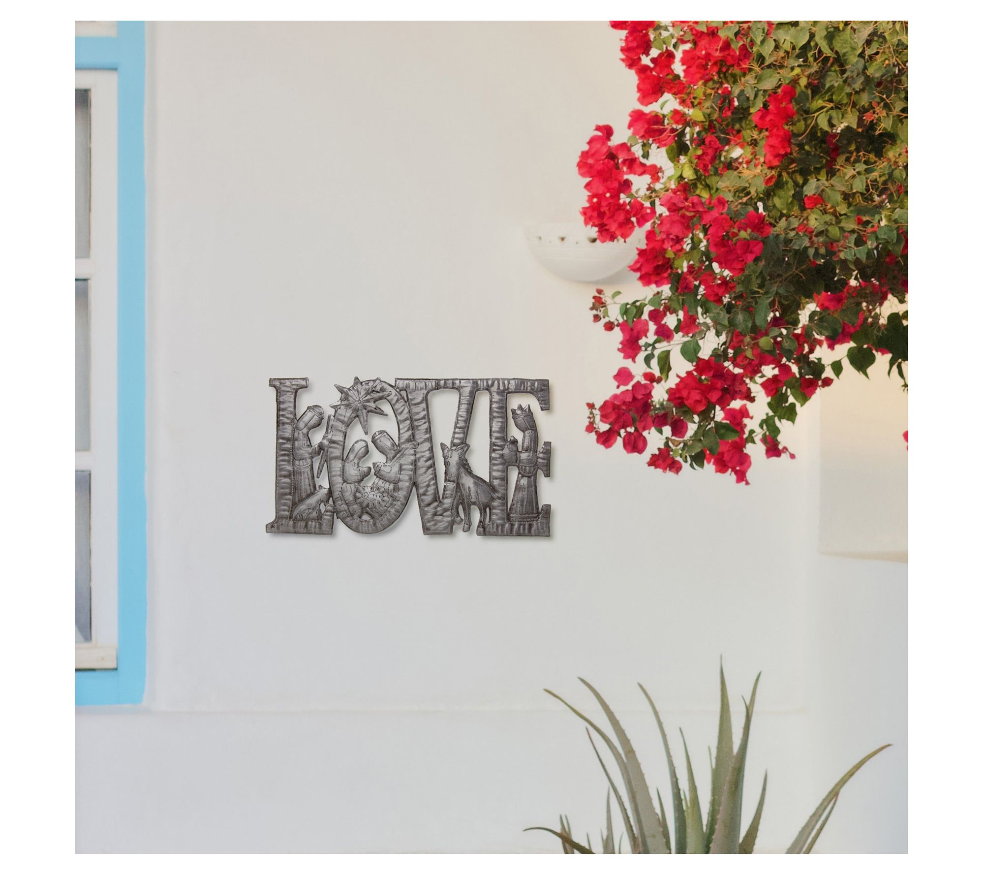 Global Crafts LOVE Nativity Haitian Steel Drum Wall Art