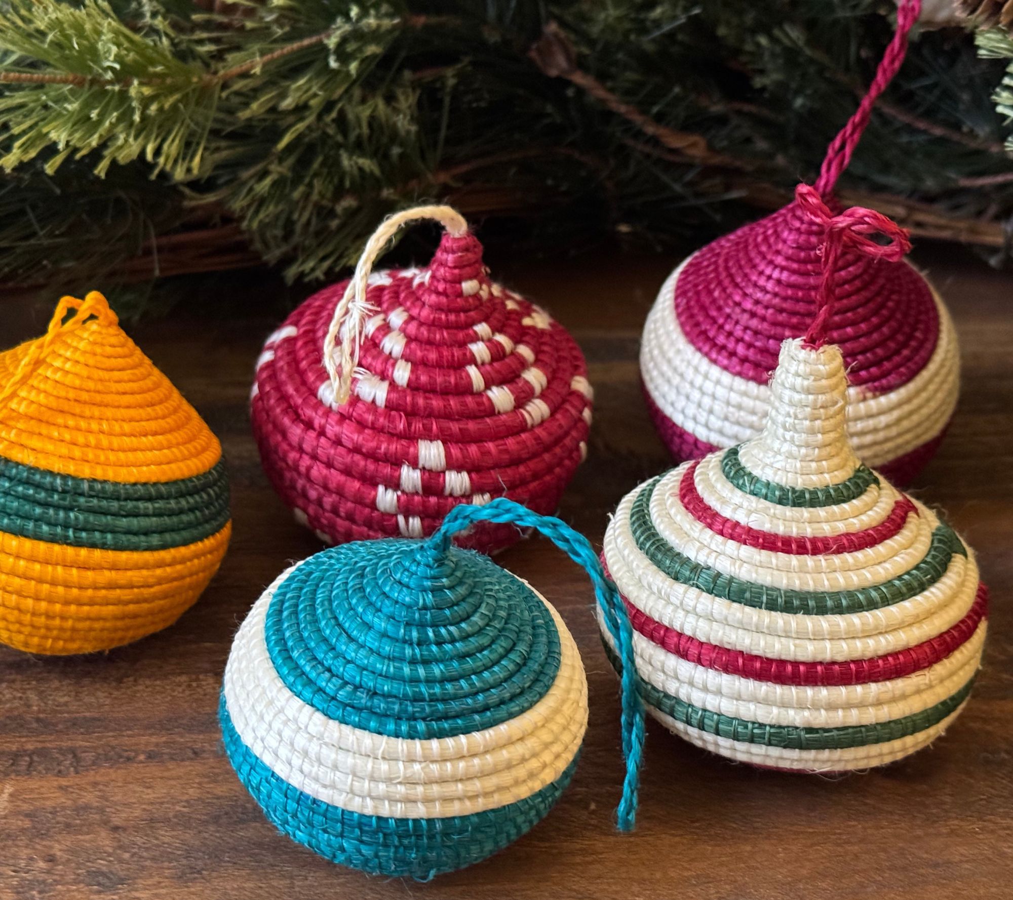 Trim your tree or add festive charm to your home with woven round ornaments that bring a touch of global artistry to your holiday celebrations. These colorful decorations create a warm and inviting atmosphere, easily enhancing a mantel, wreath, or gift packaging with their textured appeal. From Global Crafts.