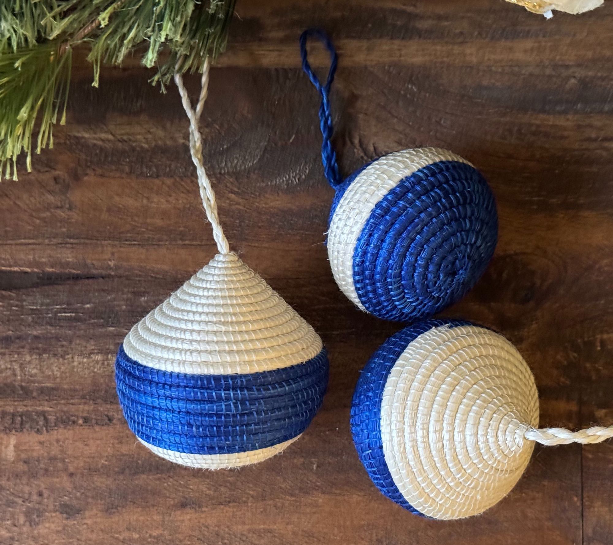 Global Crafts Rwanda Woven Round Ornaments Set of 3