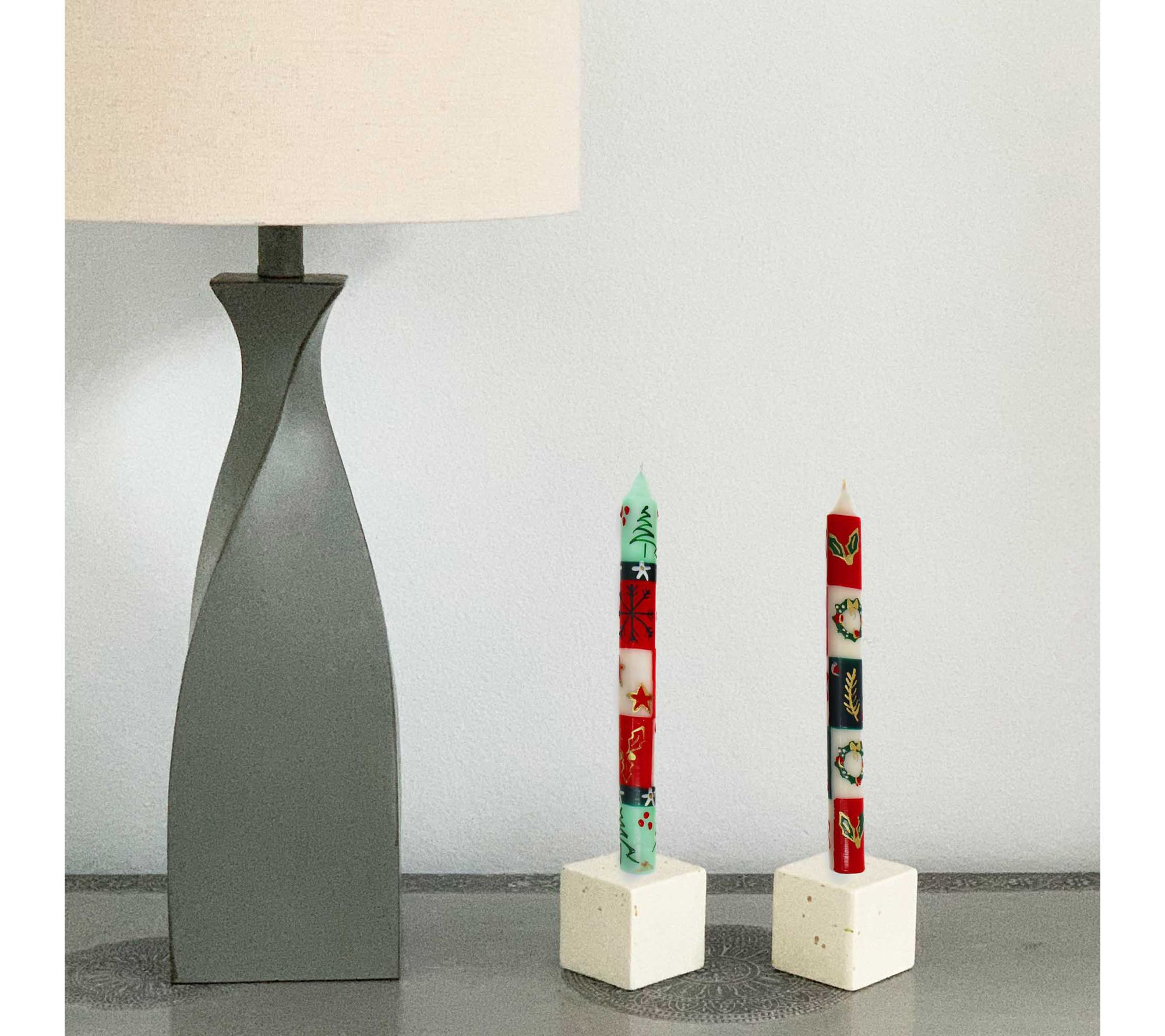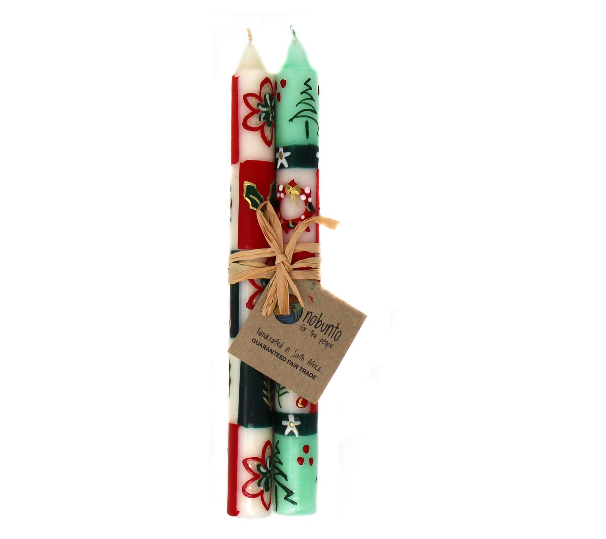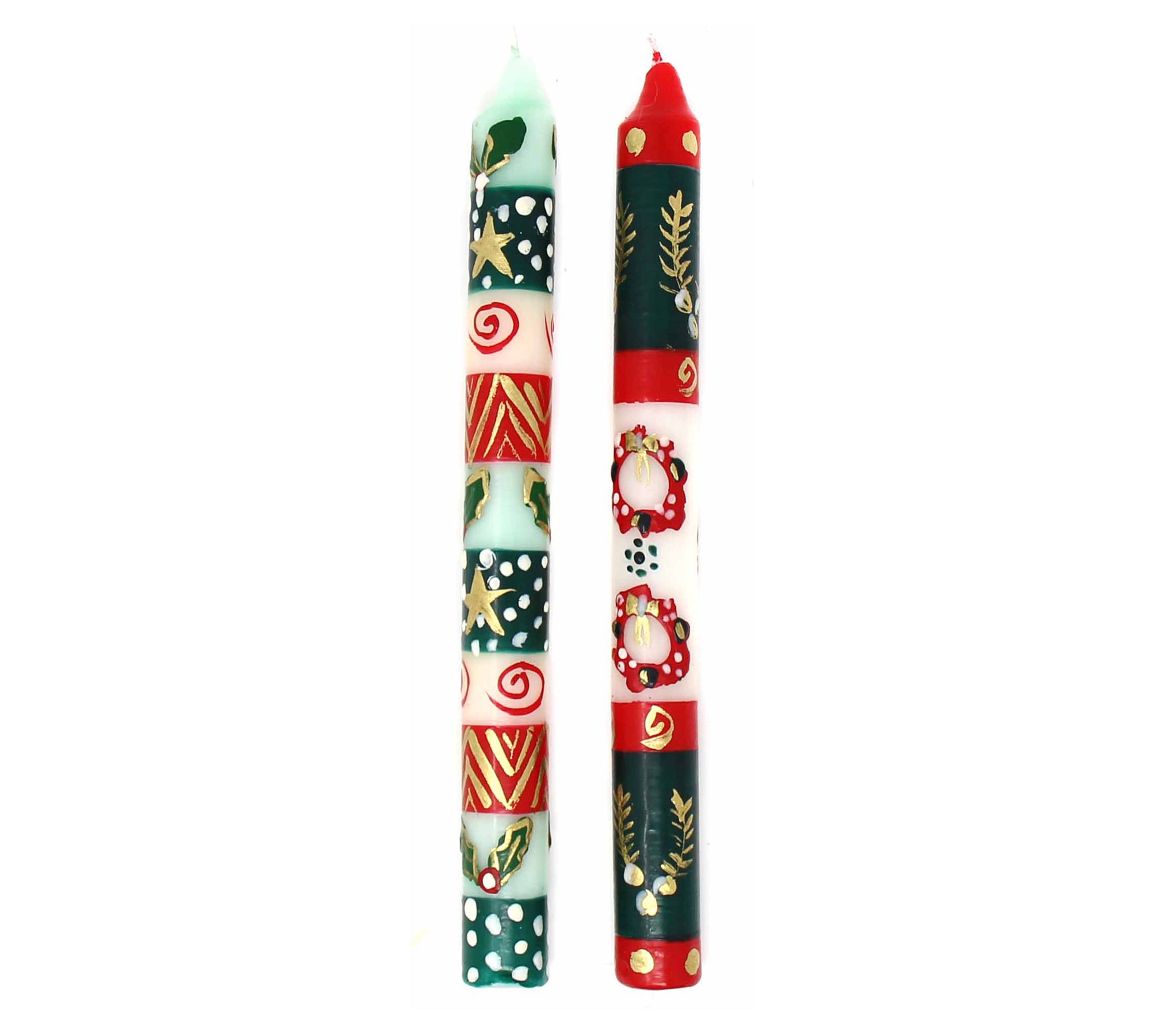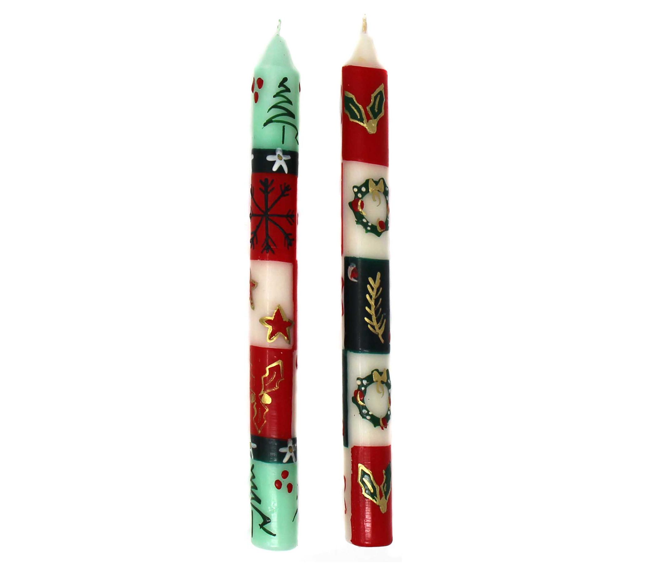 Bring a touch of global artistry to your home with this set of two Christmas dinner candles, a perfect pick-up for special occasions or as a thoughtful gift. From Global Crafts.