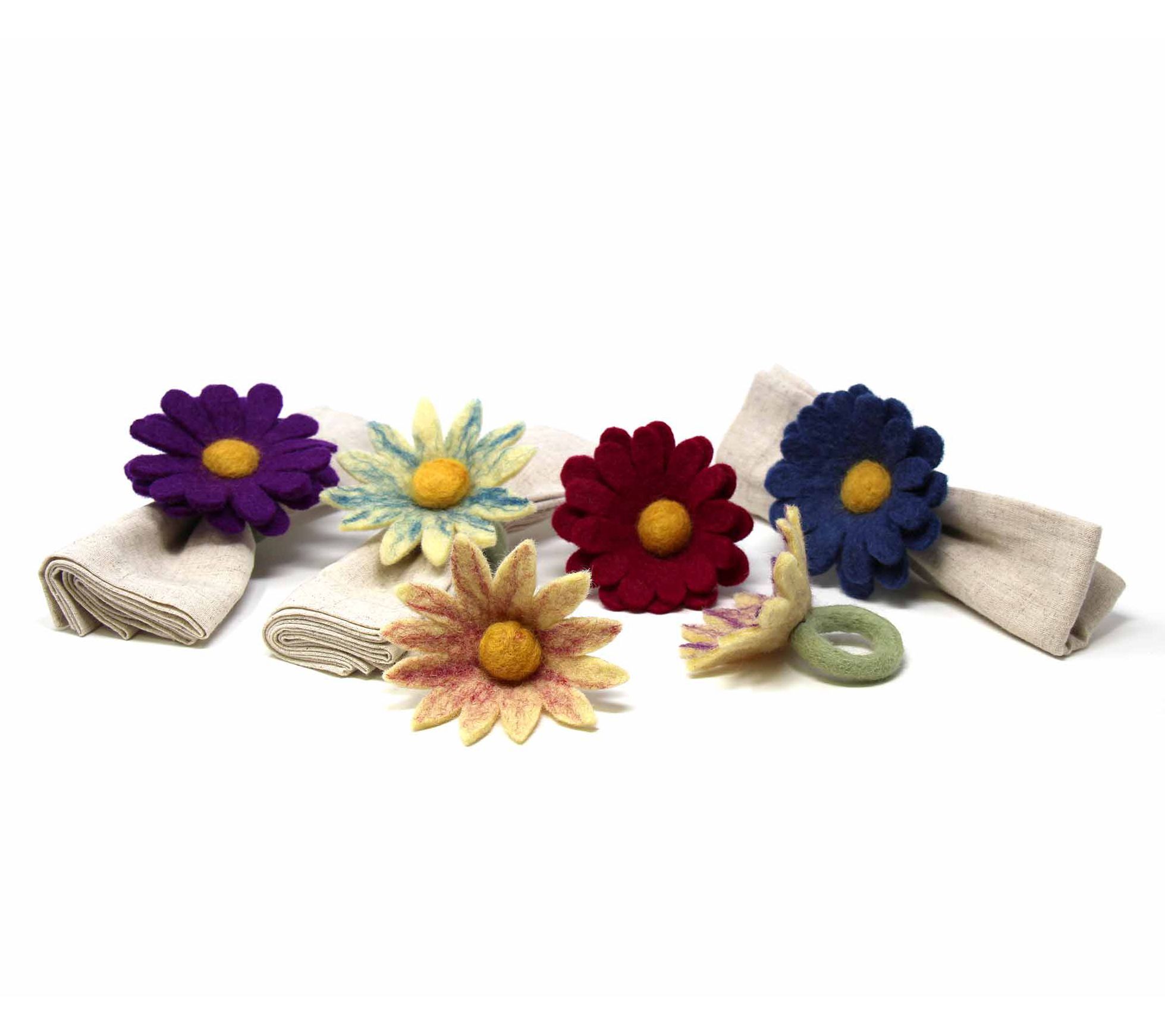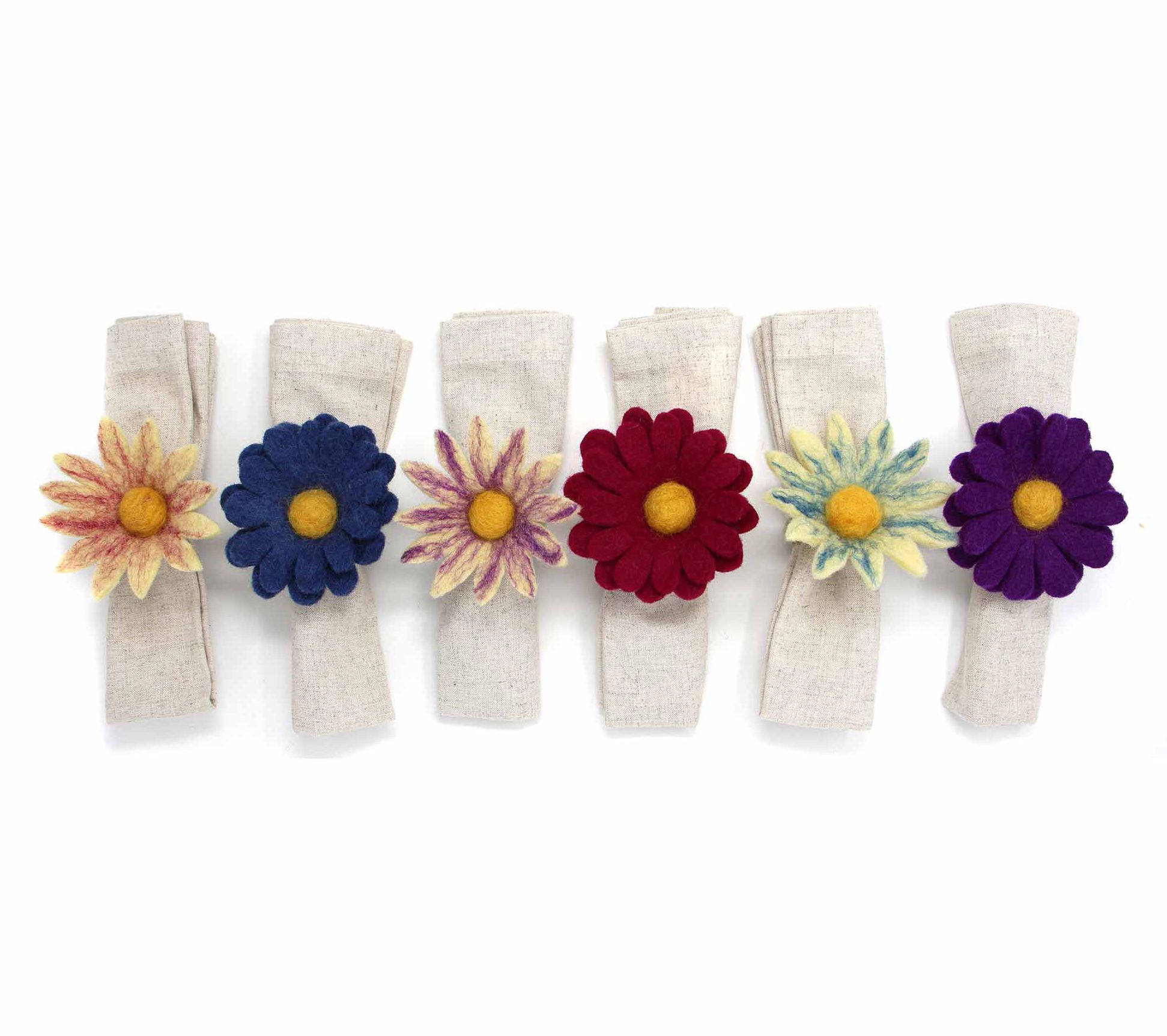 Global Crafts S/6 Felt Assorted Daisies NapkinRings
