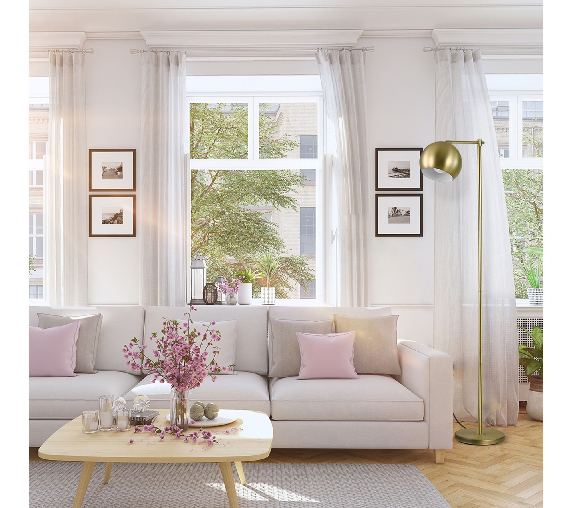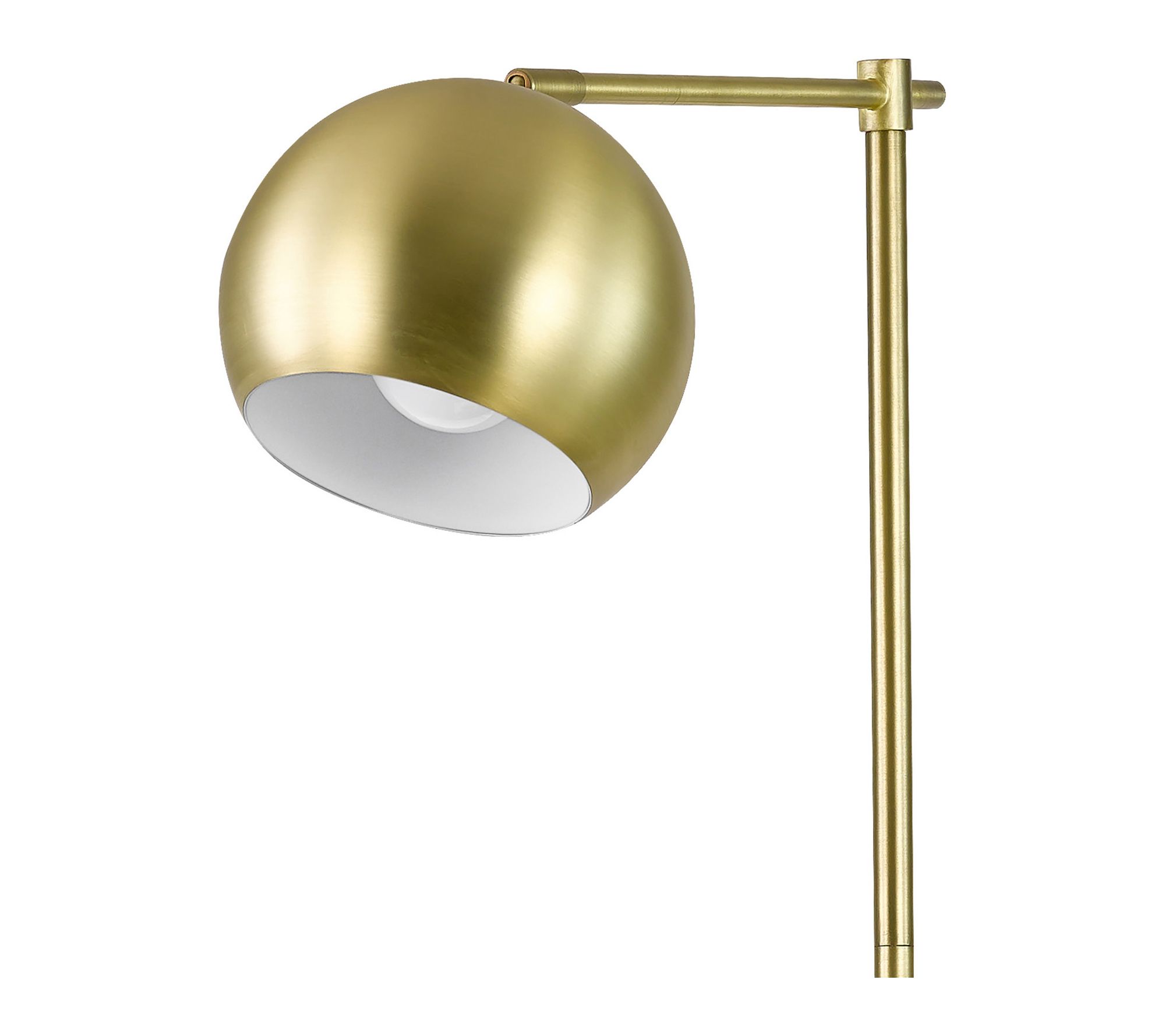 Effortlessly brighten any space with this striking floor lamp -- its slim profile and classic goldtone finish add a touch of modern elegance to your living room, bedroom, or dining area. The round shade and slightly exposed bulb invite you to personalize your ambiance, while the 5'L cord and convenient in-line switch make placement a breeze. From Globe Electric.
