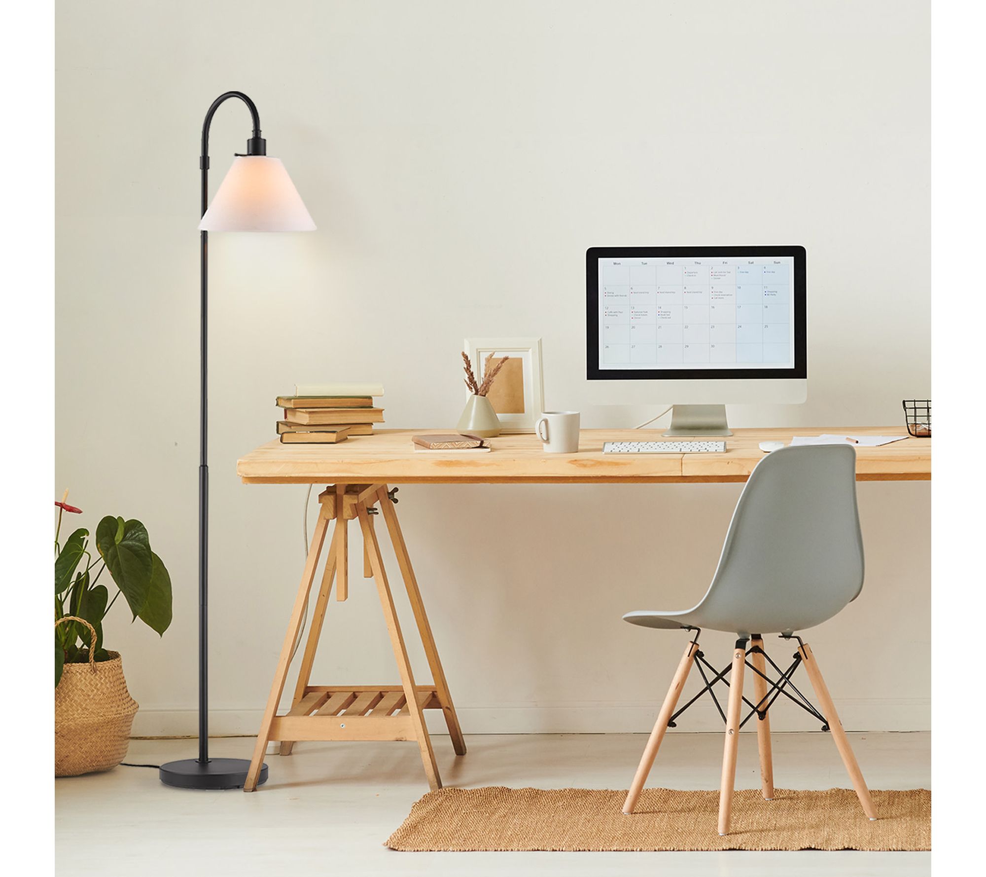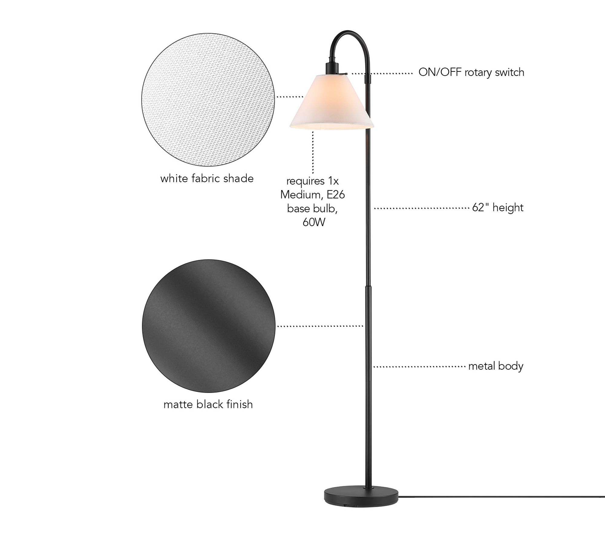 Globe Electric 62" Matte Black Floor Lamp WhiteFabric Shade